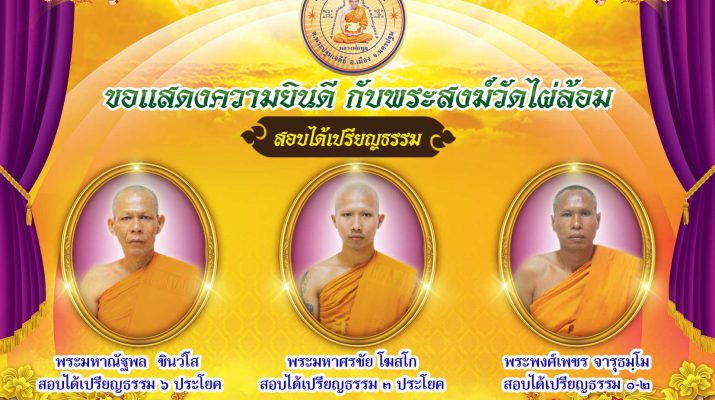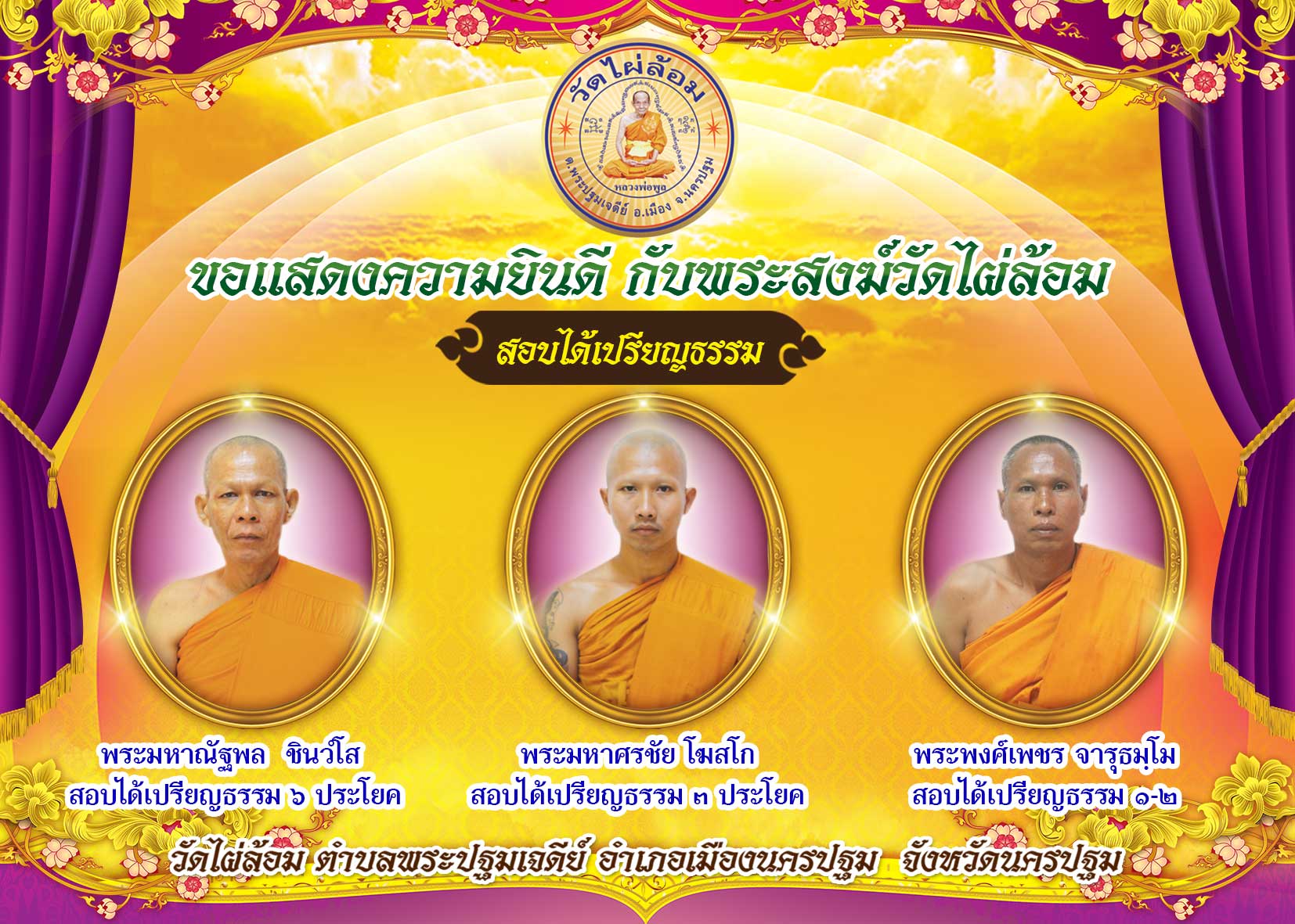 1.พระมหาณัฐพล ชินวํโส ช้างบัญชร อายุ 59 พรรษา 8 วัดไผ่ล้อม สอบได้เปรียญธรรม 6 ประโยค รับทุนการศึกษา 100,000 บาท(หนึ่งแสนบาทถ้วน)
