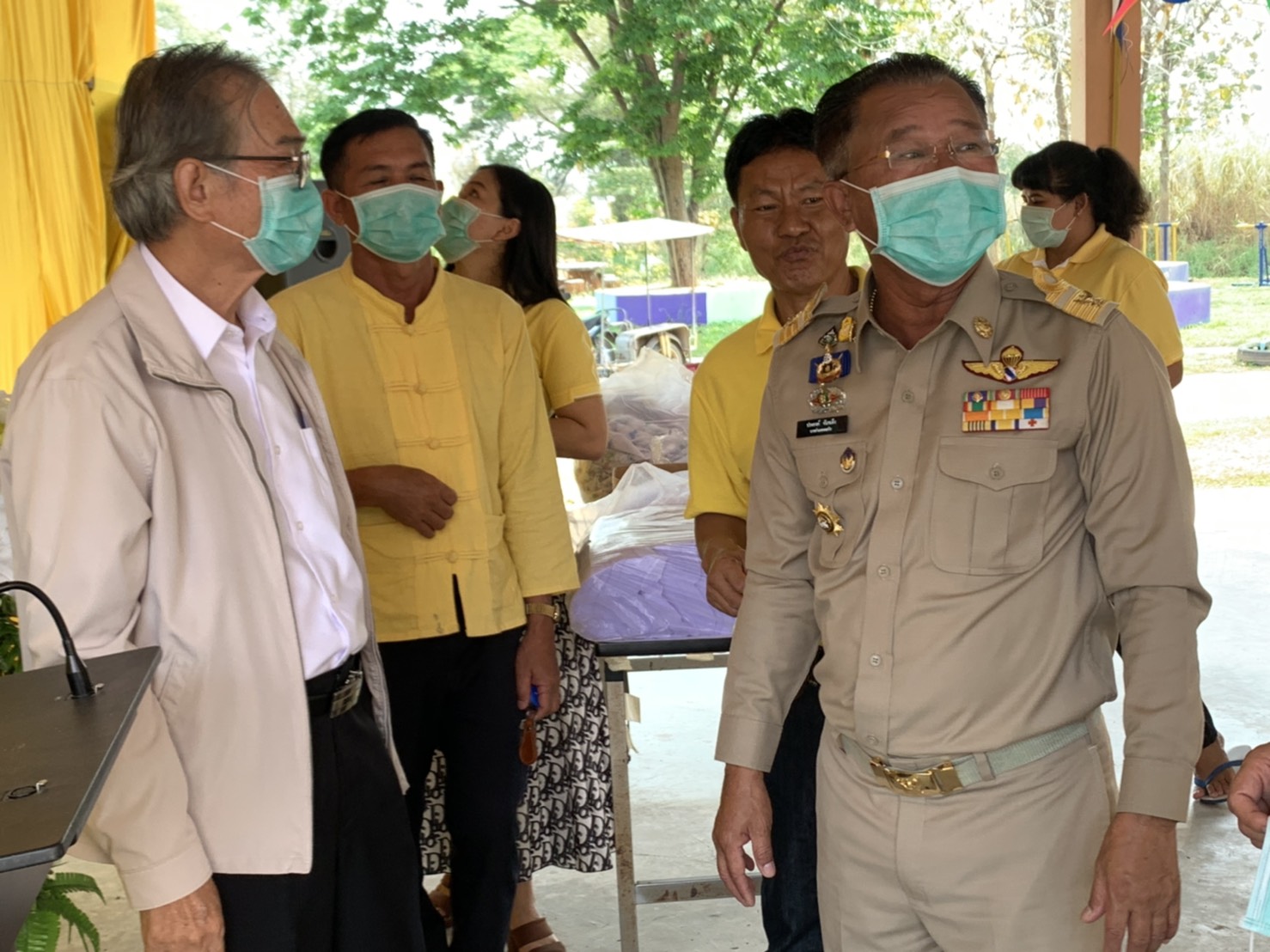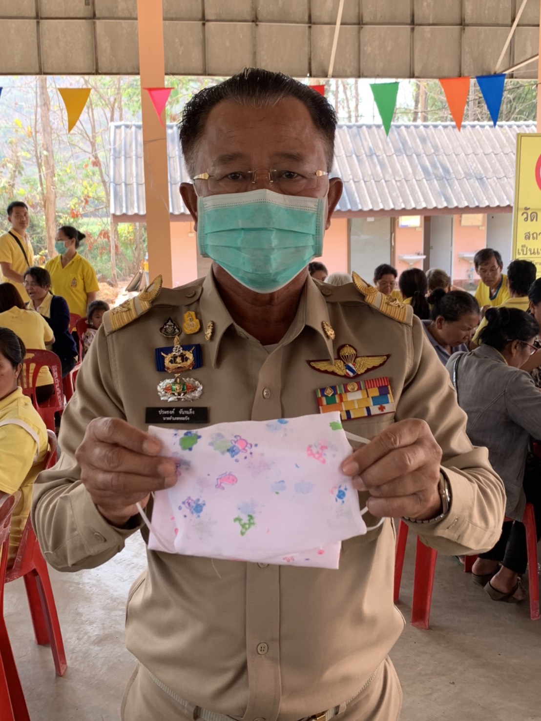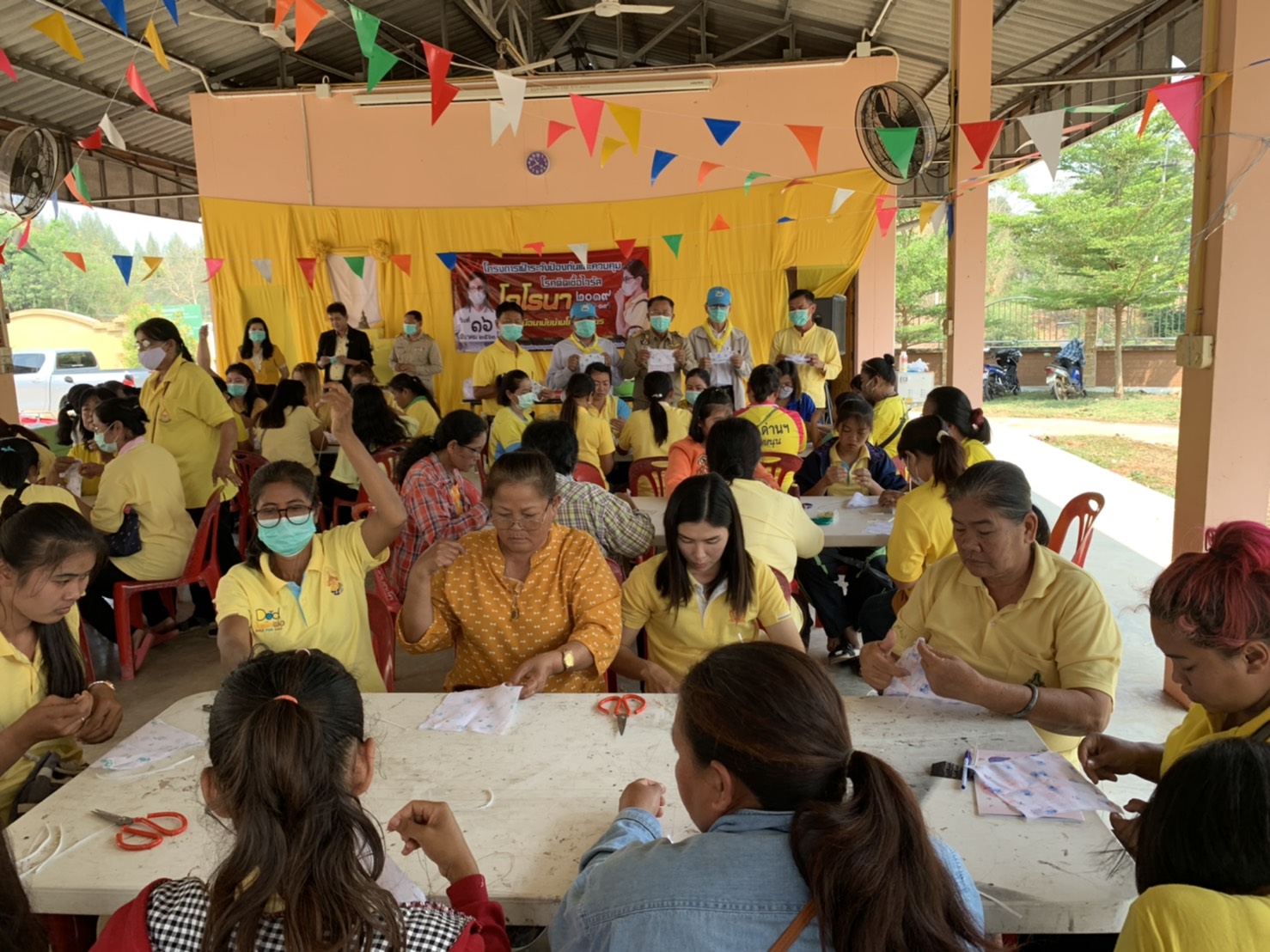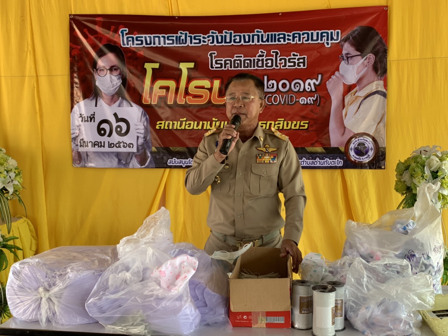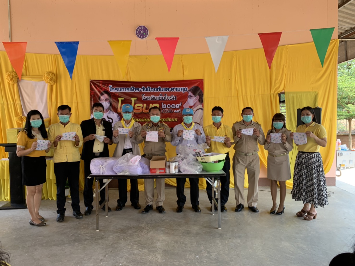 วันจันทร์ที่ 16 มีนาคม 63เวลา 09.00 น นายประยงค์ จันทเต็ง นายอำเภอจอมบึง เป็นประธานเปิดกิจกรรมร่วมทำความดี โดยมี นายประกอบ จิวจินดา นายก อบต ด่านทับตะโก ผอ รพสต โกรกสิงขร กำนัน ผู้ใหญ่บ้าน พร้อมทีมงานชุมชน อสม จิตอาสา จำนวน ช100 คน เข้าร่วมกิจกรรมตัดเย็บหน้ากากป้องกันเชื้อโรคและไวรัสโควิด-19 เพื่อแจกจ่ายให้กับหน่วยงาน สถานศึกษา และประชาชน ที่ รพ.สต. โกรกสิงขร ม. 8