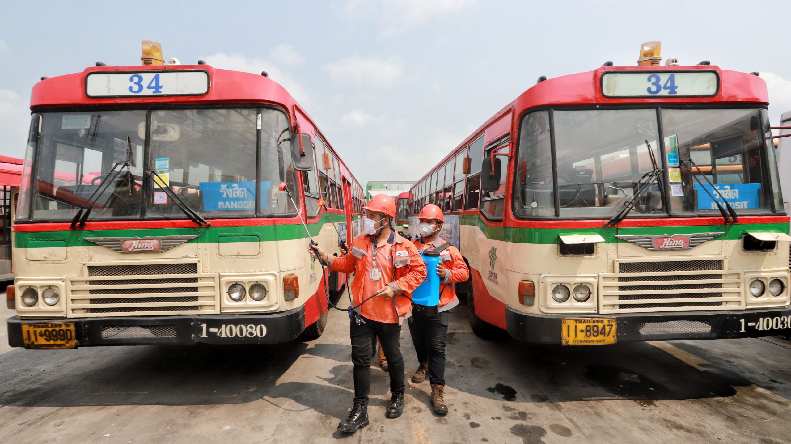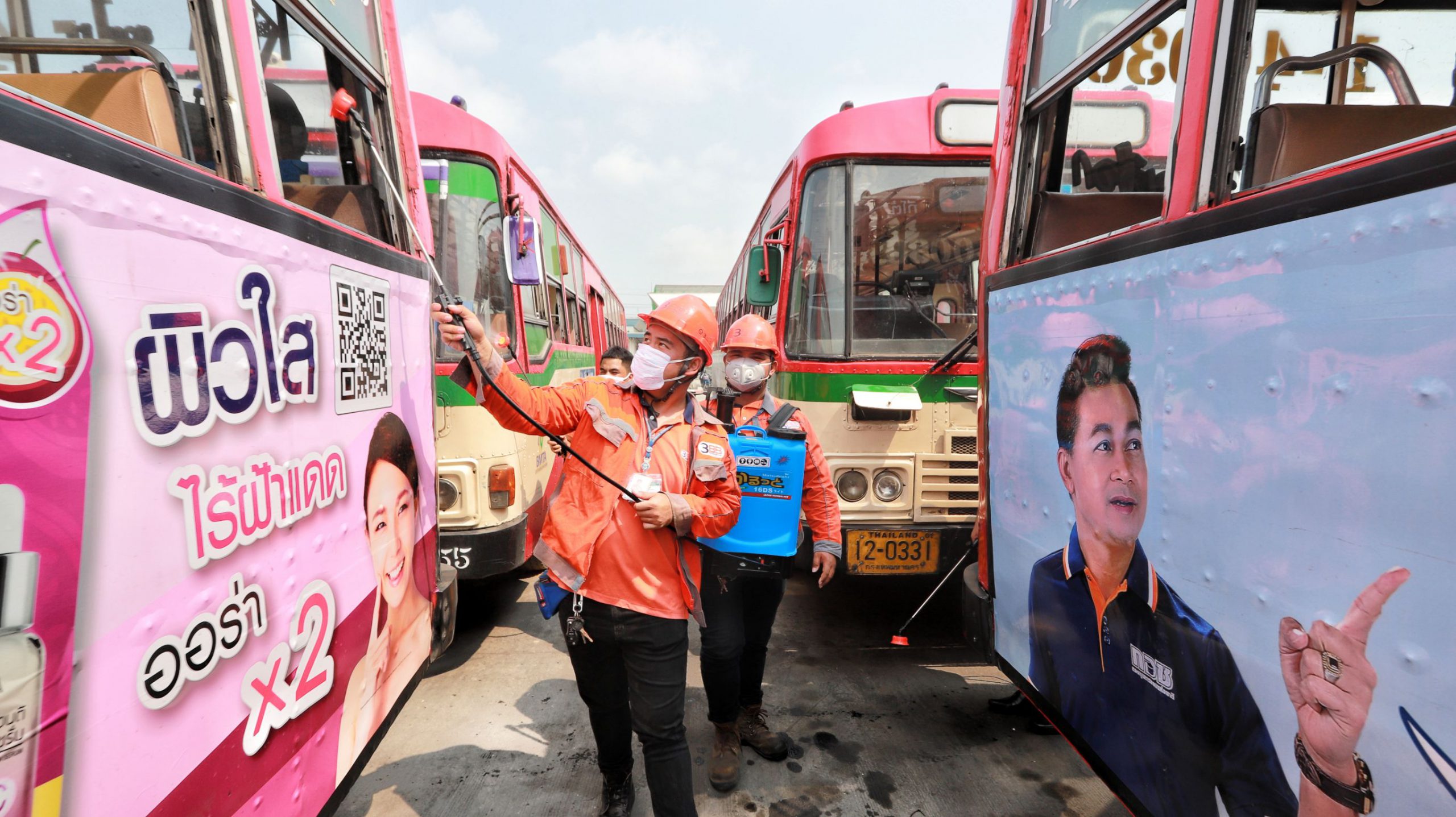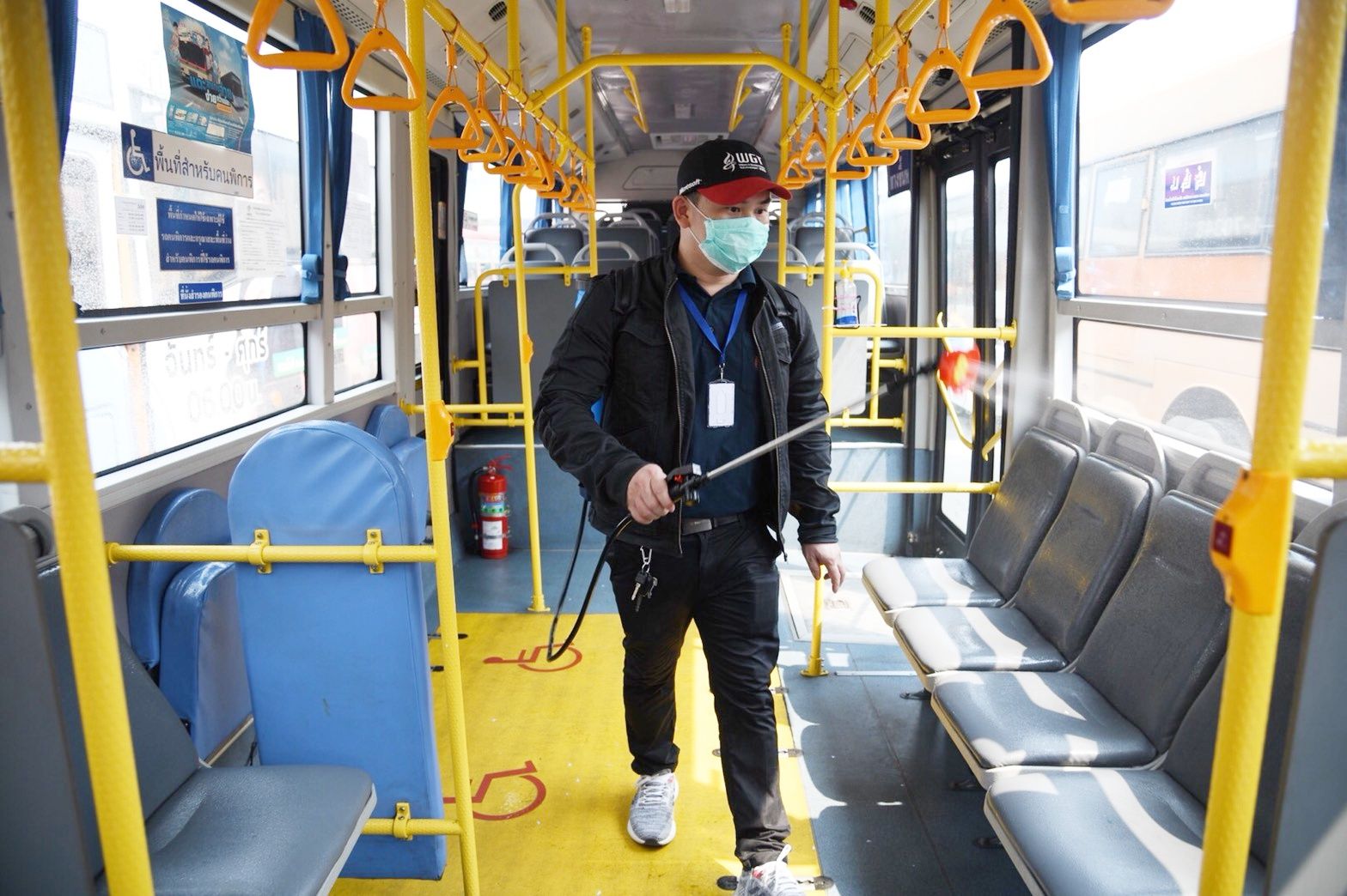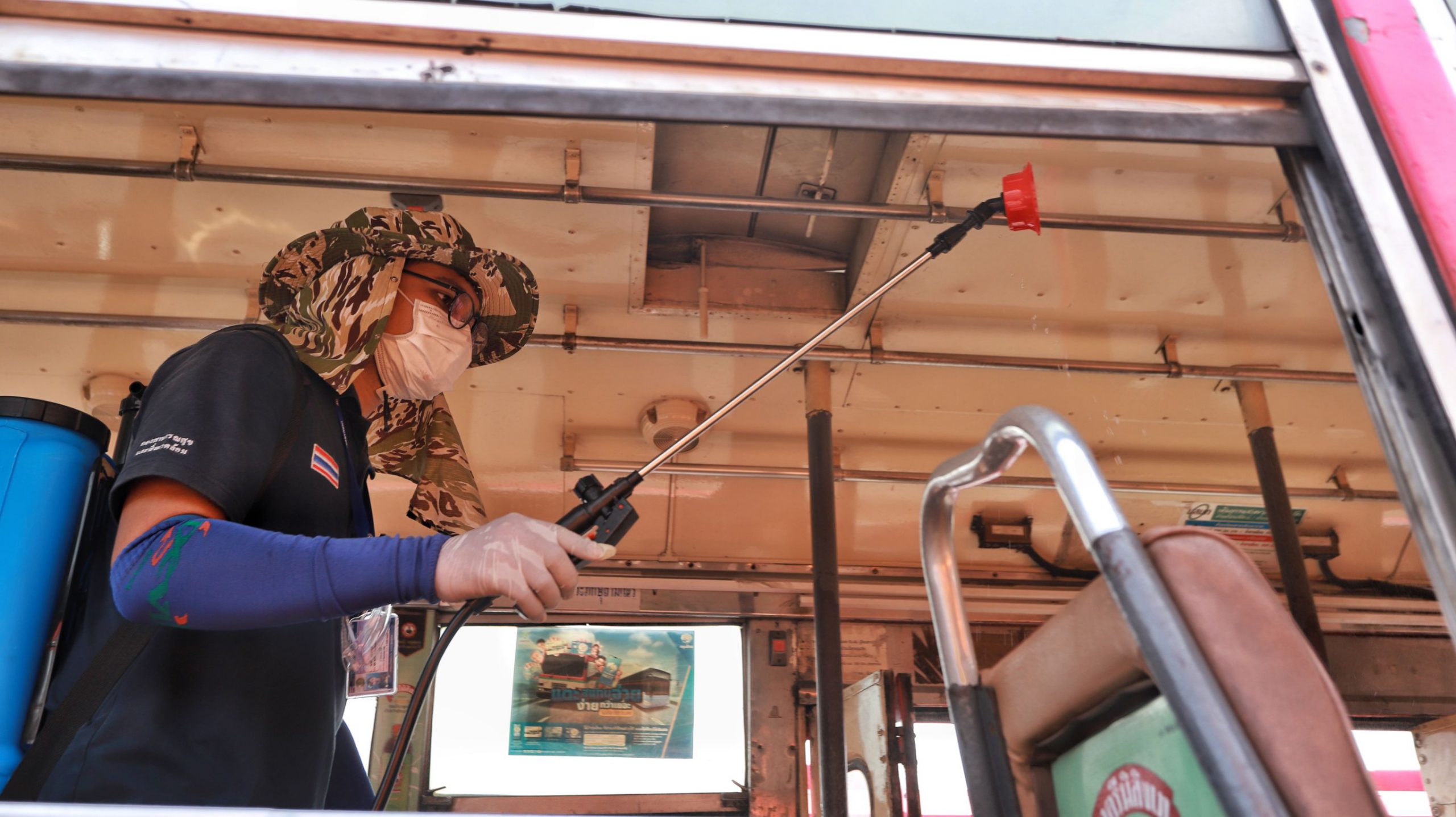 ปทุมธานี ร่วมใจต้านภัย COVID-19 ออกฉีดพ่นน้ำยาฆ่าเชื้อโรคเพื่อป้องกันการแพร่ระบาด เน้นทำความสะอาดจุดเสี่ยงตลาดและรถเมล์โดยสาร