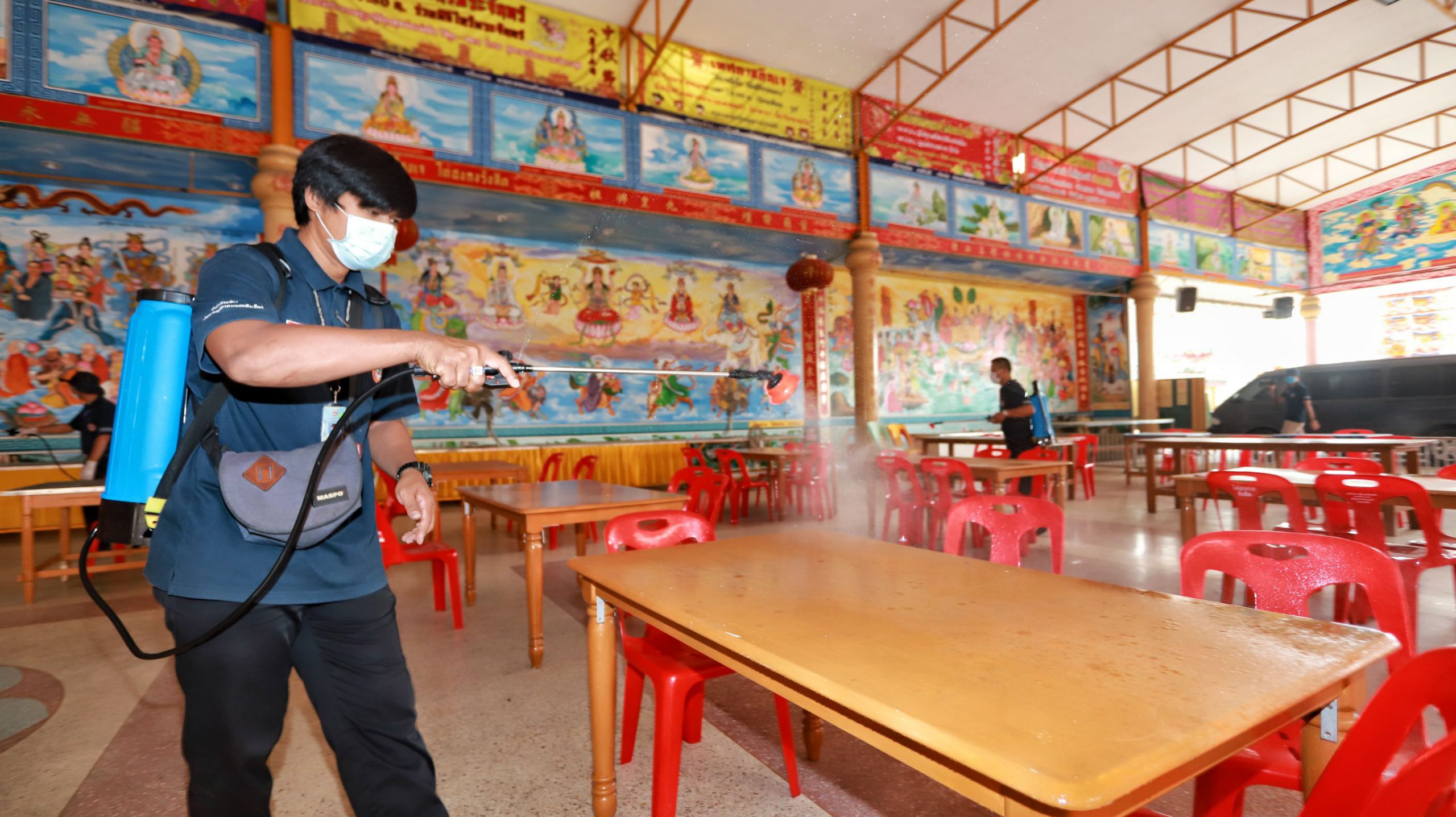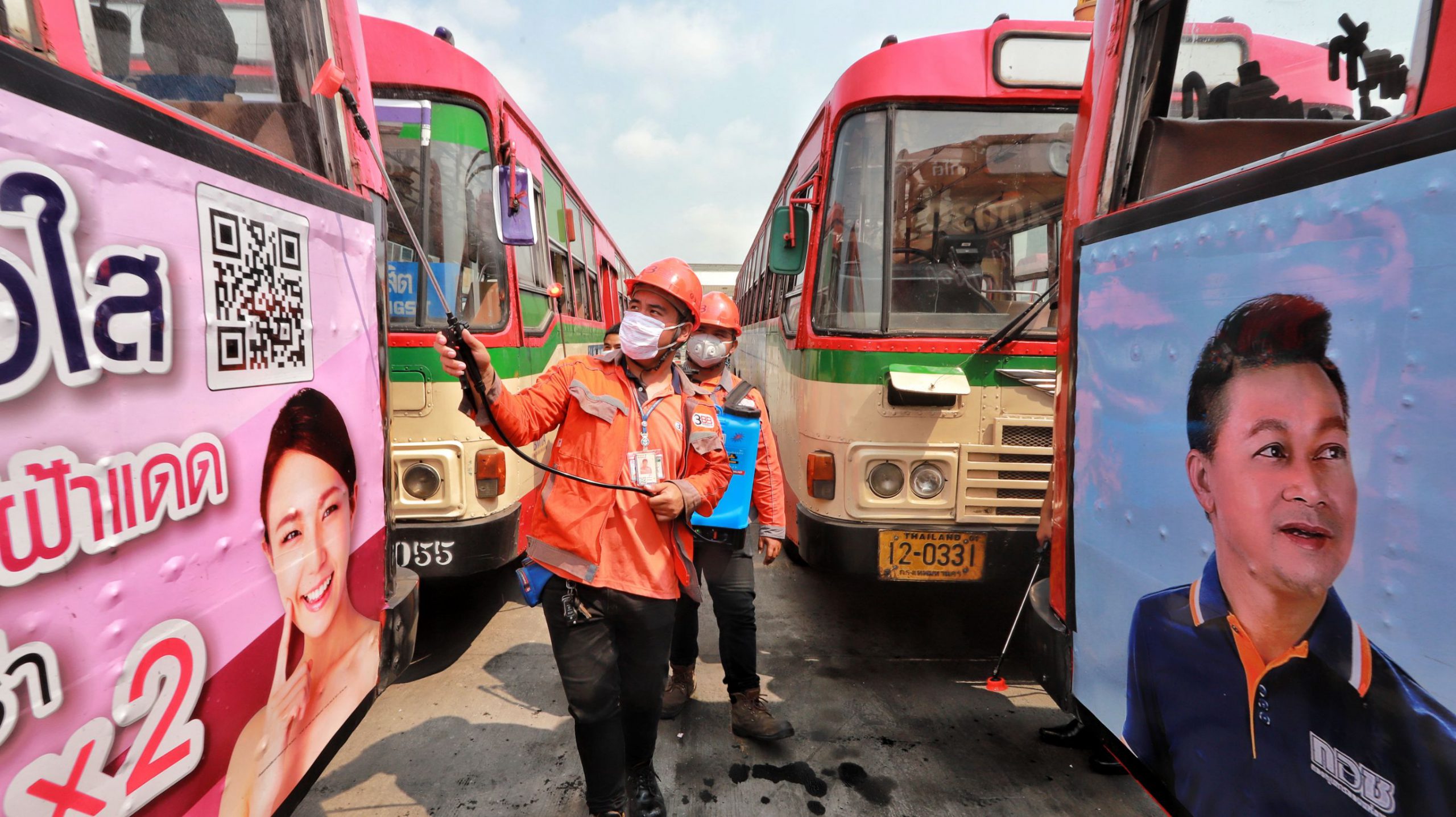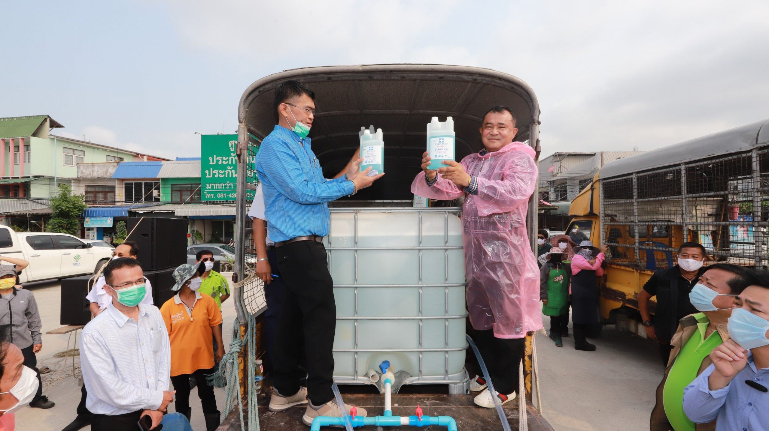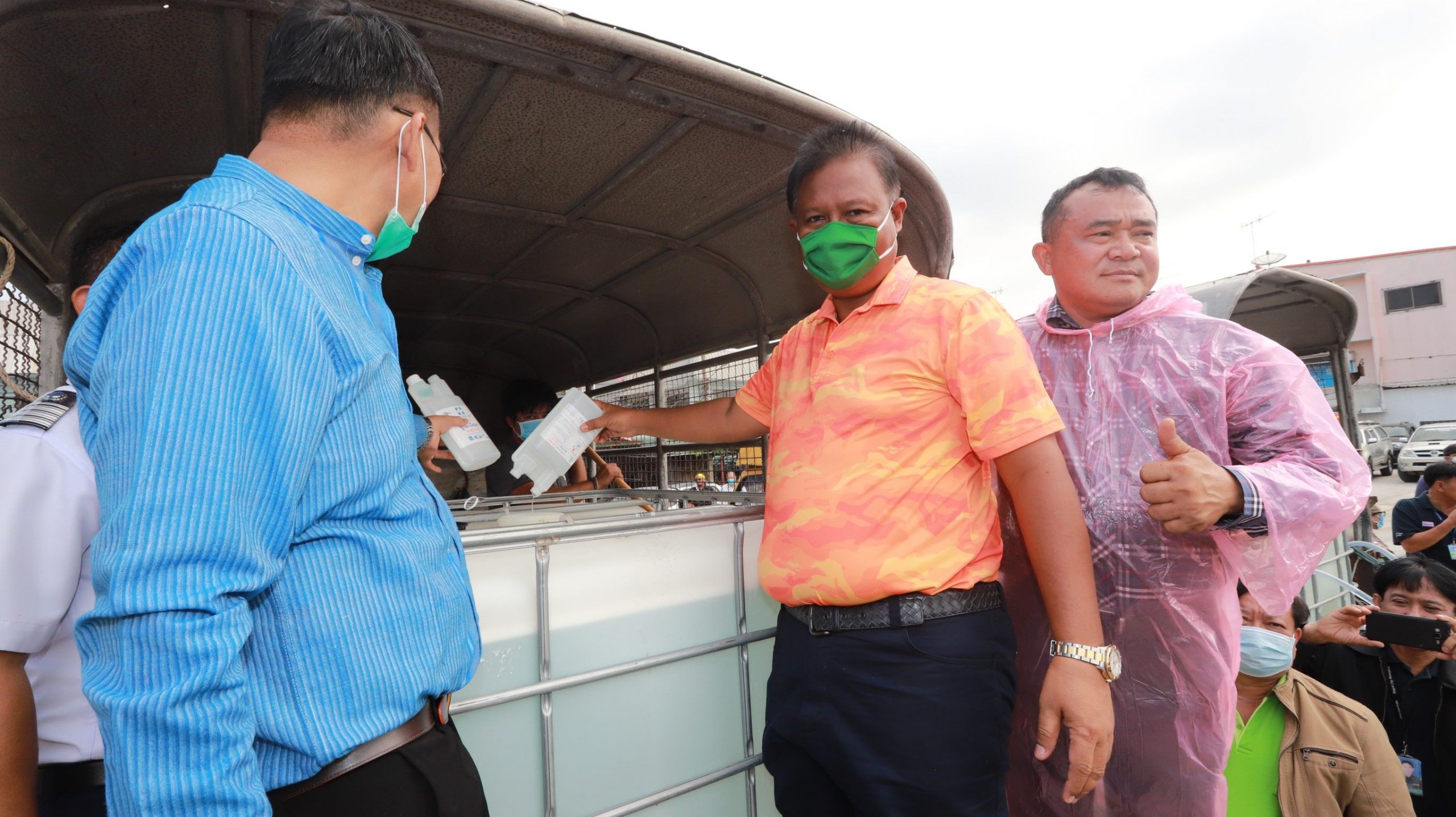 ปทุมธานี ร่วมใจต้านภัย COVID-19 ออกฉีดพ่นน้ำยาฆ่าเชื้อโรคเพื่อป้องกันการแพร่ระบาด เน้นทำความสะอาดจุดเสี่ยงตลาดและรถเมล์โดยสาร