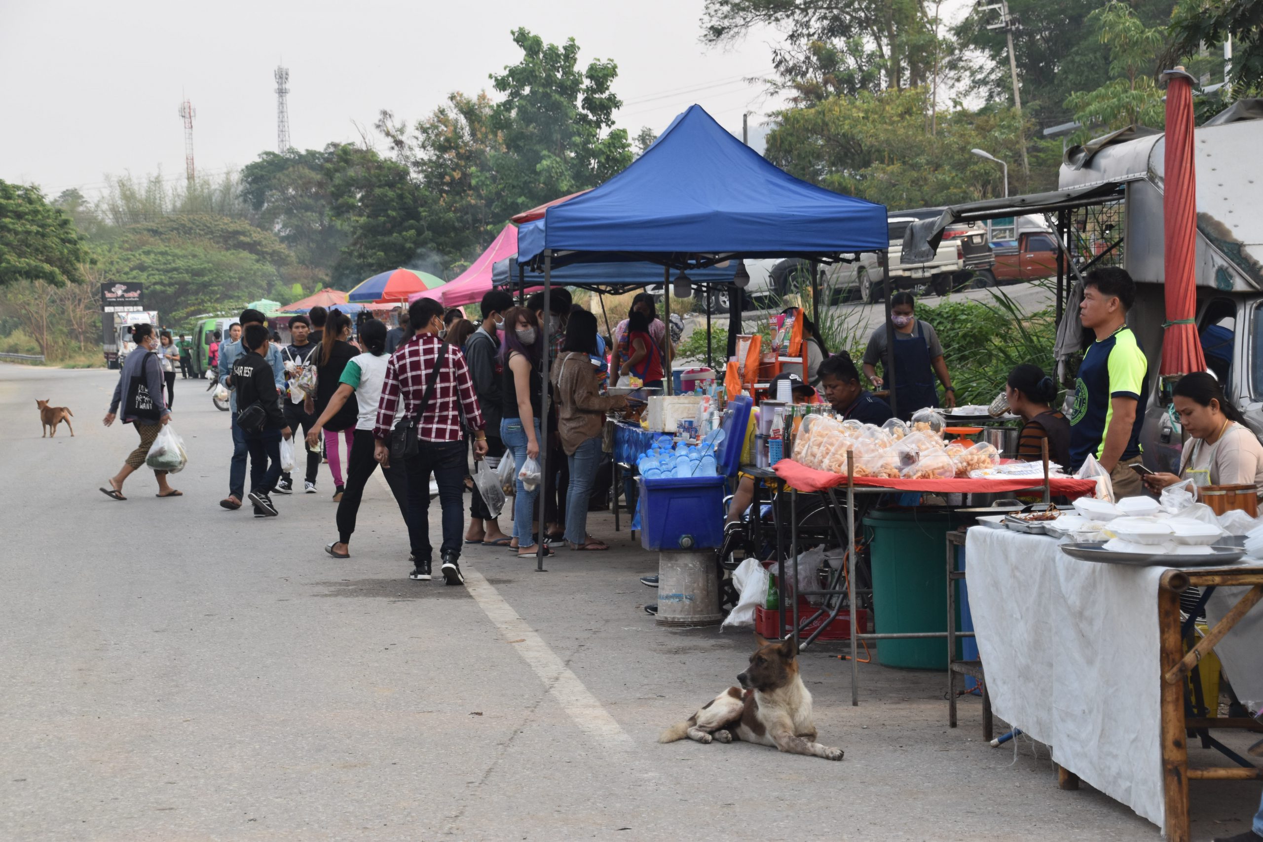 สวนทางด้านเจ้าหน้าที่ผู้สื่อข่าวได้สังเกตุพบว่าเจ้าหน้าที่เกือบทุกนายได้มีการป้องกันตนเองด้วยการสวมใส่หน้ากากอนามัยปิดปากปิดจมูกและยังพบว่ามีนักท่องเที่ยวชาวไทยเดินทางข้ามไปฝั่งประเทศเมียนมากันอย่างคึกคัก จากการสอบถามชางบ้านได้บอกกล่าวกับผู้สื่อข่าวว่าที่ฝั่งประเทศเมียนมาได้มีการเปิดบ่อนการพนันขึ้นเป็นจำนวนมาก ชาวไทยที่เดินทางข้ามไปส่วนใหญ่เดินทางข้ามไปเสี่ยงโชคกันตามบ่อนการพนันต่างๆกันเป็นส่วนใหญ่ จึงทำให้ตรงหน้าด่านตรวจถาวรบ้านพุน้ำร้อนเกิดความคึกคักอย่างนี้ทุกวัน