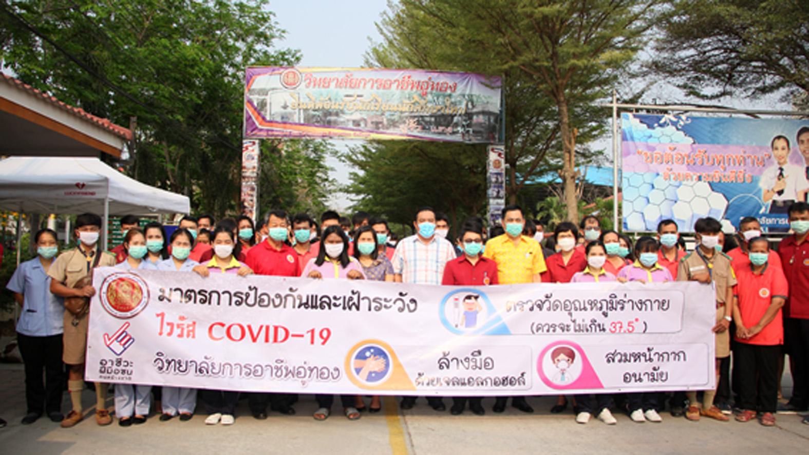 สุพรรณบุรี วิทยาลัยการอาชีพอู่ทองปิดภาคเรียนพร้อมแจกหน้ากากอนามัยป้องกันโควิด19