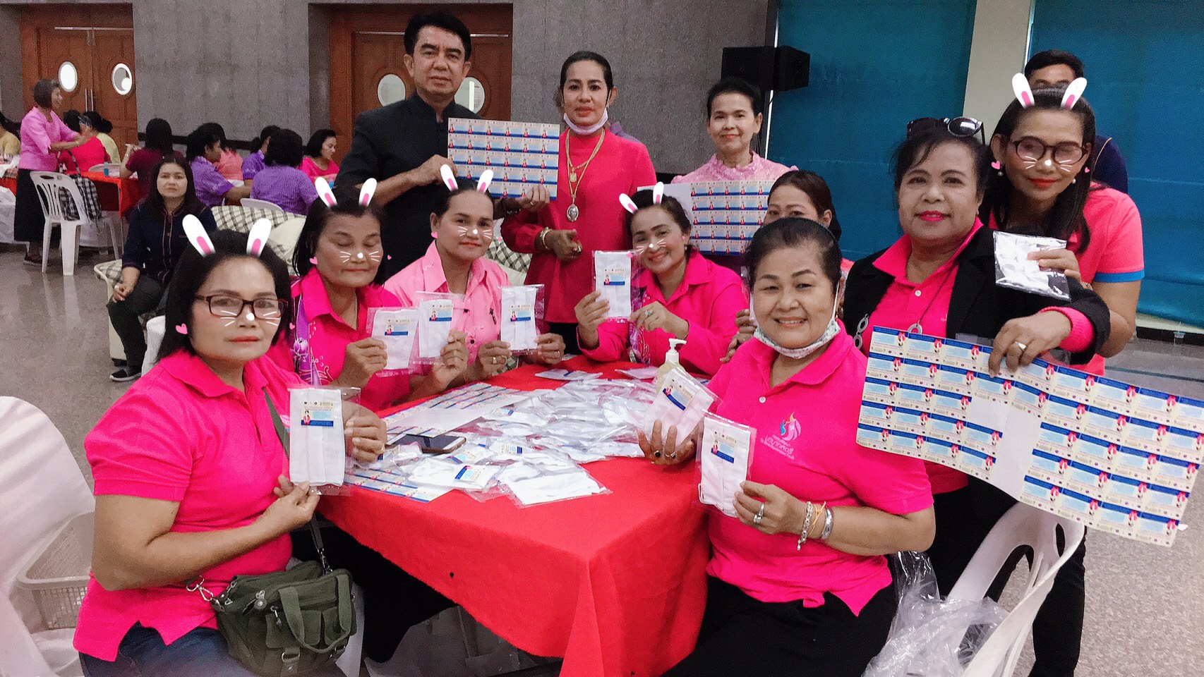 จึงได้รวมพลังภาคีเครือข่ายทั่วประเทศ ประกอบด้วย ผู้นำสตรีและสมาชิกกองทุนพัฒนาบทบาทสตรีทั่วประเทศ ผู้นำอาสาพัฒนาชุมชน (ผู้นำ อช.)อาสาพัฒนาชุมชน (อช.),ผู้ผลิต ผู้ประกอบการ OTOP ศูนย์ประสานงานองค์การชุมชน (ศอช.) คณะกรรมการพัฒนาสตรีหมู่บ้าน (กพสม.) คณะกรรมการหมู่บ้านท่องเที่ยว OTOP นวัตวิถี ปราชญ์ชุมชน คณะกรรมการกลุ่มออมทรัพย์เพื่อการผลิต คณะกรรมการ กข.คจ. คณะกรรมการกองทุนแม่ของแผ่นดิน บริษัท โอทอปอินเตอร์เทรดเดอร์ จำกัด และ บริษัท ประชารัฐรักสามัคคี (วิสาหกิจเพื่อสังคม) จำกัด เป็นกลไกสำคัญในการประสานความร่วมมือในการให้ความรู้เรื่องการป้องกันตัวเองจากการติดเชื้อโรคติดเชื้อไวรัสโควิด-19 และการร่วมกันทำหน้ากากอนามัยแบบผ้าไว้ใช้เอง