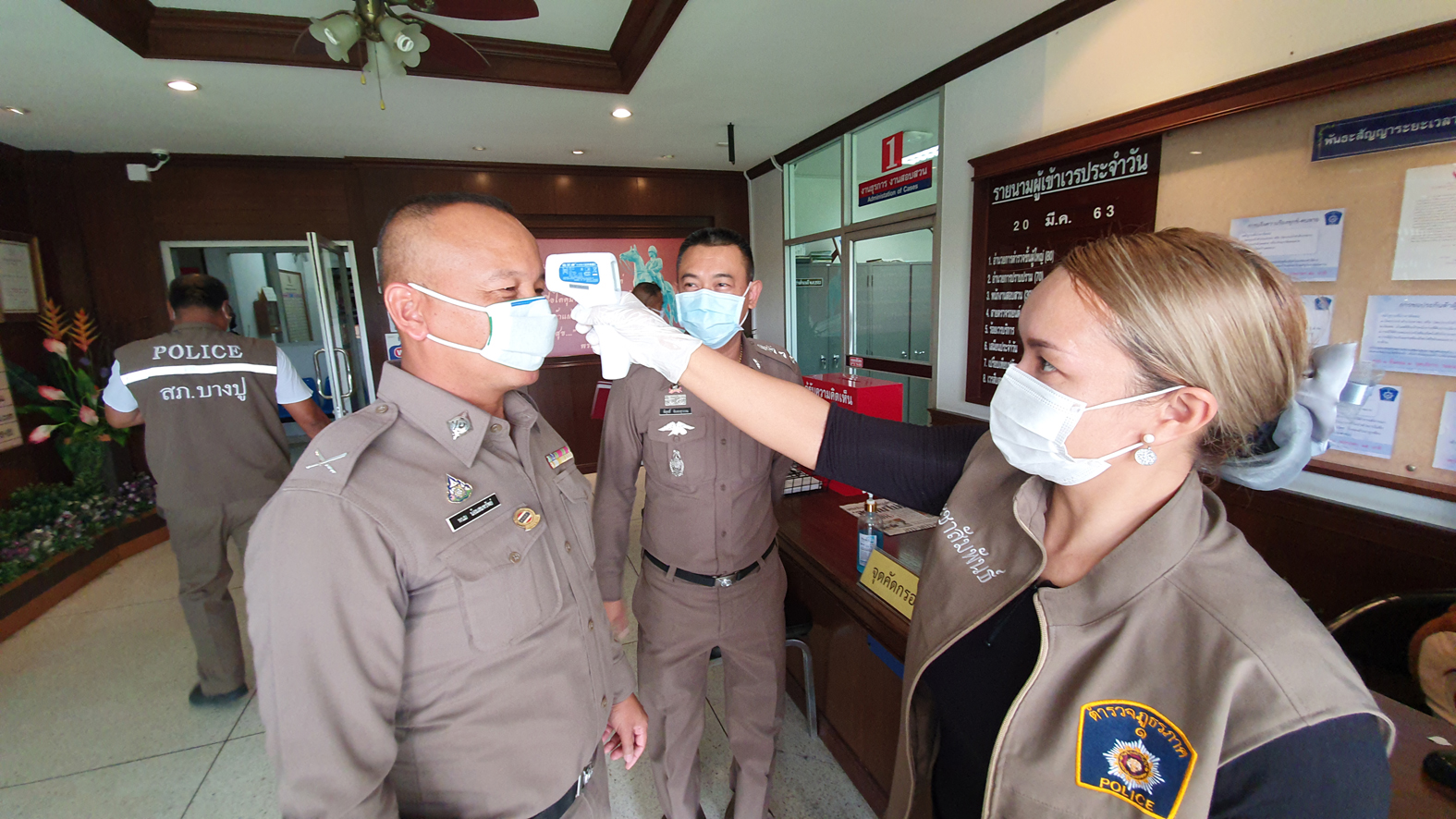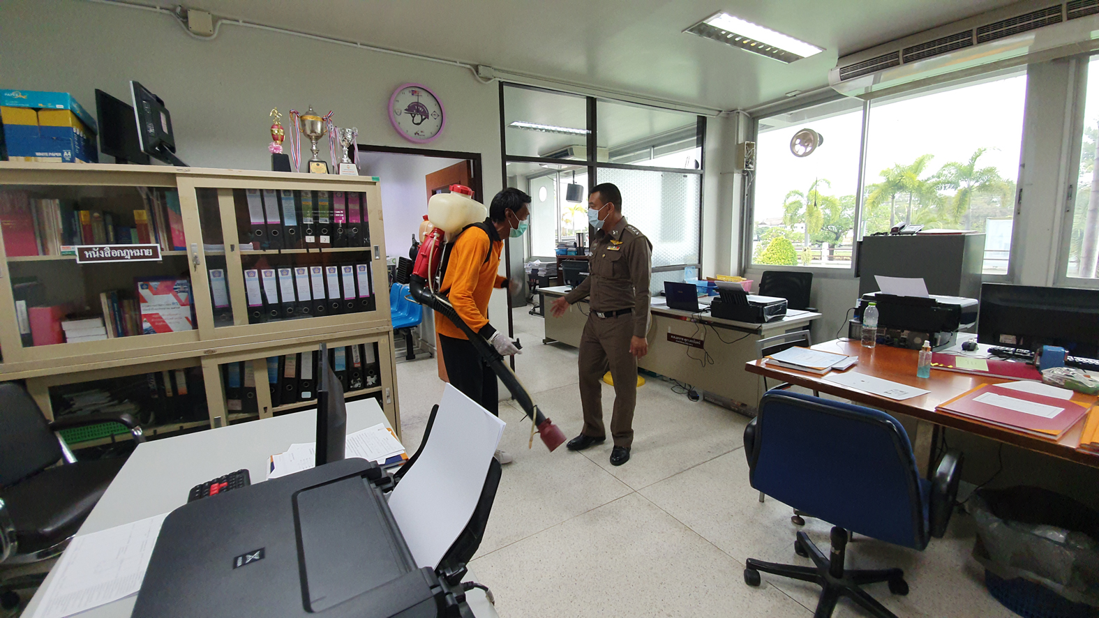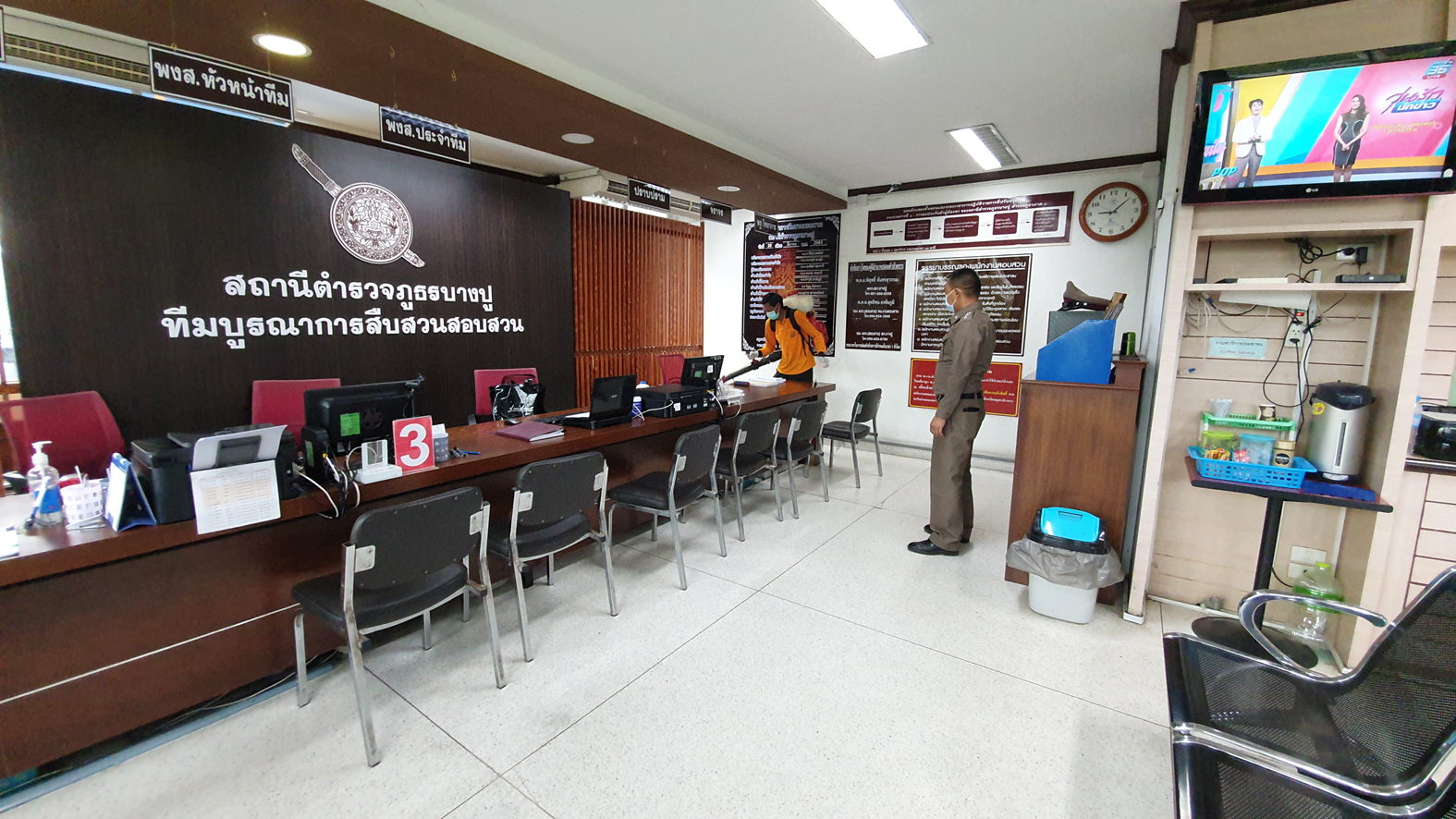 *****เมื่อเวลา 10.00 น.วันที่ 20 มีนาคม 2563 พ.ต.อ.พิสูทธิ์ จันทรสุวรรณ ผกก.สภ.บางปู สมุทรปราการ นำเจ้าหน้าที่สาธารณสุขจากเทศบาลแพรกษาเข้าทำการฉีดพ่นน้ำยาฆ่าเชื้อไวรัส โควิด 19 ภายในห้องทำงานของข้าราชการตำรวจ สภ.บางปู ห้องรับแจ้งความห้องประชุมร่วมทั้งห้องทำงานของเจ้าหน้าที่ฝ่ายต่าง ๆ ภายในและโดยรอบโรงพัก สภ.บางปู หลังจากที่มีข้าราชการตำรวจของ สภ.บางแก้ว ติดเชื้อไวรัสโควิด 19 เมื่อวันก่อน เพื่อความสบายใจของข้าราชการตำรวจผู้ใต้บังคับบัญชาร่วมทั้งประชาชนที่เข้ามาใช้บริการ ในวันนี้ทางจึงได้ประสานขอความร่วมมือเจ้าหน้าที่จากกองสาธารณสุขเทศบาลแพรกษา เข้ามาทำการฉีดพ่นยาฆ่าเชื้อไวรัศโควิด 19 ทั่วทั้งโรงพักร่วมทั้งในห้องควบคุมผู้ต้องขัง และรถสายตรวจ ร่วมทั้งรถจองผู้สื่อข่าวที่ถือว่าอยู่ในกลุ่มเสี่ยง ร่วมทั้งยังมีการตั้งจุดคัดกรองประชาชนและข้าราชการตำรวจใช้เครื่องยิงตรวจวัดอุณหภูมิของร่างกายของผู้เข้ามาใช้บริการและข้าราชการตำรวจโดยมีการติดสติกเกอร์สีแยกกลุ่มคนที่อยู่ในข่ายกลุ่มเสี่ยงหรือมีอุณหภูมิของร่างกายเกิน 37.5 ให้พักรอด้านนอกก่อนเข้าทำการตรวจวัดอุณหภูมิอีกครั้งหลังจากนั่งพักหากพบว่าอุณหภูมิลดลงอยู่ในเกณฑ์ปกติจึงให้เข้าใช้บริการ นอกจากนนี้ยังมีการวางเจวทำความสะอาดมือก่อนเข้าใช้บริการที่บริเวณประตูทางเข้าออกโรงพัก