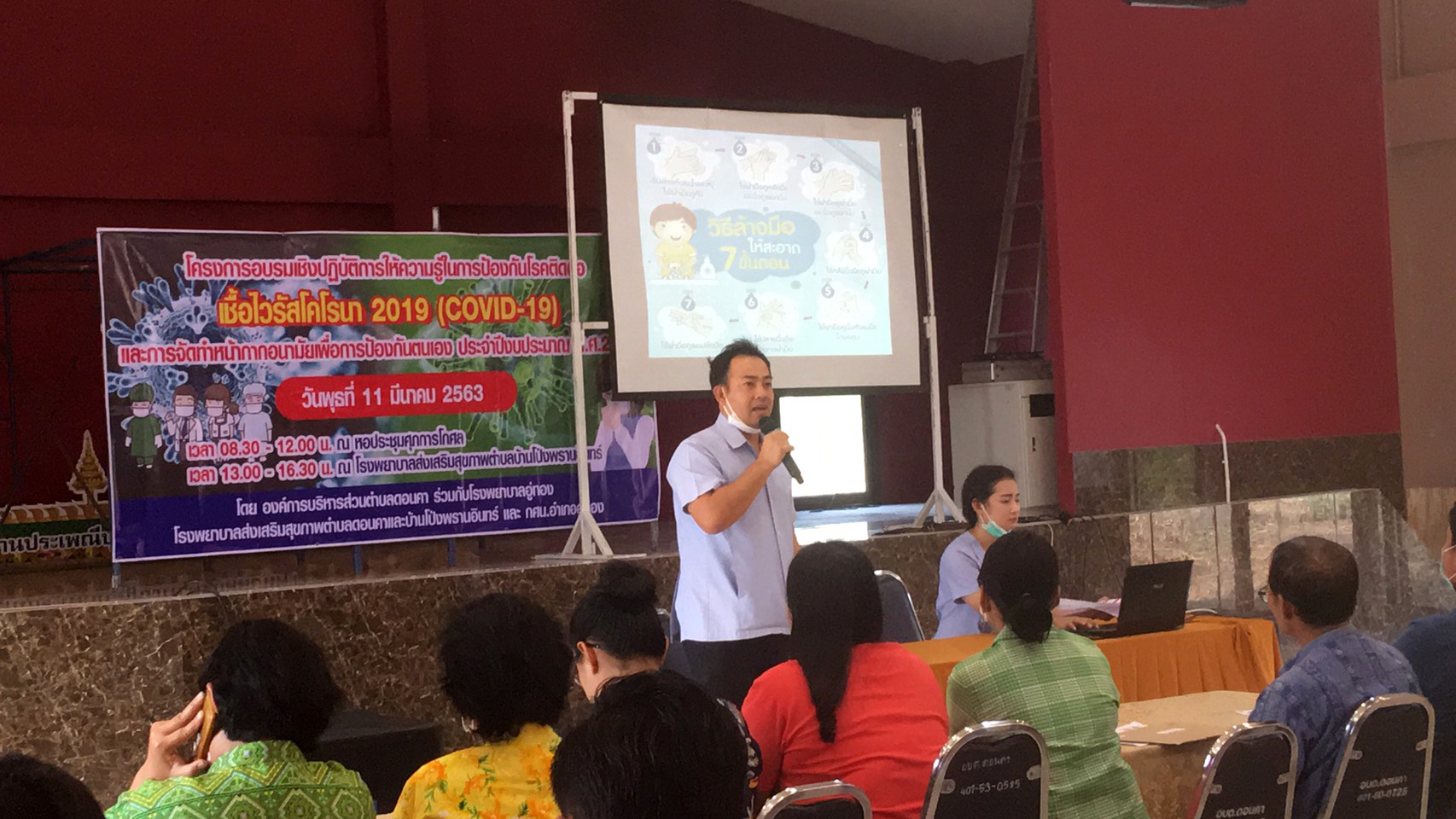 ดังนั้นทาง อบต.จึงได้เร่งดำเนินการให้ความรู้กับประชาชน และ อสม.ในพื้นที่ในการป้องกันตัวเองจากโรคไวรัสโควิด 19 ด้วยการฝึกสอนการทำหน้ากากอนามัยซึ่งหาซื้อยากและขนาดตลาดรวมทั้งการทำเจลล้างมือ เพื่อให้ประชาชนสามารถช่วยเหลือตัวเองได้ในเบื้องต้นโดยได้รับการสนับสนุนจากหลายหน่วยงานทั้งสาธารณสุขอำเภอ โรงพยาบาลอู่ทอง โรงพยาบาลส่งเสริมสุขภาพประจำตำบล มาให้ความรู้และวิธีการทำ โดยมีการนำเครื่องเทอร์โมสแกน มาตรวจวัดไข้ และนำเจลล้างมือมาให้ผู้ที่มาร่วมกิจกรรมล้างมือก่อนเข้าร่วมกิจกรรมเพื่อความปลอดภัย