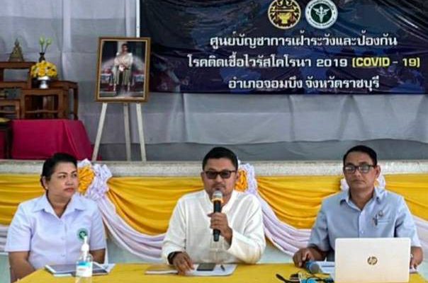ราชุรี อำเภอจอมบึง ประชุมคณะกรรมการศูนย์บัญชาการเฝ้าระวังและป้องกันโรคติดเชื้อไวรัสโคโรนา2019(CIVID – 19) อำเภอจอมบึง จังหวัดราชบุรี ในการรับข้อสั่งการมาตรการ ขั้นตอนการปฏิบัติ การเตรียม ความพร้อมของสถานบริการ ความร่วมมือ ช่องทางการสื่อสารประสานงาน