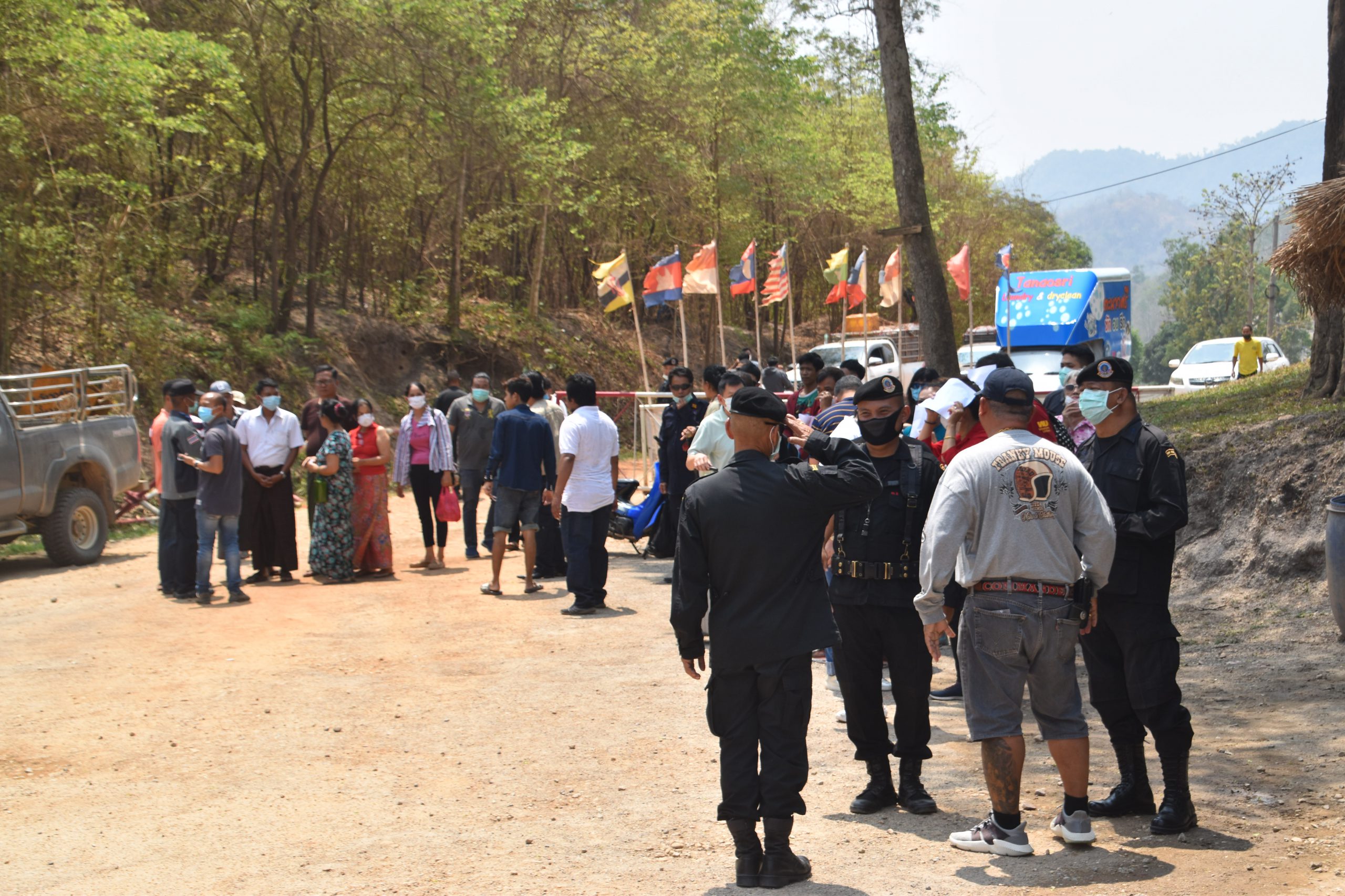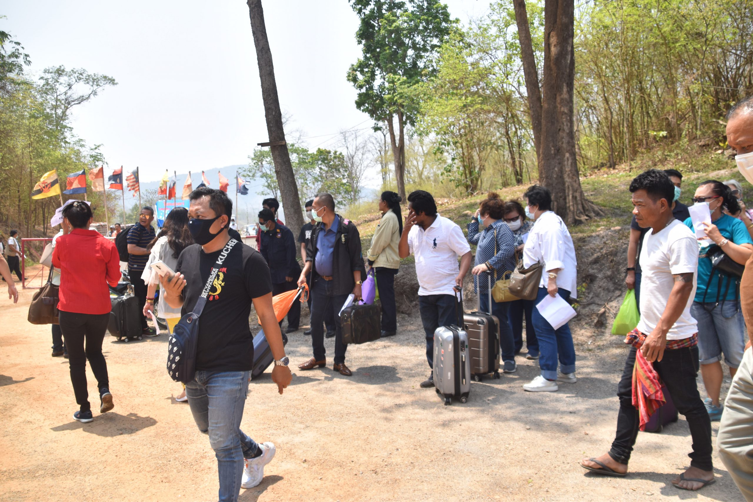 ล่าสุดเวลา 08.30 น. วันนี้ 21 มีนาคม 63 บริเวณจุดผ่านแดนถาวรบ้านพุน้ำร้อน หมู่ 12 ตำบลบ้านเก่า อำเภอเมือง จังหวัดกาญจนบุรี พบว่า มีแรงงานต่างด้าว ชาวเมียนมาทั้งหญิงและชายประมาณ 200 คน เดินทางกลับมาจากสถานที่ทำงานหลายจังหวัด มุ่งหน้ากลับประเทศของตนเองแต่ปรากฏว่าไม่สามารถข้ามชายแดนไปได้ เนื่องจากทางการไทยและเมียนมา ทำการปิดด่าน และห้ามคนไทยและชาวเมียนมาข้ามแดนเป็นการชั่วคราวโดยเด็ดขาด ซึ่งขณะนี้แรงงานทั้งหมดยังคงติดอยู่ที่ฝั่งไทย ใกล้กับจุดผ่านแดนถาวรบ้านพุน้ำร้อน โดยแรงงานชาวเมียนมา ให้ข้อมูลว่า แรงงานทั้งหมดมาจากหลายสถานที่ ทั้งในกรุงเทพฯ จังหวัดสมุทรปราการ และ จังหวัดสมุทรสาคร ประมาณ 200 คน หากกลับประเทศไม่ได้ พวกตนก็ไม่รู้จะทำอย่างไร เพราะที่ทำงานก็แจ้งให้พวกเราหยุดทำงานและกลับบ้านไปก่อน ดังนั้นเมื่อด่านทั้งสองฝั่งปิดเราก็คงต้องอยู่ฝั่งไทยไปจนกว่าจะครบระยะเวลา 14 วัน แต่อยากเรียกร้องให้ทางการไทยและเมียนมาพิจารณาผ่อนปรนเปิดให้ข้ามแดนวันนี้อีกหนึ่งวันก่อนจะทำการปิดด่าน เพื่อพวกเราได้เดินทางกลับประเทศ เนื่องจากสถานการณ์การแพร่ระบาดของไวรัส โควิด 19 มีแนวโน้มรุนแรงขึ้น อย่างไรก็ตามเหตุการณ์บริเวณชายแดนยังคงสงบเรียบร้อย โดยมีเจ้าหน้าตำรวจตรวจคนเข้าเมืองคอยประชาสัมพันธ์ให้แรงงานได้เข้าใจตามประกาศของกระทรวงมหาดไทย ขณะเดียวกันมีนักท่องเที่ยวชาวไทยจำนวนหนึ่ง ซึ่งข้ามไปท่องเที่ยวยังเมืองทวาย ภาคตะนาวศรี ประเทศเมียนมา และอีกส่วนหนึ่งเป็นนักแสวงโชคที่ข้ามไปเสี่ยงโชคกันตามบ่อนการพนันต่างๆ ในบ่อนฝั่งบ้านทิกิ ตรงข้ามบ้านพุน้ำร้อน ยังไม่สามารถเดินทางกลับประเทศได้เช่นกัน ซึ่งคาดว่ามีประมาณ 300 คนต่อมาเมื่อเวลา 10.30 น. นายจีระเกียรติ ภูมิสวัสดิ์ ผู้ว่าราชการจังหวัดกาญจนบุรี ได้เดินทางมาที่ด่านผ่านแดนถาวรบ้านพุน้ำร้อน ตำบลบ้านเก่าอำเภอเมือง จังหวัดกาญจนบุรี เพื่อตรวจความเรียบร้อย หลังจากที่ได้ประกาศห้ามบุคคล และยานพาหนะ เข้า – ออก ประเทศไทย และได้รับการร้องเรียนว่า หลังจากมีประกาศห้ามบุคคล และยานพาหนะเข้า – ออก มีประชาชนไทยที่เดินทางเข้าไปท่องเที่ยว และแสวงโชค (เล่นการพนัน)ในประเทศเมียนมา กว่า 300 คน ไม่สามารถเดินทางกลับมายังประเทศไทยได้ นายจีระเกียรติ จึงได้สั่งการให้ เจ้าหน้าที่ตรวจคนเข้าเมือง นำคนไทยที่ตกค้างในประเทศเมียนมา กลับมายังประเทศไทยภายใน 18.00 น.ของวันนี้ 21 มีนาคม 2563 และให้นำประชาชนชาวเมียนมากลับประเทศ ภายในวันนี้เช่นกัน ส่วนอาหารที่ชาวเมียนมาต้องอาศัยซื้อจากประ