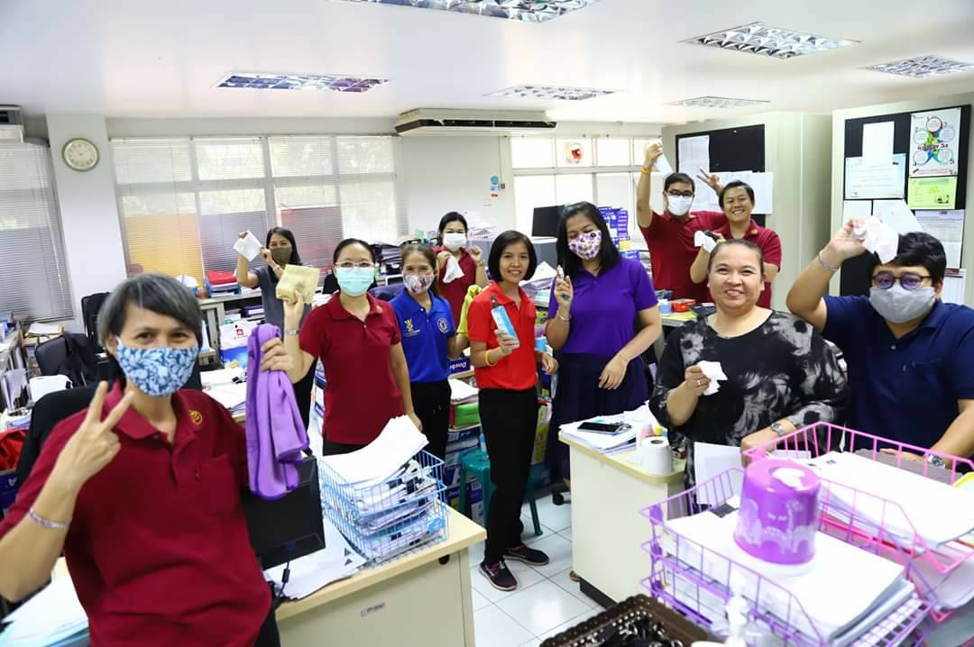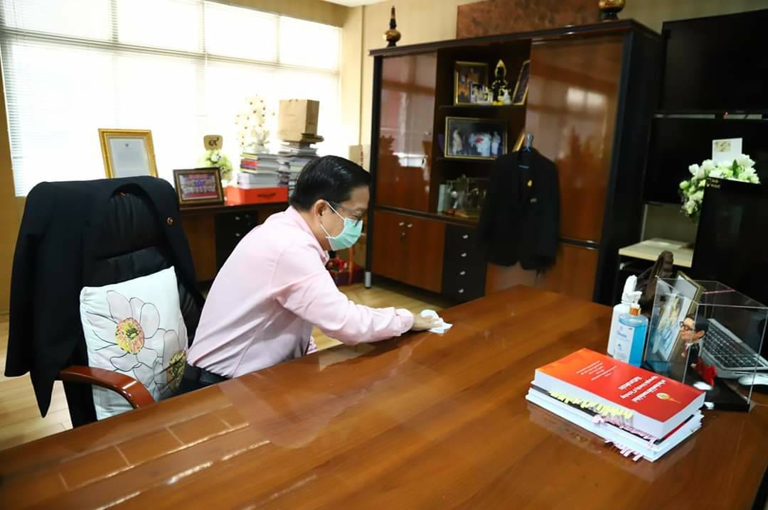 เน้นการเช็ดล้างทำความสะอาดบริเวณจุดสัมผัสร่วม เช่น ประตู ลูกบิด หน้าต่าง โต๊ะทำงาน โทรศัพท์ เครื่องสแกนลายนิ้วมือ เครื่องถ่ายเอกสาร ณ มทร.รัตนโกสินทร์ พื้นที่ศาลายา