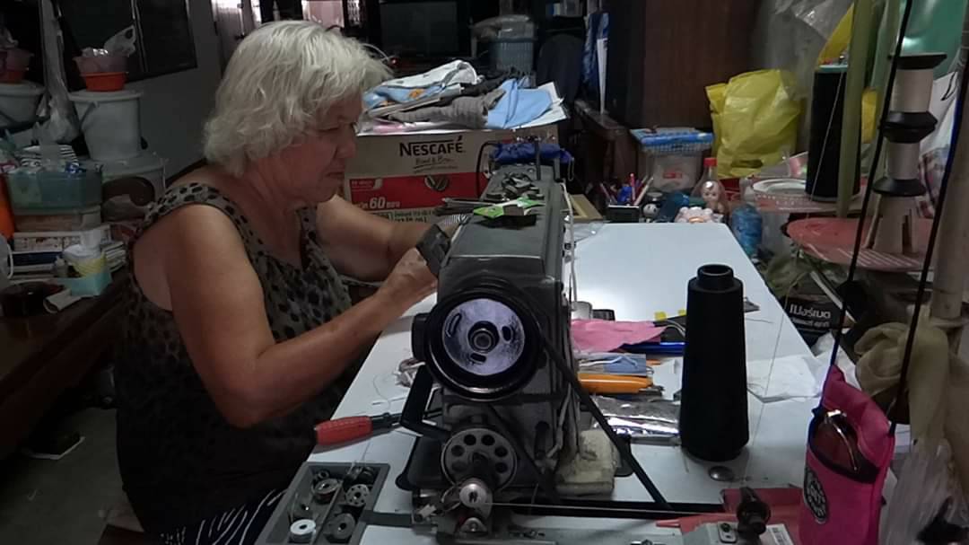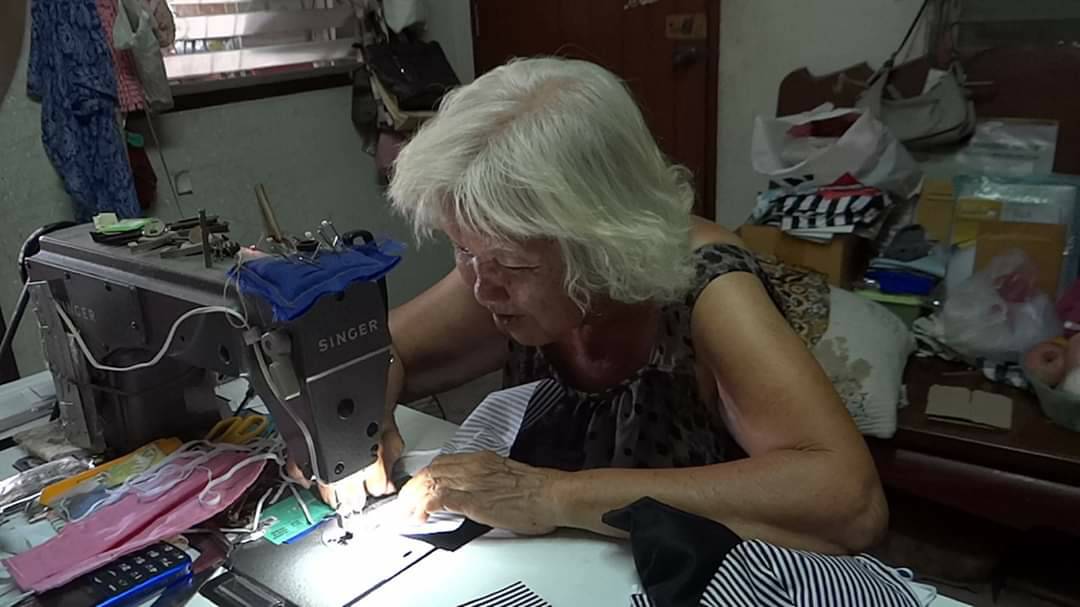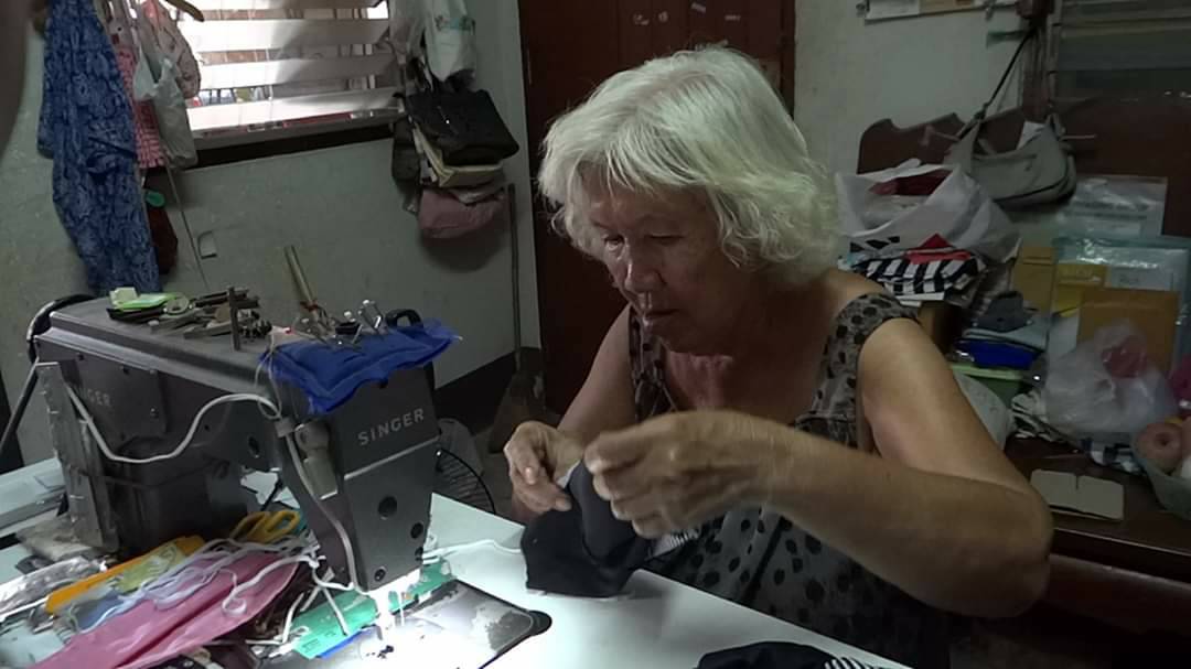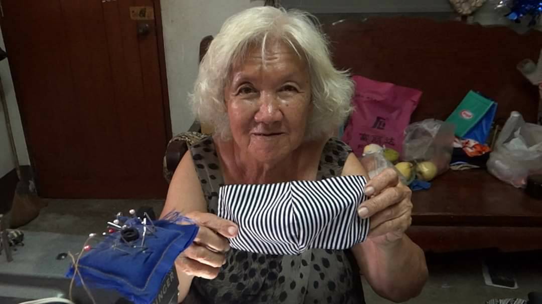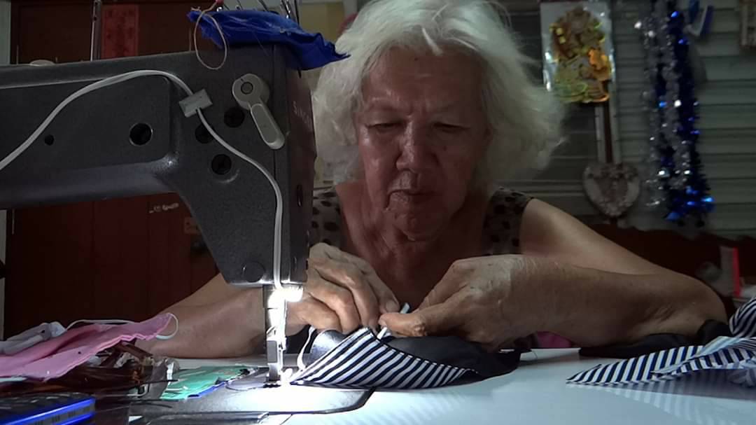 อาจติดเชื้อไวรัสได้ง่าย จึงพยายามหาซื้อหน้ากากอนามัยมาสวมใส่ปกป้องตัวเอง แต่ก็หาซื้อไม่ได้เพราะทางร้านบอกขาดตลาด เมื่อกลับมาที่บ้านจึงตัดสินใจนำผ้าที่เหลือจากการตัดเย็บเสื้อ มาตัดเย็บเป็นหน้ากากอนามัย ตอนแรกตัดเย็บเพื่อต้องการไว้สวมใส่เองภายในบ้าน แต่พอมีคนรู้เรื่องก็มาขอซื้อ อาม่าเห็นว่าในช่วงนี้หน้ากากอนามัยขาดแคลนทุกคนก็ต่างพากันหาซื้อ แต่ก็หาซื้อได้ยาก อาม่าจึงสละเวลาว่างจากการตัดเย็บเสื้อผ้ามาตัดเย็บหน้ากากอนามัย และนำหน้ากากอนามัยที่ได้จากการตัดเย็บ มอบให้กับเพื่อนบ้านในชุมชน และบุคคลที่รู้ข่าวต่างมาขอรับไปไว้สวมใส่เพื่อป้องกันเชื้อไวรัส ซึ่งอาม่าได้ตัดเย็บหน้ากากอามัยแจกจ่ายให้กับเพื่อนบ้านในชุมชน และคนอื่นที่ต้องการไปแล้วกว่า 100 ชิ้น และยังตัดเย็บเพิ่มเติม เพื่อเตรียมแจกจ่ายต่อ แต่ตอนนี้อาม่าติดปัญหาคือหาซื้อยางยืดไม่ได้ เนื่องจากเริ่มขาดตลาด ที่มีขายก็ขายเป็นเมตรๆละ 10 บาท ไม่ได้มีขายยกม้วนเหมือนที่เคยซื้อ จึงทำให้การตัดเย็บล่าช้า