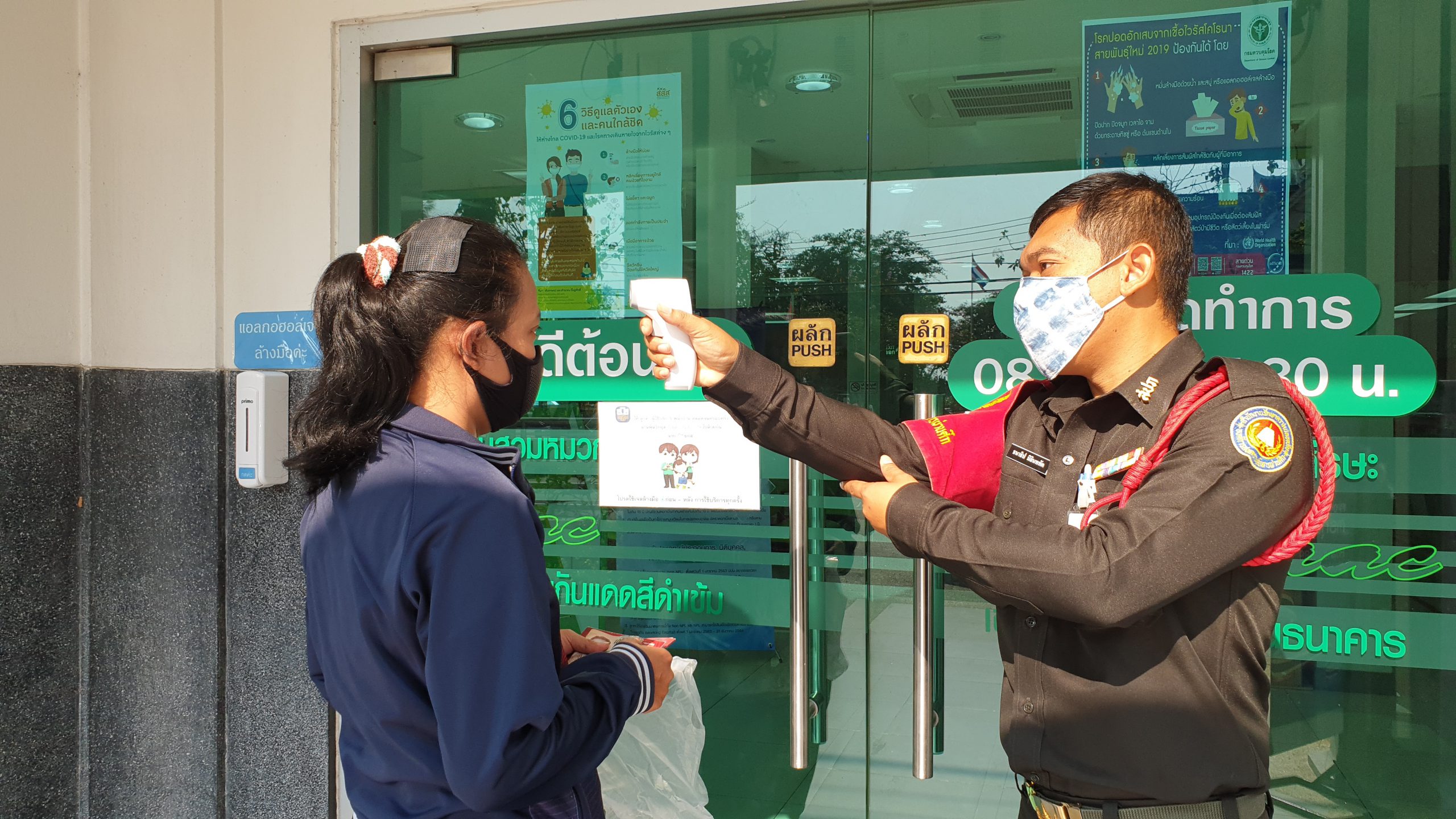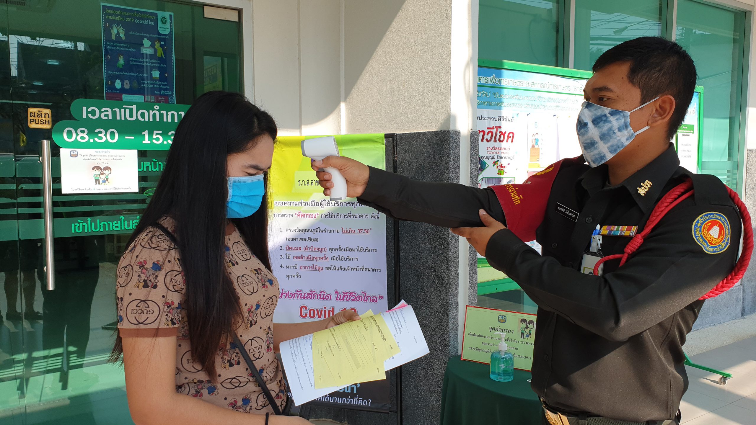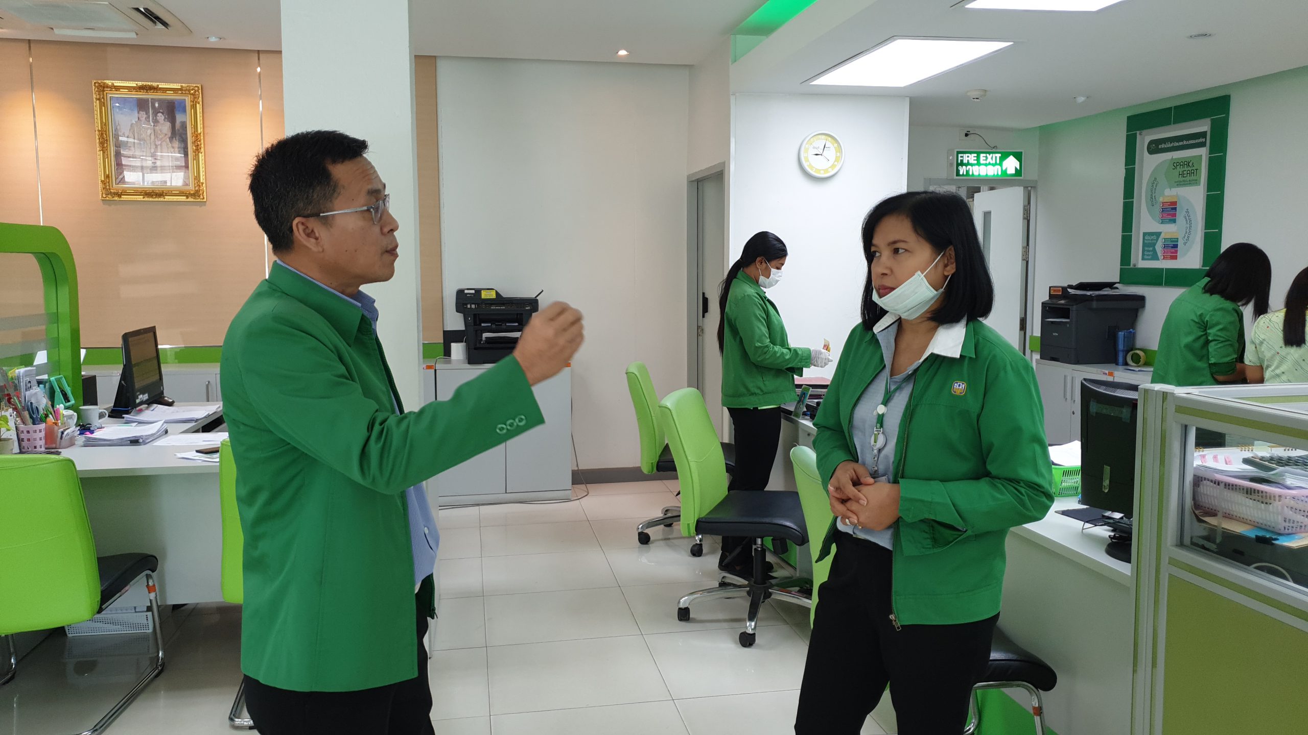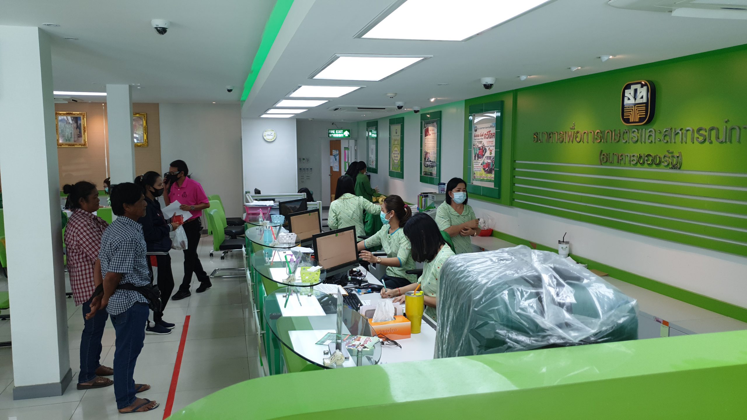 วันที่ 24 มีนาคม 63 ผู้สื่อข่าวรายงานว่า จากกรณีสถานการณ์โรคไวรัสปอดอักเสบสายพันธุ์ใหม่ โควิด-19 ที่กำลังแพร่กระจายระบาดในหลายพื้นที่ทั่วทุกภาคของประเทศไทย และหลายหน่วยงานภาครัฐ-ภาคเอกชน กำลังเร่งร่วมกันแก้ไขปัญหาควบคุมวงจรการแพร่ระบาด ซึ่งธนาคารเพื่อการเกษตรและสหกรณ์การเกษตร(ธกส.) ซึ่งเป็นธนาคารของรัฐก็ได้มีมาตรการในการป้องกันการติดเชื้อ และการแพร่ระบาดจากลูกค้าของทางธนาคารที่มาติดต่อใช้บริการ โดยได้จัดให้มี เจ้าหน้าที่คอยควบคุมดูแลทางเข้า-ออก การตรวจวัดอุณหภูมิในร่างกายด้วยเครื่องเทอร์โมสแกน การล้างมือด้วยเจลแอลกอฮอล์ทั้งก่อนใช้บริการและหลังใช้บริการ รวมถึงจัดระยะห่างของเก้าอี้นั่งรอและยืนรอระหว่างใช้บริการอย่างน้อยประมาณ 1 เมตร ระหว่างผู้มาใช้บริการด้วยกันเอง และเจ้าหน้าที่ผู้ปฏิบัติงานของทางธนาคาร พร้อมสวมใส่หน้ากากอนามัยป้องกัน นอกจากนี้ทางธนาคารยังได้มีการทำความสะอาดบริเวณเก้าอี้นั่ง เครื่องกดบัตรคิวตลอดเวลา และมีการล้างแอร์ฆ่าเชื้อโรคทุกสัปดาห์ เป็นต้น