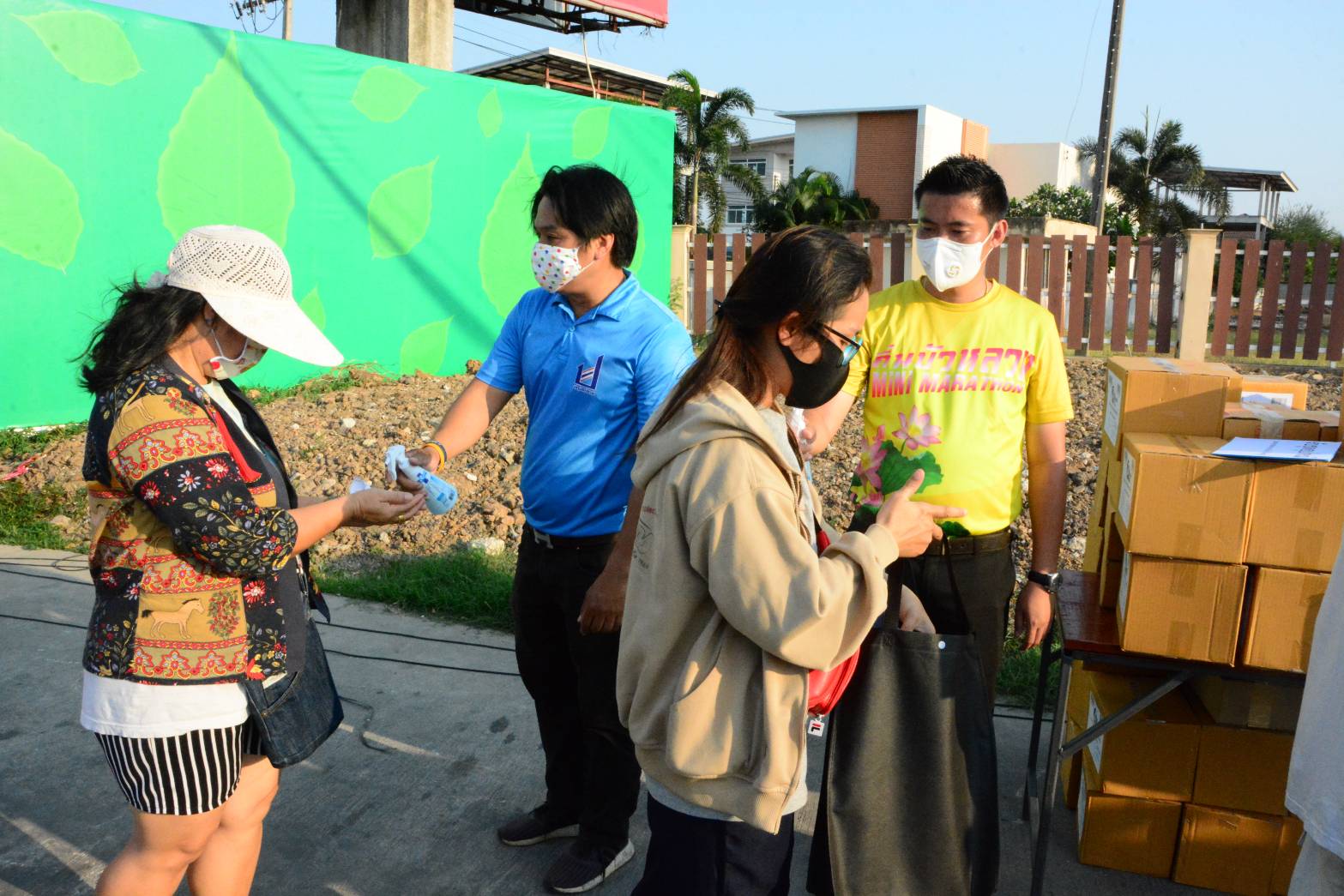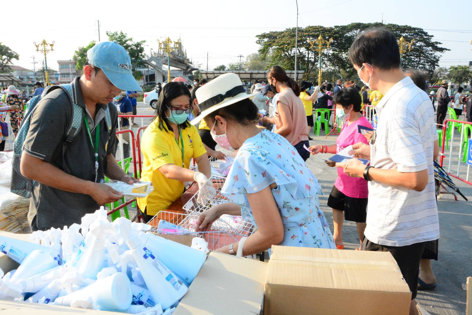 นายกเบี้ยวจัดให้ เทศบาลตำบลธัญบุรี แจกหน้ากากอนามัย เจลล้างมือ และแอลกอฮอล์ล้างมือ ให้กับชาวบ้านในพื้นที่ ต่อสู้โควิท-19