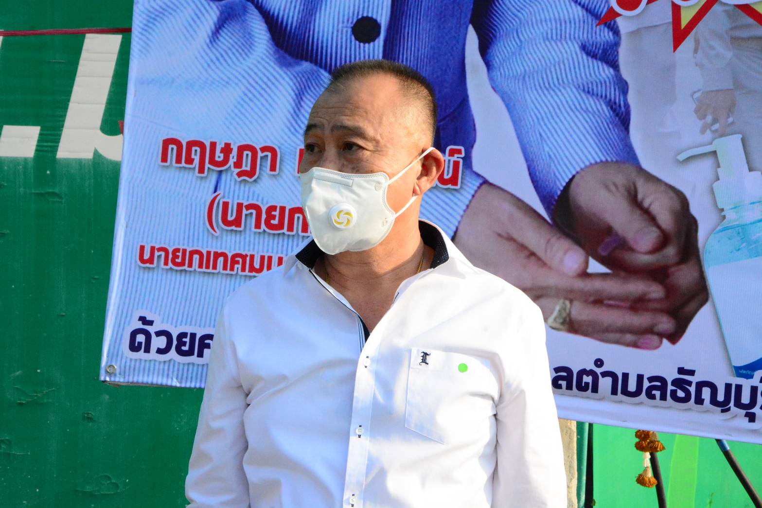 ด้าน นายกฤษฎา หลีนวรัตน์ นายกเทศมนตรีตำบลธัญบุรี กล่าวว่า ในวันนี้ทางเทศบาลตำบลธัญบุรี ได้นำหน้ากากอนามัยจำนวนกว่า 2000 ชิ้น เจลล้างมือกว่า 4000 ขวด และ แอลกอฮอล์ล้างมือความเข้มข้น 73% อีกกว่า 2000 ขวด มาแจกให้กับประชาชนในพื้นที่ เพื่อป้องกันไวรัสโควิท-19 และลดรายจ่ายของชาวบ้านในช่วงนี้ นอกจากนี้ ในทุกๆ วันทางเทศบาลตำบลธัญบุรีจะจัดทีมงานของเทศบาลตำบลธัญบุรี ลงพื้นที่ชุมชน ฉีดพ่นเพื่อกำจัดไวรัสโควิท-19 พร้อมทั้งขอความร่วมมือประชาชนในพื้นที่ เว้นระยะห่างทางสังคม ไม่พาตัวเองไปอยู่ในจุดเสี่ยง ออกไปข้างนอกบ้านสวมหน้ากากอนามัย และ หมั่นล้างมือบ่อยๆ เพื่อป้องกันตัวเอง