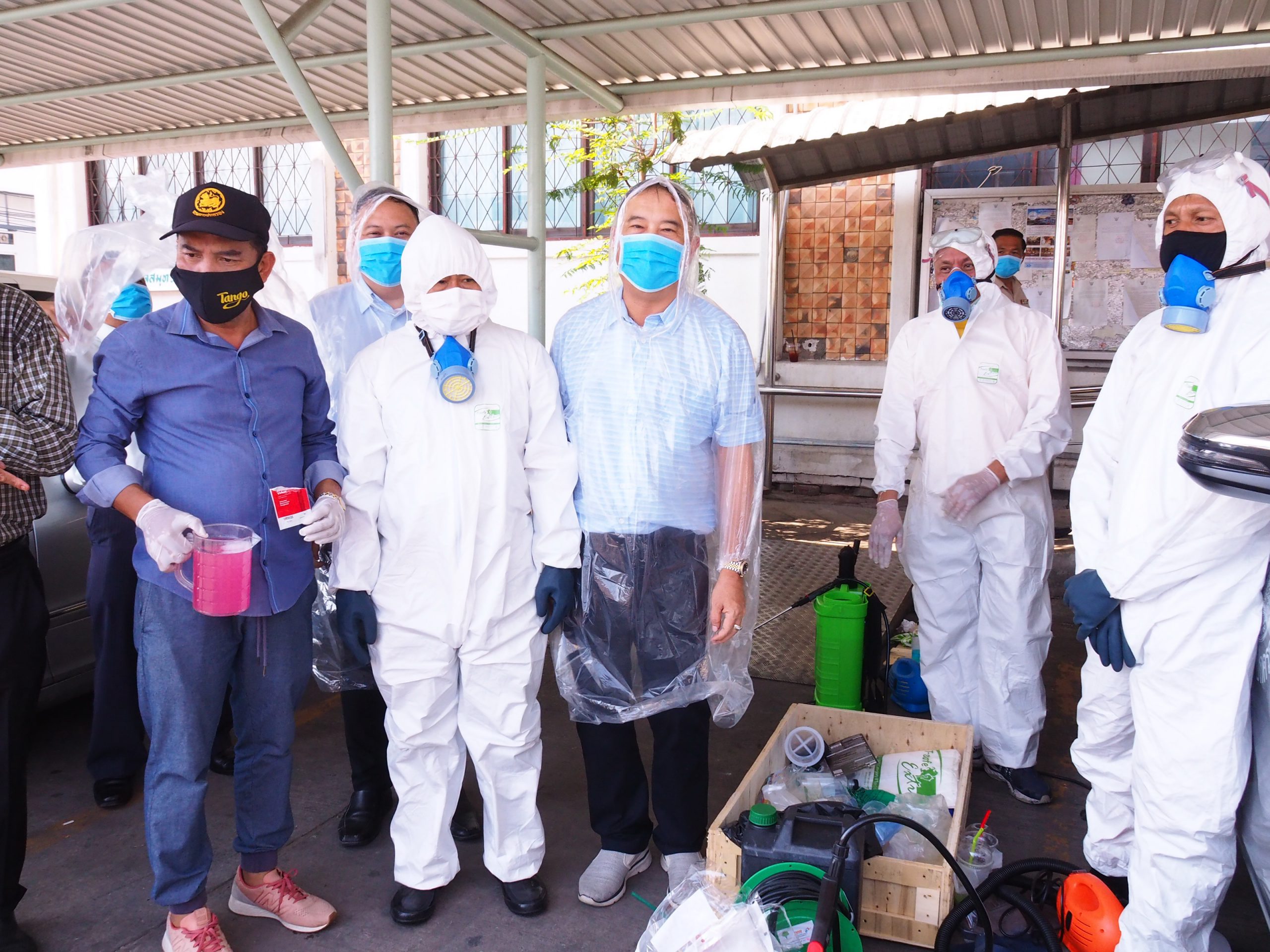 สมุทรปราการ อ.เมืองสมุทรปราการจัดจนท.ฉีดพ่นยาฆ่าเชื้อโควิด-19