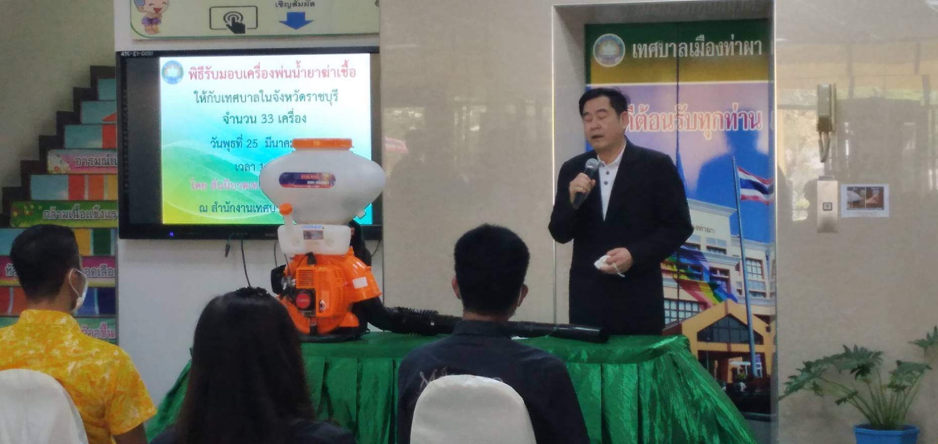 ชมรมสันนิบาตเทศบาลจังหวัดราชบุรี จัดซื้อเครื่องพ่นยาฆ่าเชื้อ ไวรัส COVID-19 มอบให้เทศบาลตำบล ที่เป็น สมาชิกของสันติบาติเทศบาล จังหวัดราชบุรีทั้งหมด แห่งละ 2เครื่อง