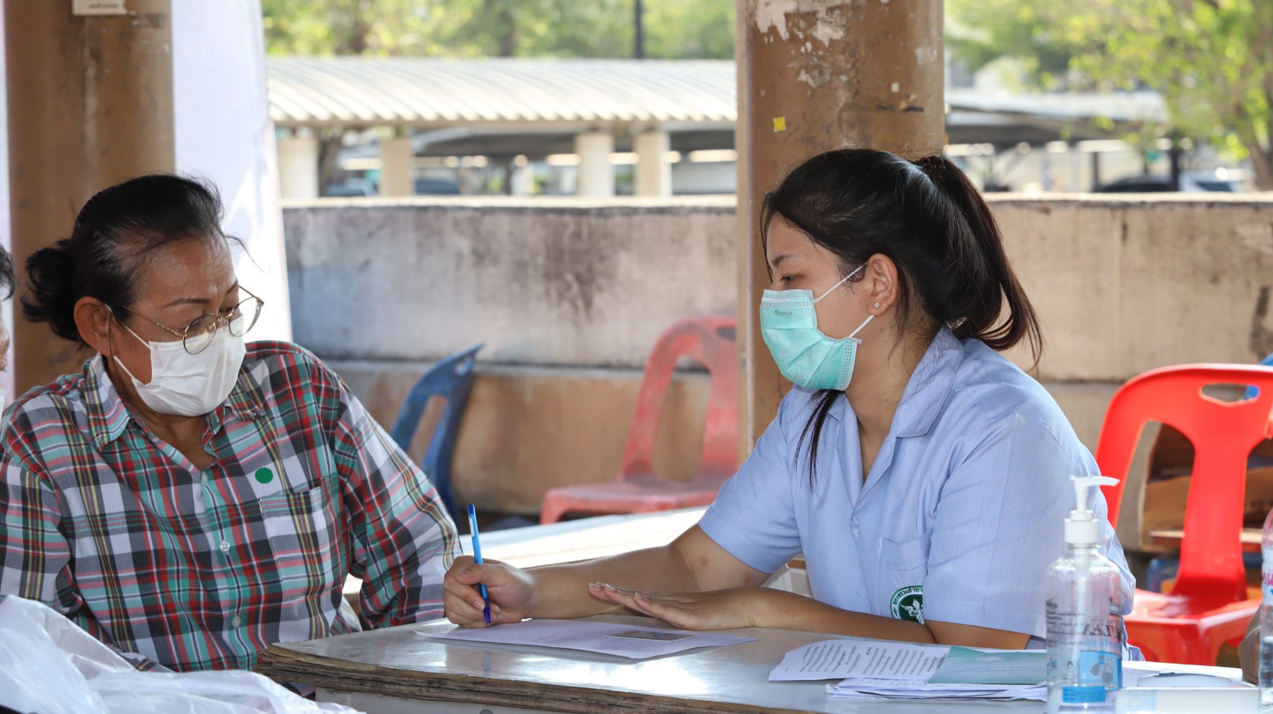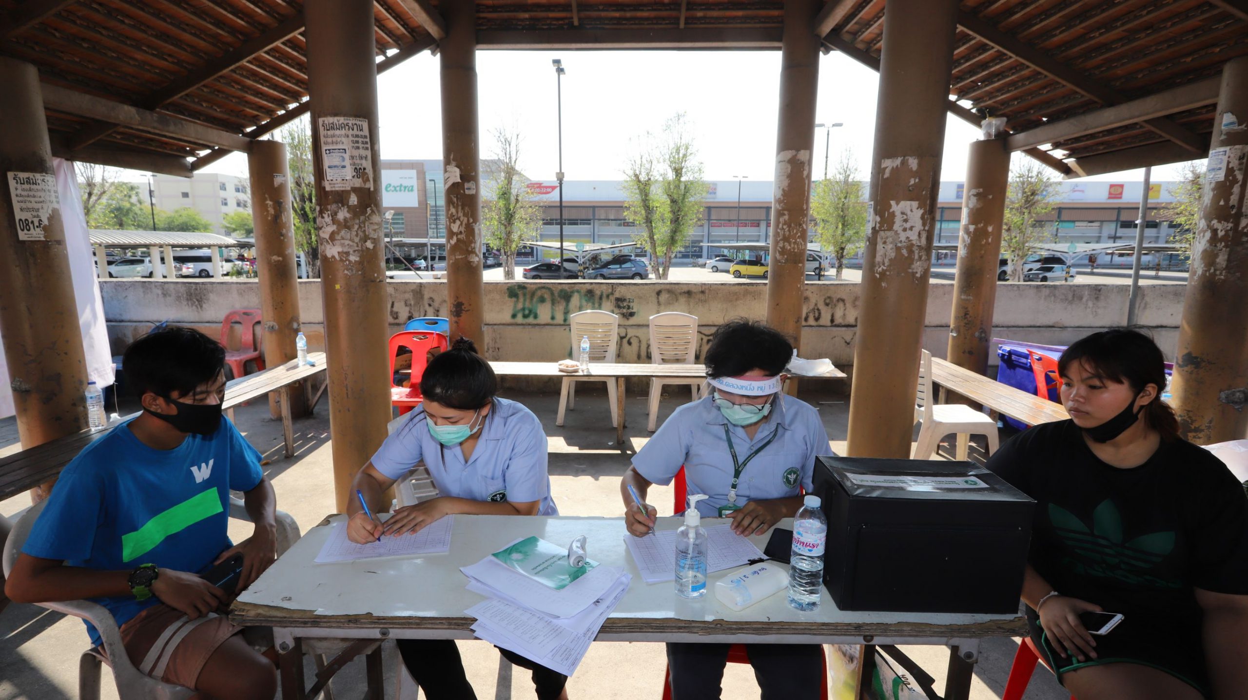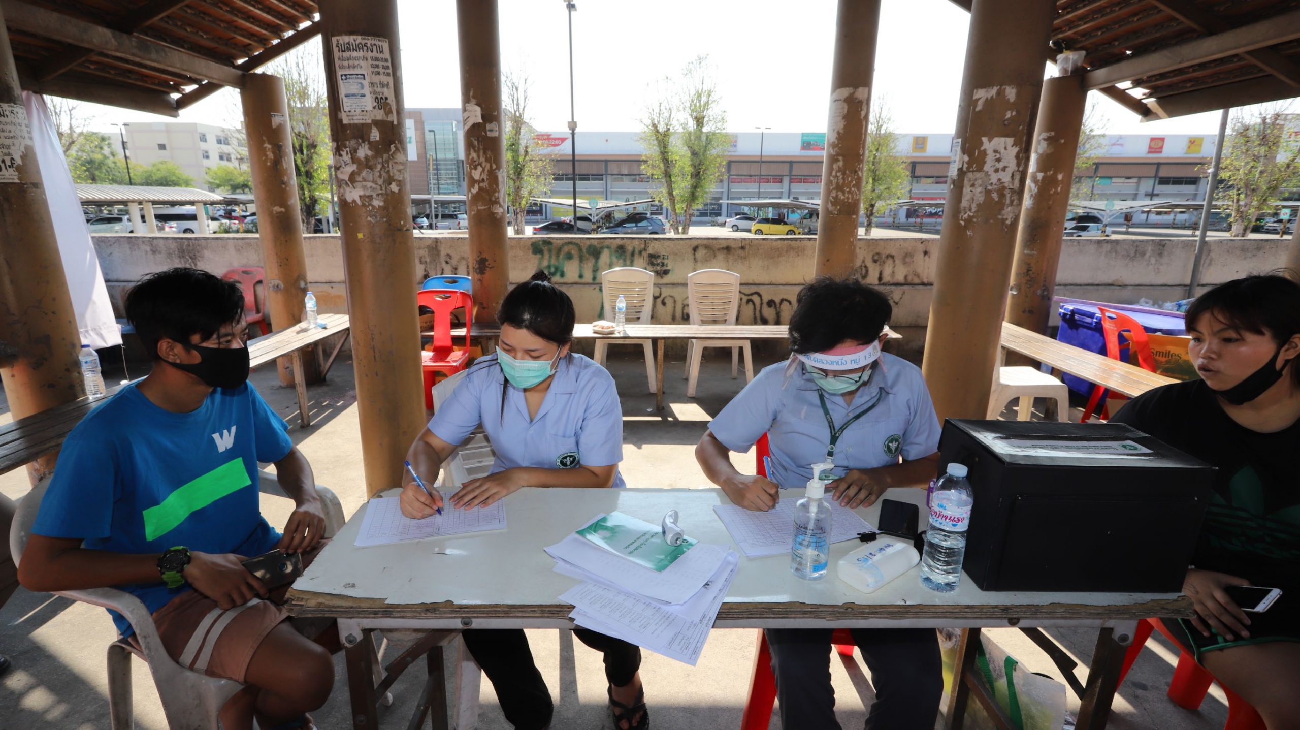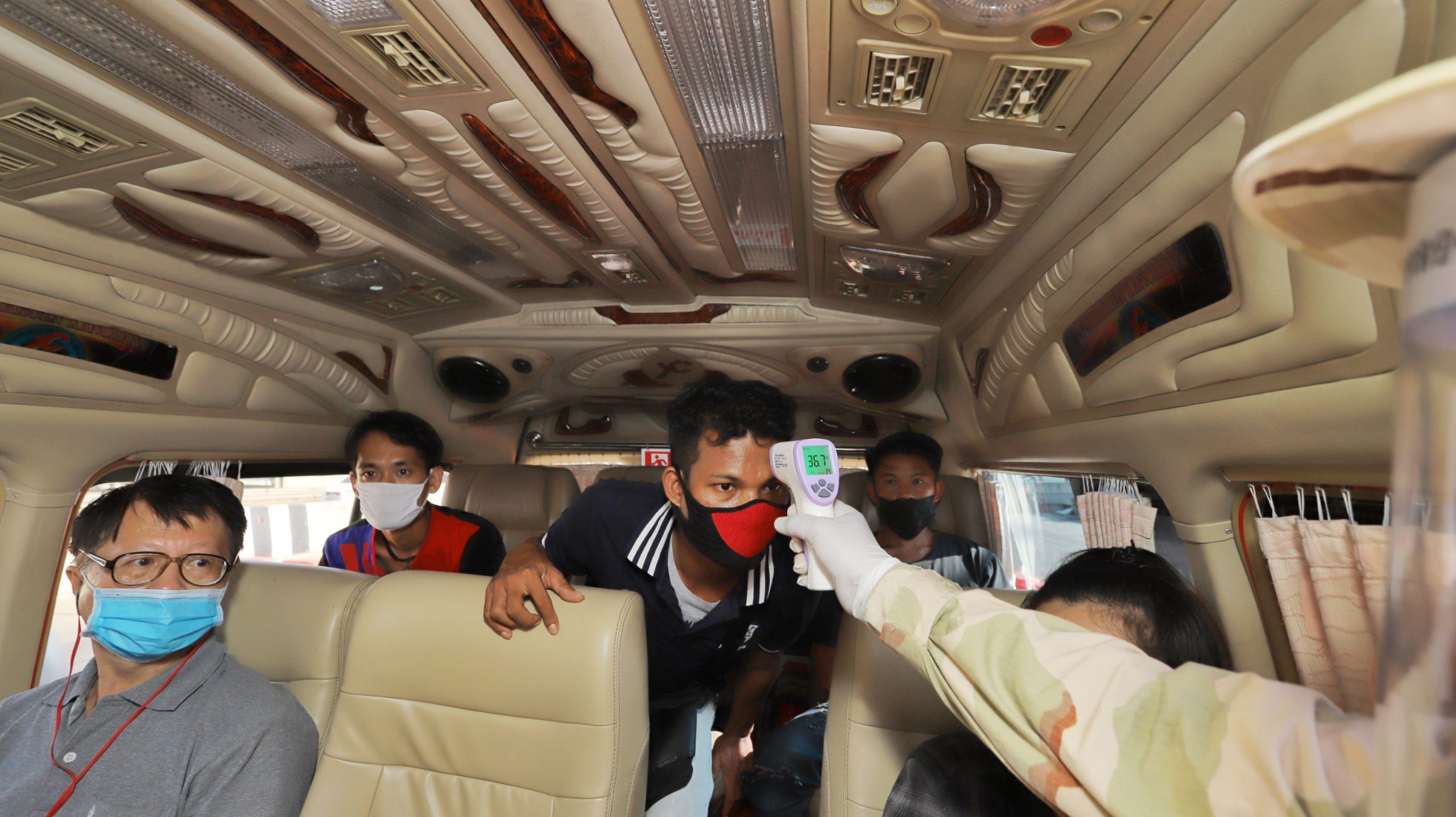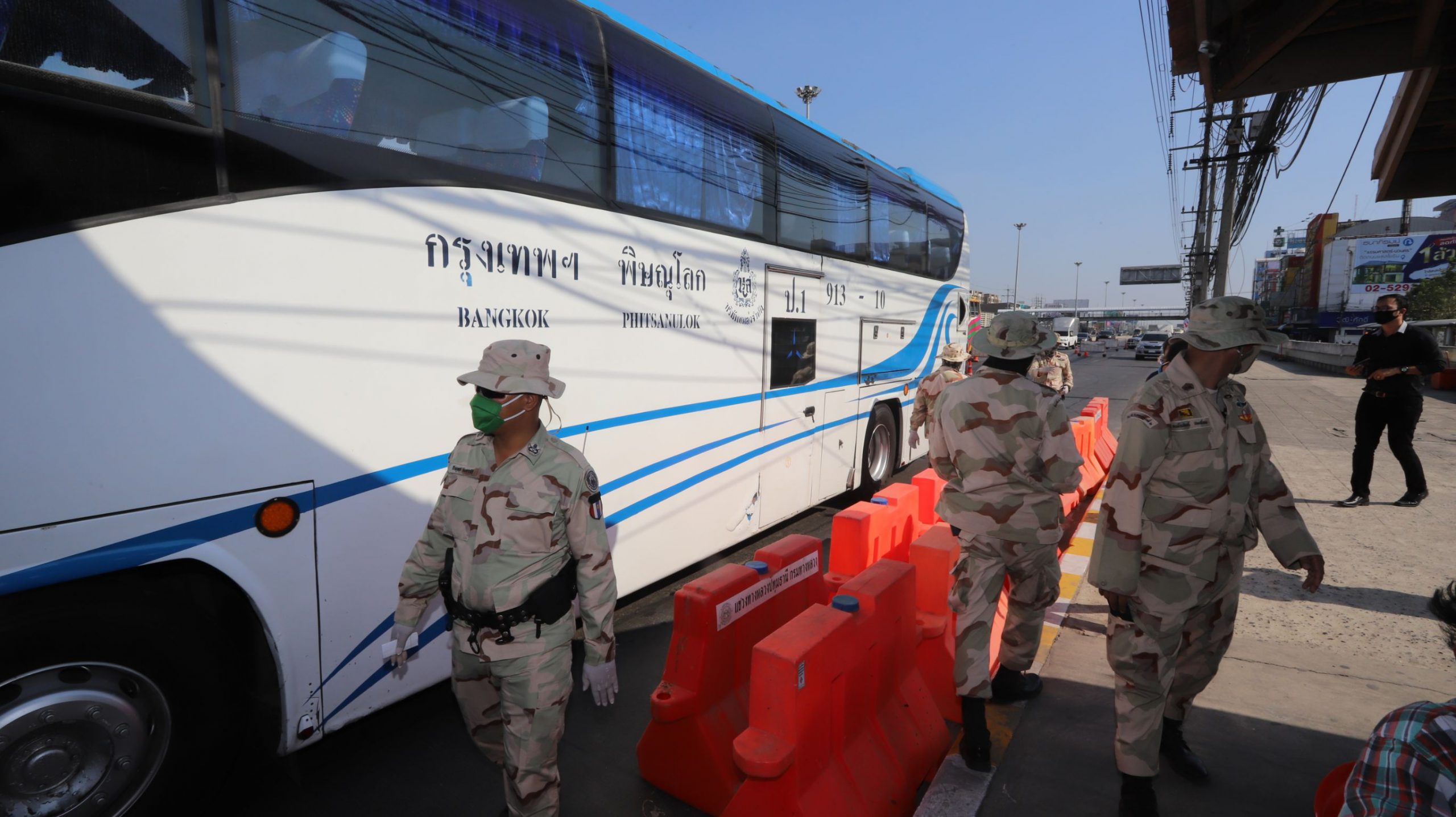 และที่จุดสกัดบริเวณถนนพหลโยธิน ขาออก กม.46+400 หน้าห้างเทสโก้โลตัส ต.คลองหนึ่ง อ.คลองหลวง จ.ปทุมธานี เมื่อรถมาถึงจุดตรวจ เจ้าหน้าที่ฯก็จะทำการซักประวัติการเดินทาง ตรวจวัดไข้ และให้คำให้แนะนำผู้โดยสารที่นั่งในรถ โดยควรเว้นระยะห่างจากกัน และหากตรวจพบว่ามีประชาชนเป็นไข้สูงเกิน 37.5 องศา ก็จะส่งให้ทีมเจ้าหน้าที่สาธารณสุขทำการคัดกรอง สอบถามประวัติว่าอยู่ในกลุ่มเสี่ยงหรือไม่ หากพบว่าอยู่ในกลุ่มเสี่ยงก็จะนำตัวส่งโรงพยาบาลทันที อย่างไรก็ตามจุดตรวจดังกล่าวจะผลัดเปลี่ยนหมุนเวียนกันมาประจำตลอด 24 ชั่วโมง