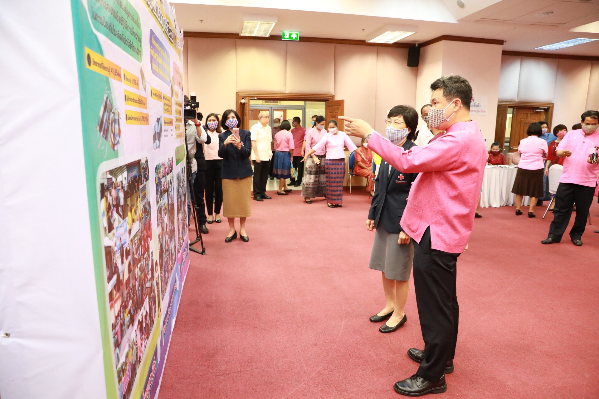 คุณจันทร์ประภา วิชิตชลชัย รองผู้อำนวยการสำนักงานจัดหารายได้ สภากาชาดไทย รักษาการในตำแหน่ง ผู้อำนวยการสำนักงานจัดหารายได้ สภากาชาดไทย กล่าวว่า “ขอขอบคุณท่านอธิบดีกรมการพัฒนาชุมชน ได้ตอบรับที่สภากาชาดไทยได้แจ้งความประสงค์มาในทันทีที่ทราบว่าเรากำลังขาดแคลน ขอขอบคุณไปยังสภาสตรีแห่งชาติในพระบรมราชินูปถัมภ์ ชมรมแม่บ้านพัฒนาชุมชน และเครือข่าย OTOP เครือข่ายกองทุนพัฒนาบทบาทสตรี ที่ได้ร่วมแรง ร่วมใจกัน ตัวเลขของหน้ากากอนามัยที่ท่านอธิบดีได้แจ้งมา ทำให้พวกเราเกิดกำลังใจที่จะทำหน้าที่ในการจัดหาโลหิตเพื่อนำไปให้ผู้ป่วยที่มีความจำเป็น วันนี้สภากาชาดไทยได้มีโอกาสมารับมอบหน้ากากอนามัยจากท่านอธิบดี สภาสตรีแห่งชาติในพระบรมราชินูปถัมภ์ คณะทำงาน และทุกท่านที่อยู่ในที่นี้ ในนามของสภากาชาดไทย อยากให้ทุกท่านมั่นใจว่า หน้ากากอนามัยชนิดผ้าที่ทุกท่านได้ร่วมแรงร่วมใจกัน เราจะนำไปใช้ให้เกิดประโยชน์สูงสุดให้กับงานของสภากาชาดไทย”