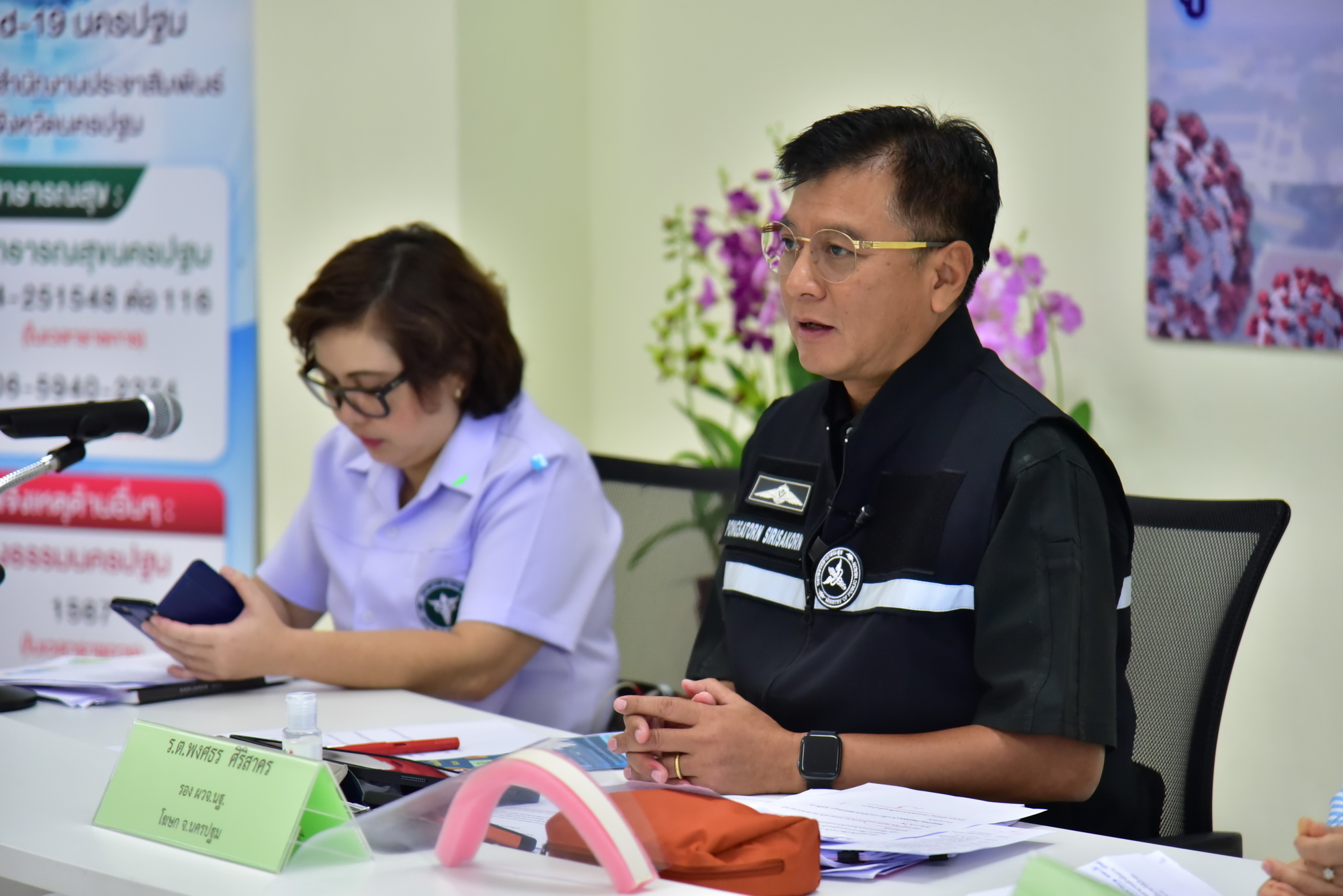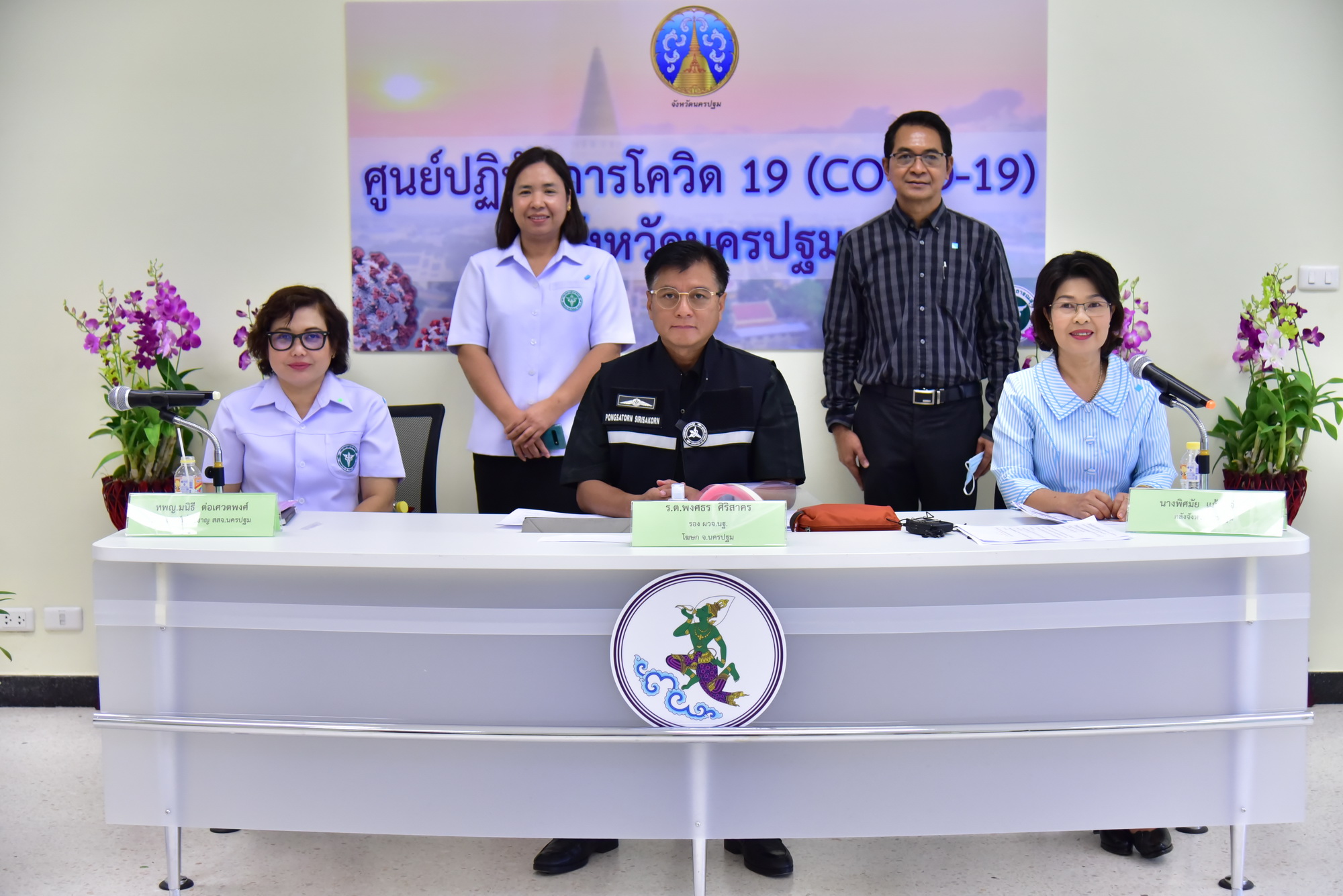 วันที่ 27 มีนาคม 2563 ที่สำนักงานประชาสัมพันธ์จังหวัดนครปฐม อำเภอเมือง จังหวัดนครปฐม ร้อยตรีพงศธร ศิริสาคร รองผู้ว่าราชการจังหวัดนครปฐม พร้อมด้วยแพทย์หญิงมนิธี ต่อเศวตพงศ์ ทันตแพทย์เชี่ยวชาญ สำนักงานสาธารณสุขจังหวัดนครปฐม นางพิศมัย แก้วแจ่มใส คลังจังหวัดนครปฐม และแพทย์หญิงรุจิรา เข็มเพ็ชร รองผู้อำนวยการฝ่ายการแพทย์โรงพยาบาลนครปฐม ร่วมชี้แจงถึงสถานการณ์ COVID-19 จ.นครปฐม ตลอดจนแนวทางเยียวยากับผู้ที่ได้รับผลกระทบ