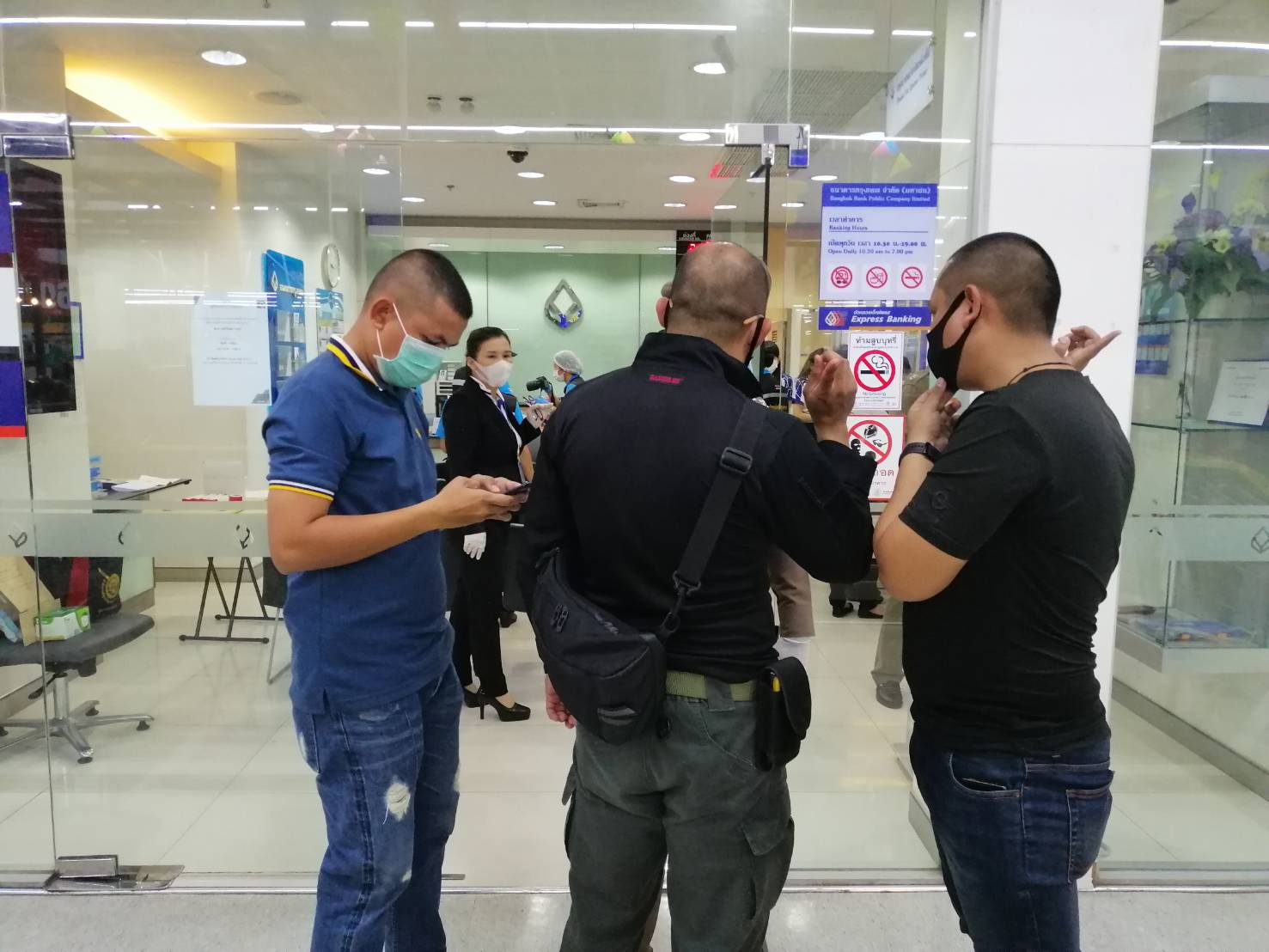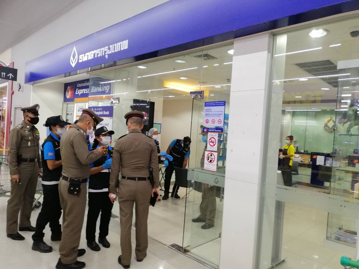 โดยที่เกิดเหตุเป็นจุดบริการสำหรับลูกค้าที่ติดต่อทำธุรกรรมการเงินกับทางธนาคารกรุงเทพสาขาเทสโก้โลตัส พบพนักงานของธนาคารชายหญิงราว 4-5 คน อยู่ในอาการตกใจ ตำรวจได้มาตรวจสอบที่เกิดเหตุห้ามผู้ไม่เกี่ยวข้องเข้าไปภายใน เจ้าหน้าที่กองพิสูจน์หลักฐานเก็บลายนิ้วมือแฝงของคนร้าย