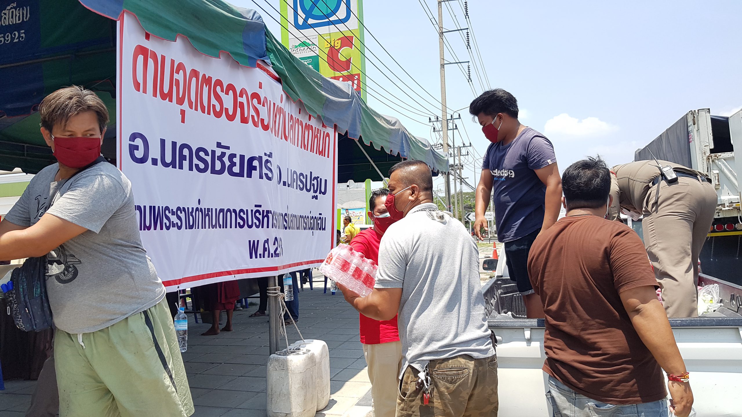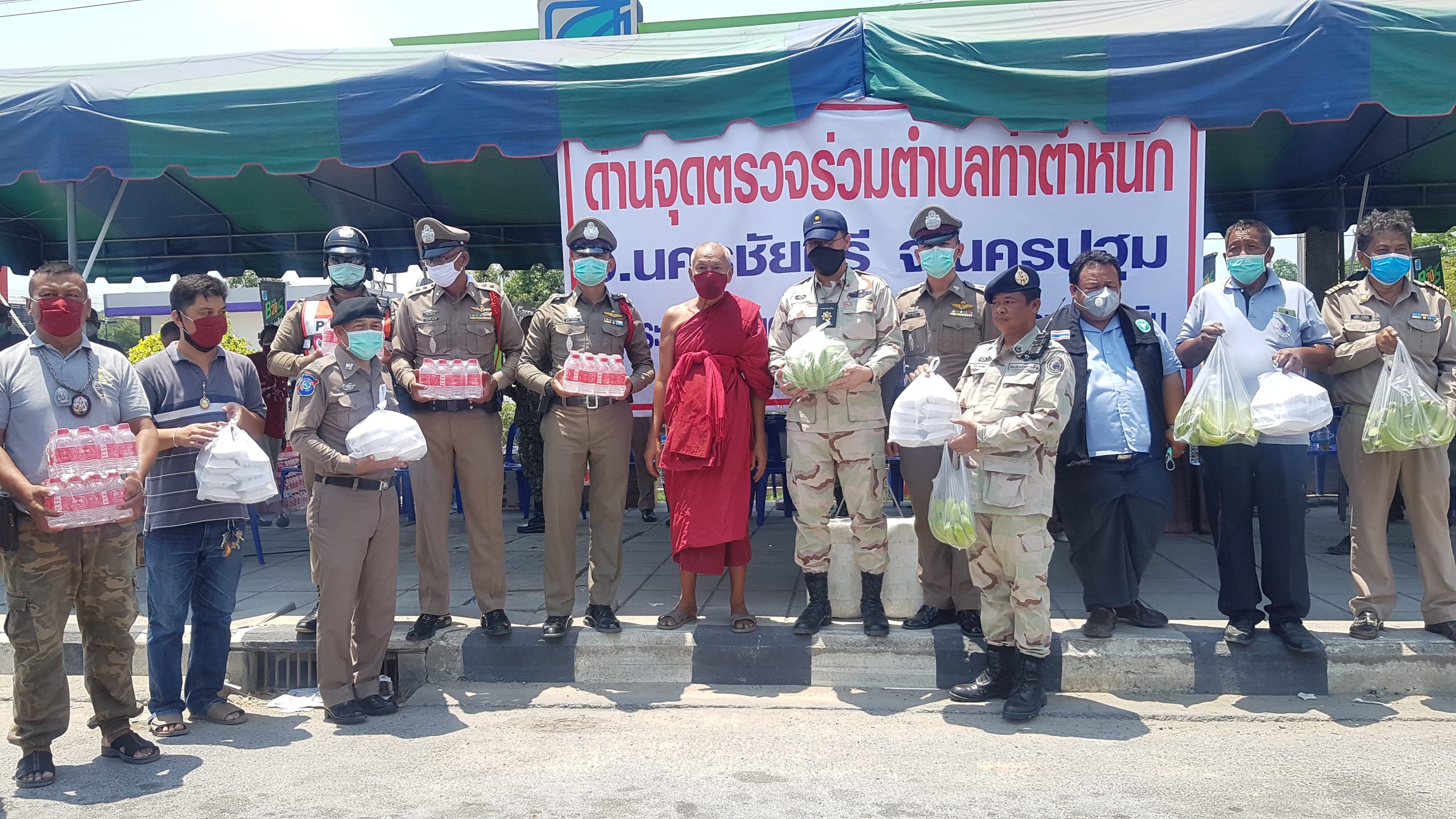 นครปฐม เกจิดังนำข้าว น้ำดื่ม หน้ากากอนามัยมอบให้ด่านตรวจ สกัดเชื้อไวรัส โควิด 19