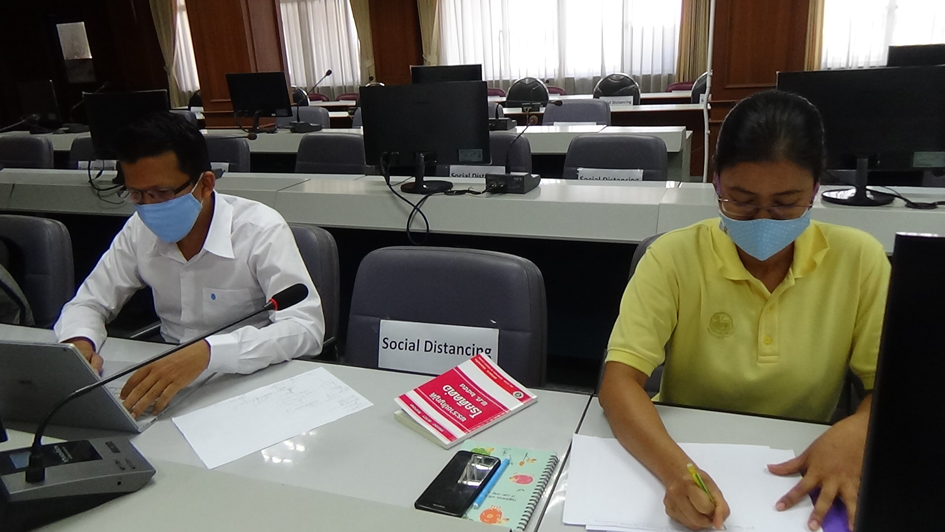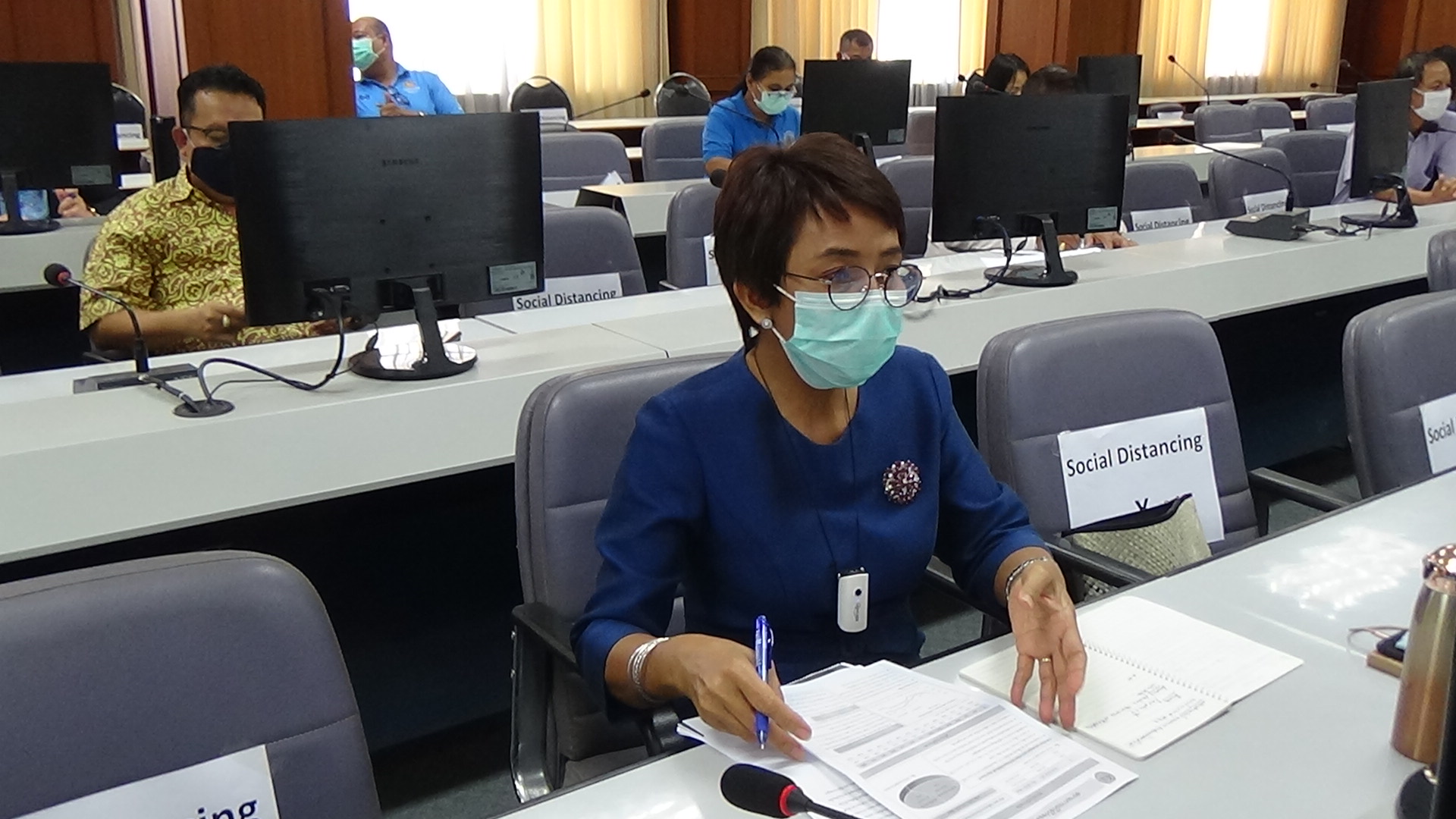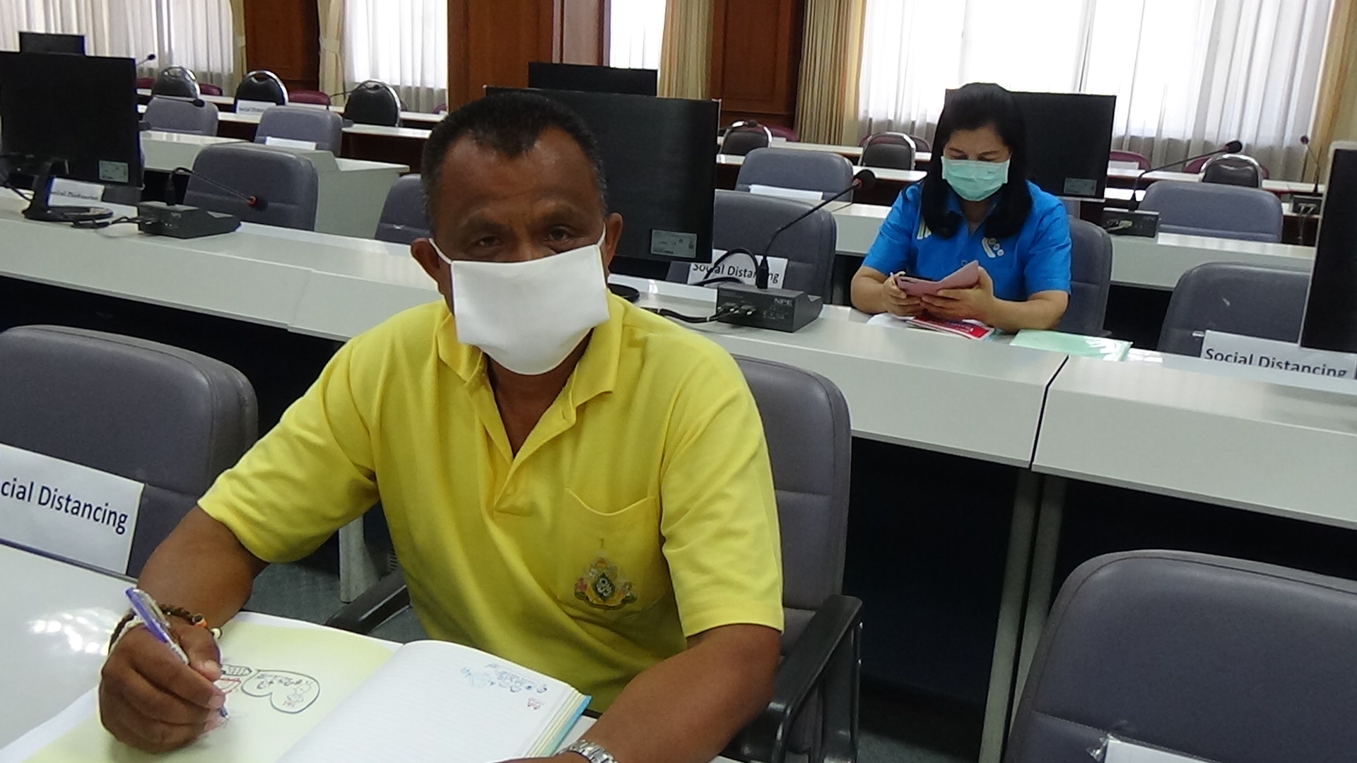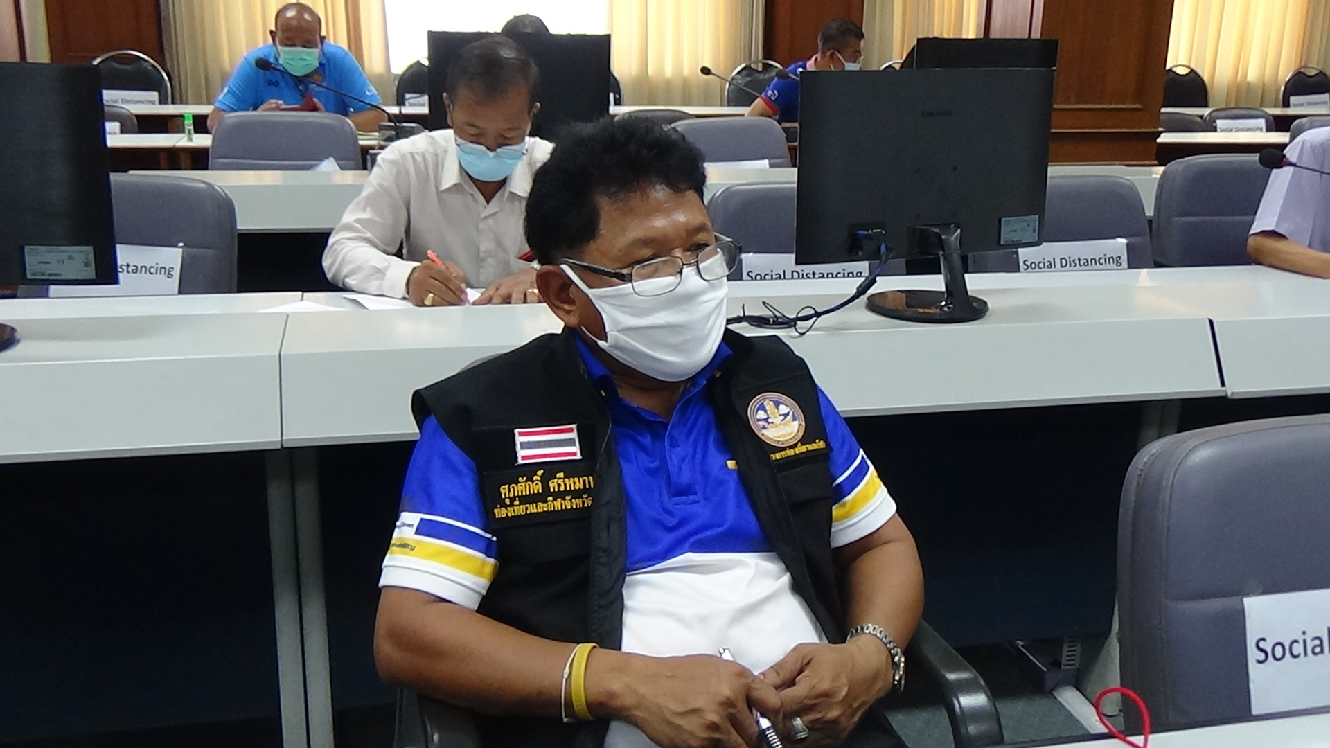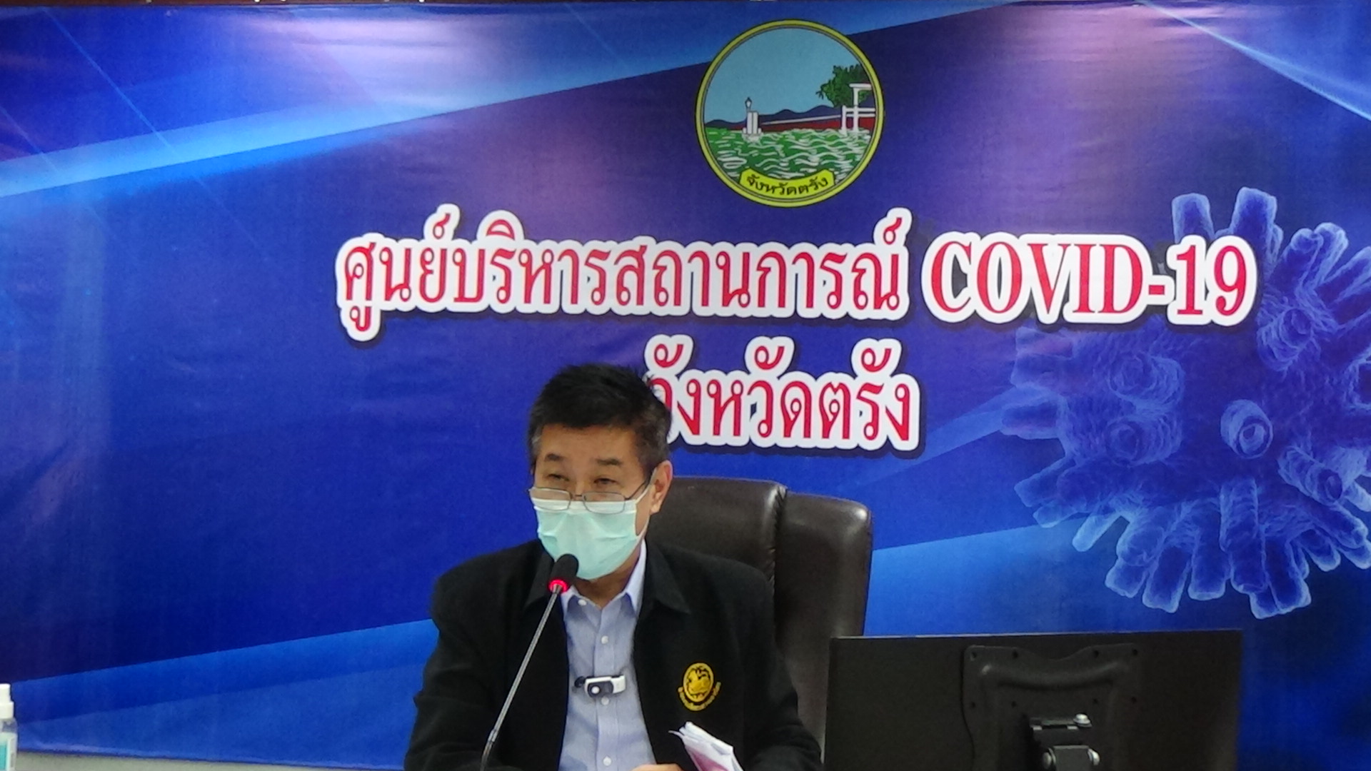 ที่ห้องประชุมศาลากลาง ชั้น 5 จังหวัดตรัง ซึ่งตั้งเป็นศูนย์บริหารสถานการณ์โควิด-19 จ.ตรัง