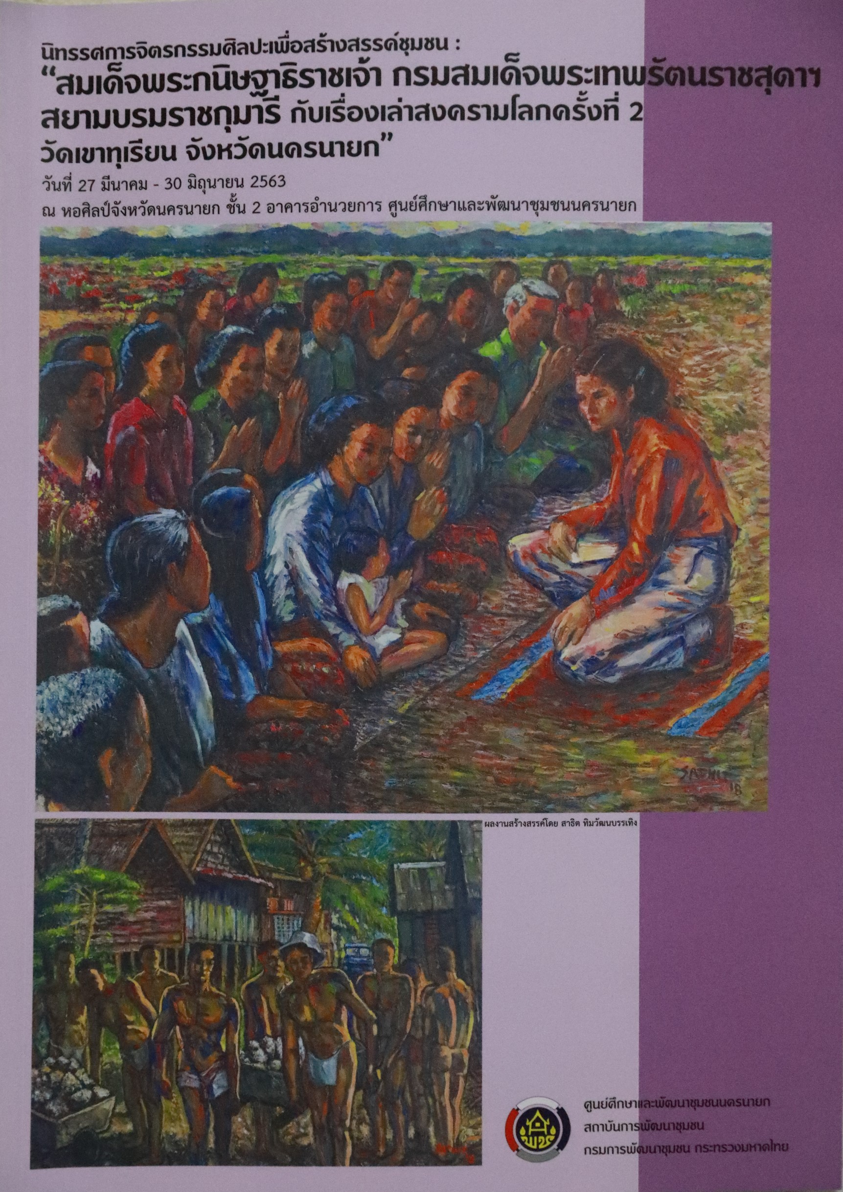 อธิบดี พช.เชิญชมนิทรรศการจิตรกรรมศิลปะสร้างสรรค์ชุมชน “สมเด็จพระกนิษฐาธิราชเจ้า กรมสมเด็จพระเทพรัตนราชสุดาฯ สยามบรมราชกุมารี กับเรื่องเล่าสงครามโลกครั้งที่ 2 วัดเขาทุเรียน” ณ หอศิลป์จังหวัดนครนายก ปลูกฝังเยาวชนศึกษาประวัติศาสตร์ทรงคุณของชาติไทย