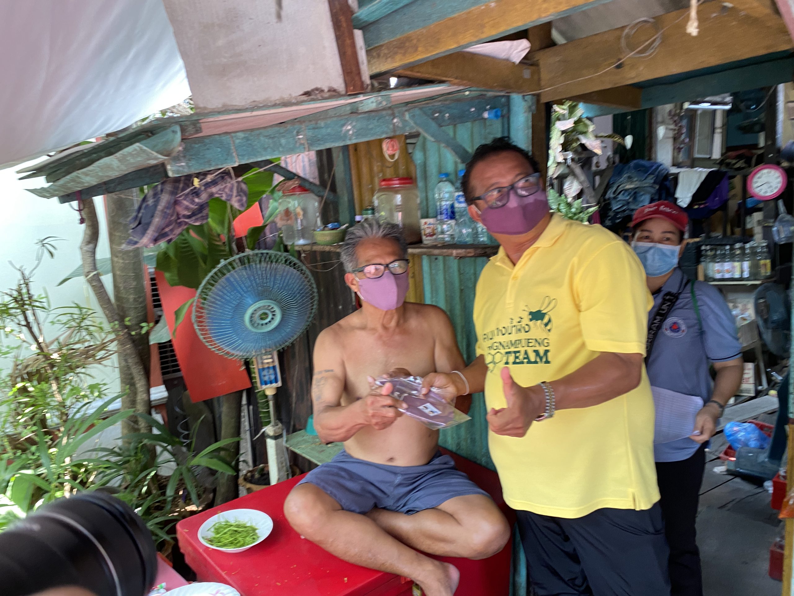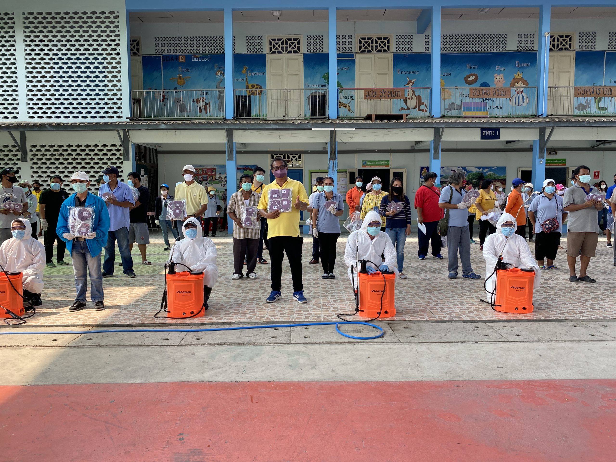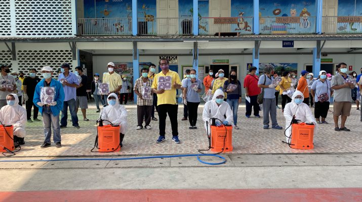 สมุทรปราการ อบต.บางน้ำผึ้งลงพื้นที่แจกหน้ากากอนามัยชาวบ้านพร้อมฉีดพ่นเชื้อทำความสะอาด