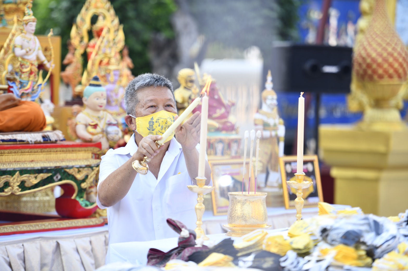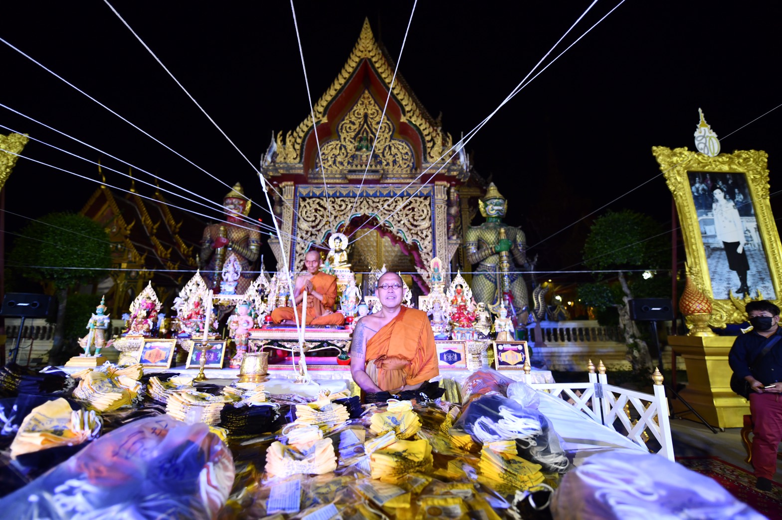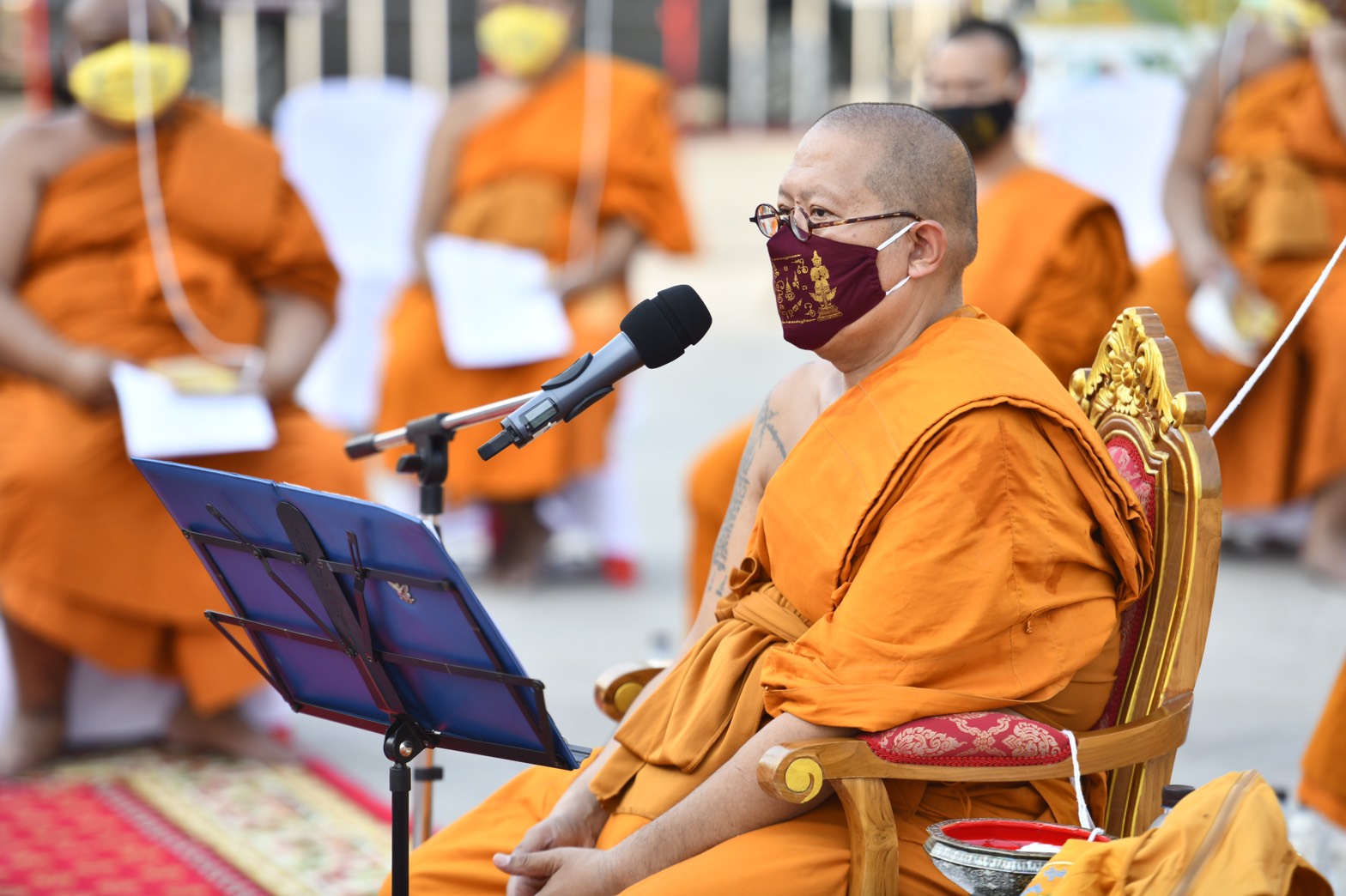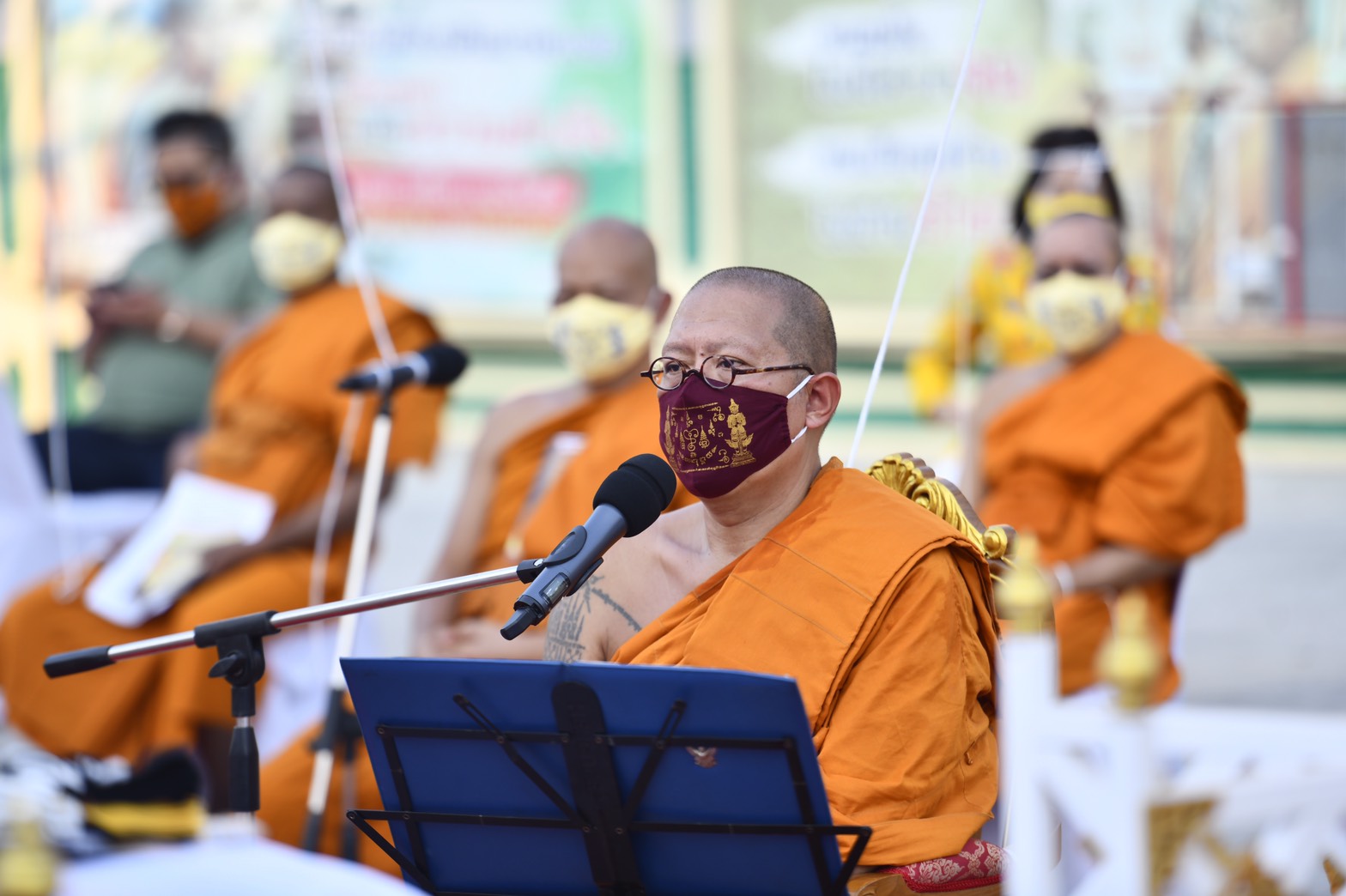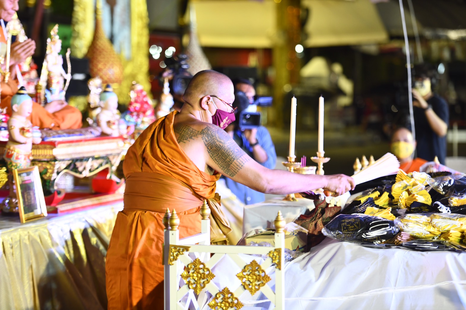 นครปฐม วัดไผ่ล้อมจัดพิธีสวดเจริญพระพุทธมนต์ เสริมมงคลหน้ากากผ้ามัสลิน “ยันต์นะปัดตลอด”