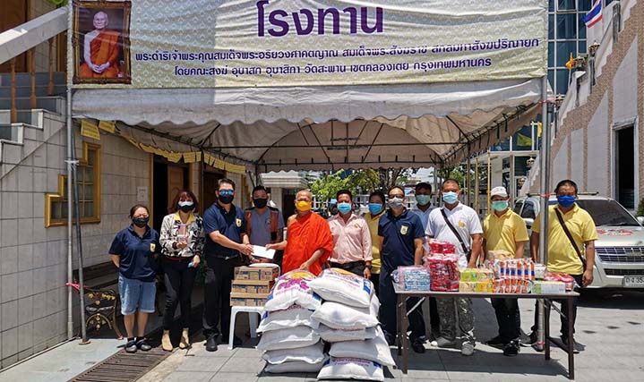 วัดสะพาน เขตคลองเตยร่วมกับประธาน อปพร.ทีมงานอาสาสมัครกระต่ายคลองเตย จัดตั้งโรงทานแจกจ่ายข้าวสารอาหารแห้ง อาหารปรุงสำเร็จ ให้กับประชาชนผ่านวิกฤตการแพร่ระบาดเชื้อไวรัสโควิด-19ไปด้วยกัน