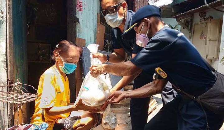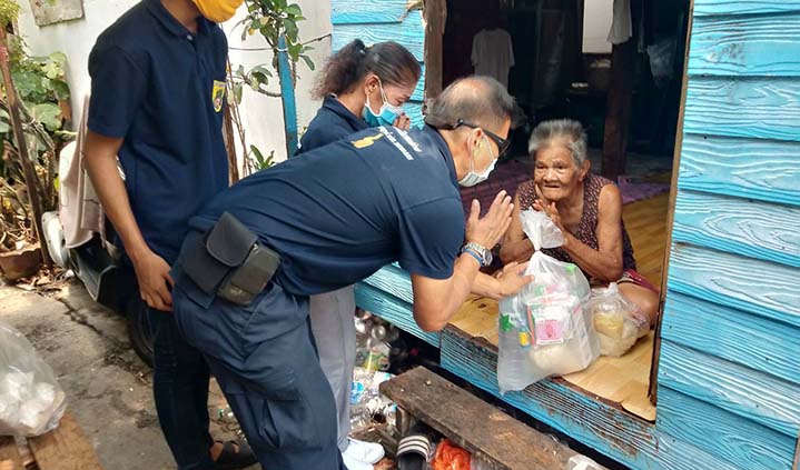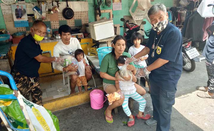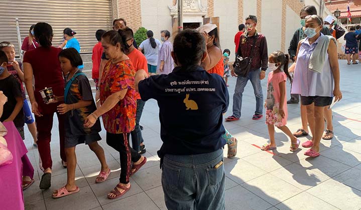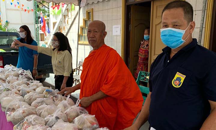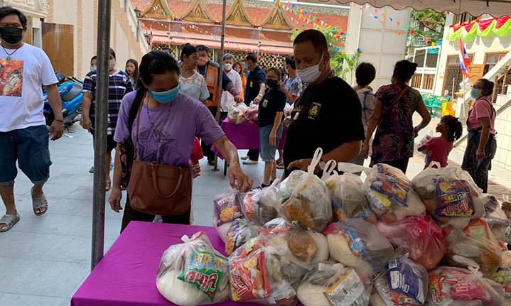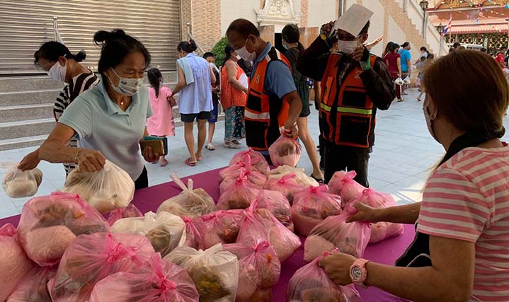 คนไทยไม่ทิ้งกันวัดสะพานเขตคลองเตยแจกจ่ายอาหารให้กับประชาชน