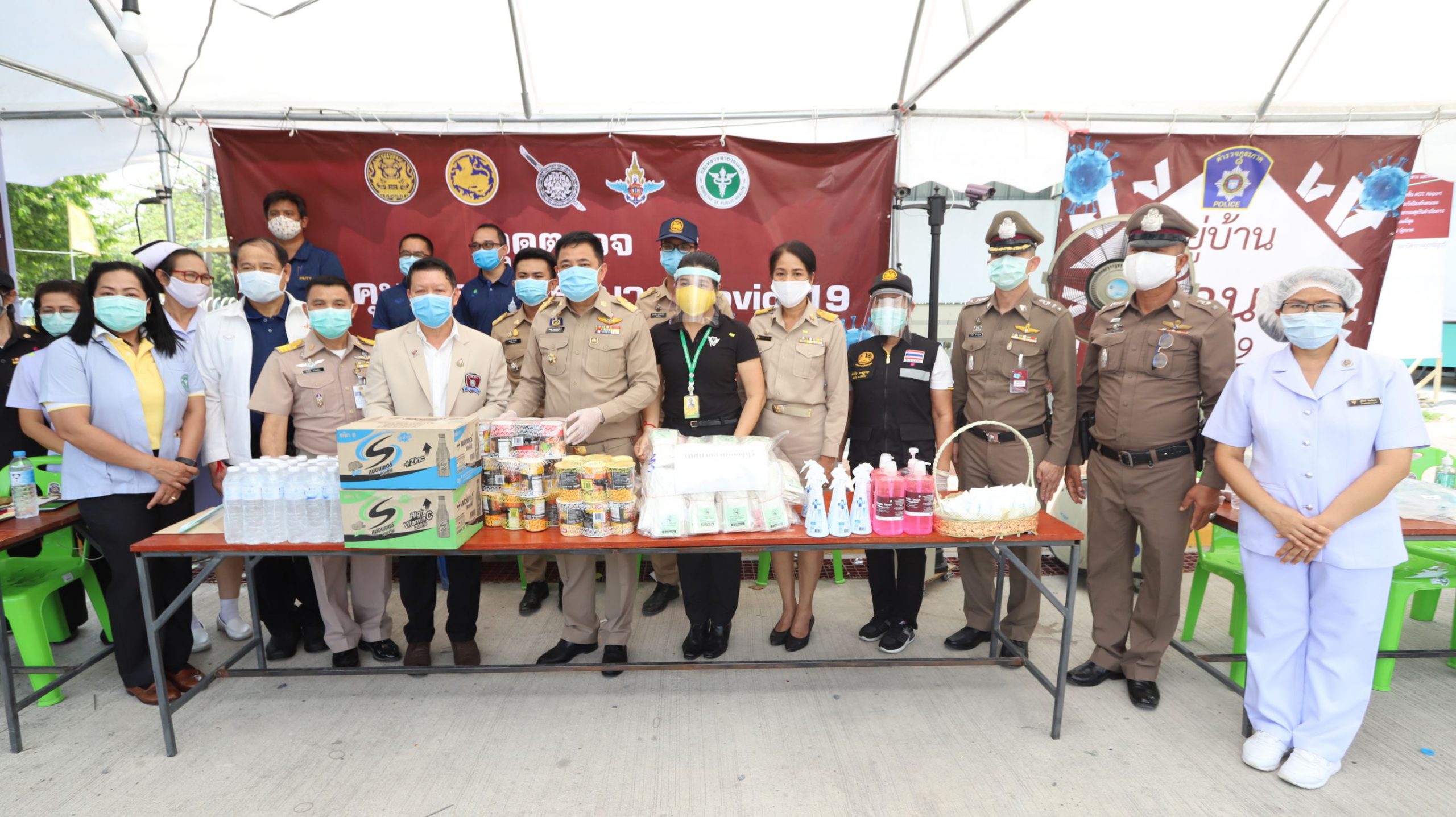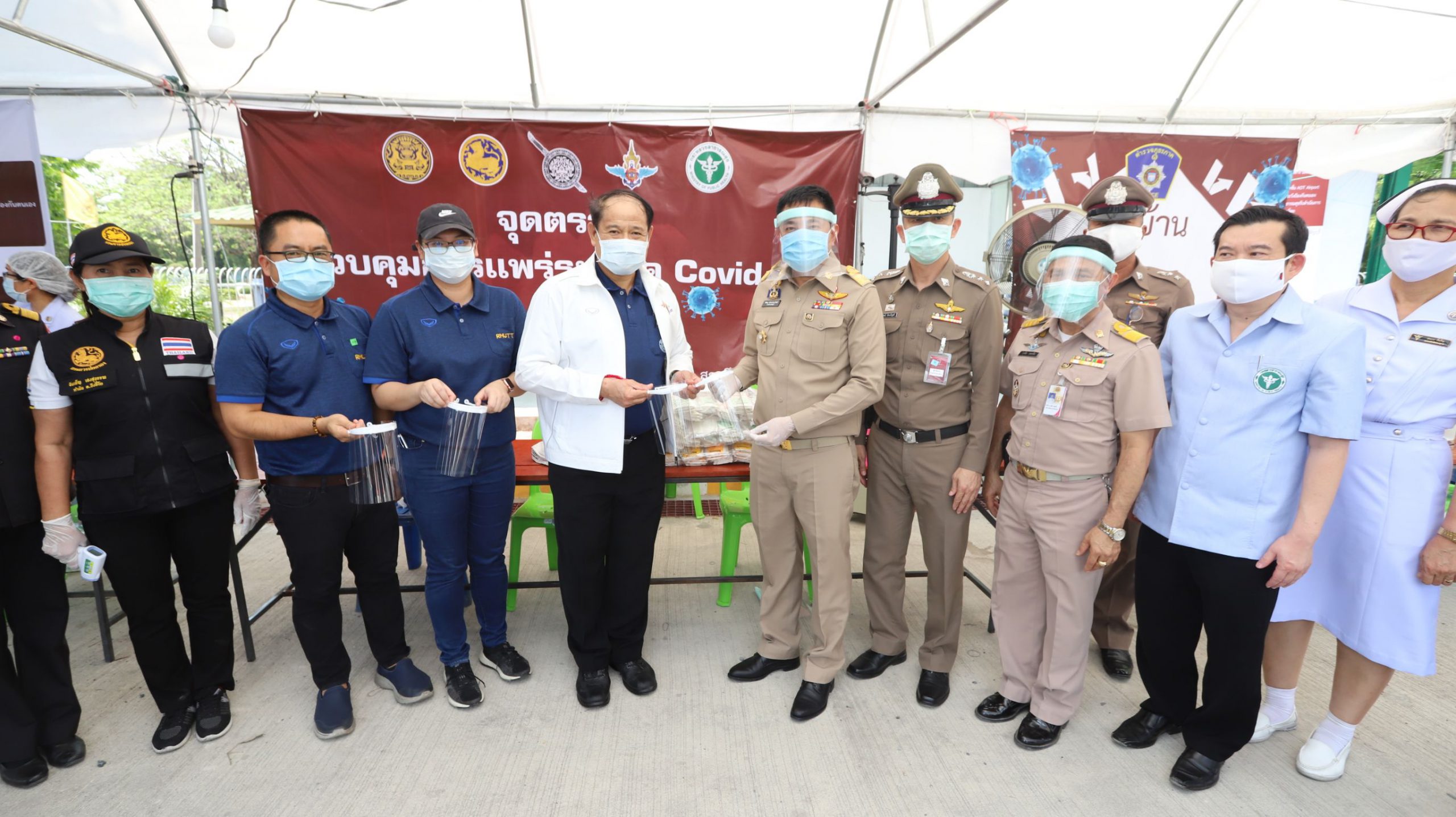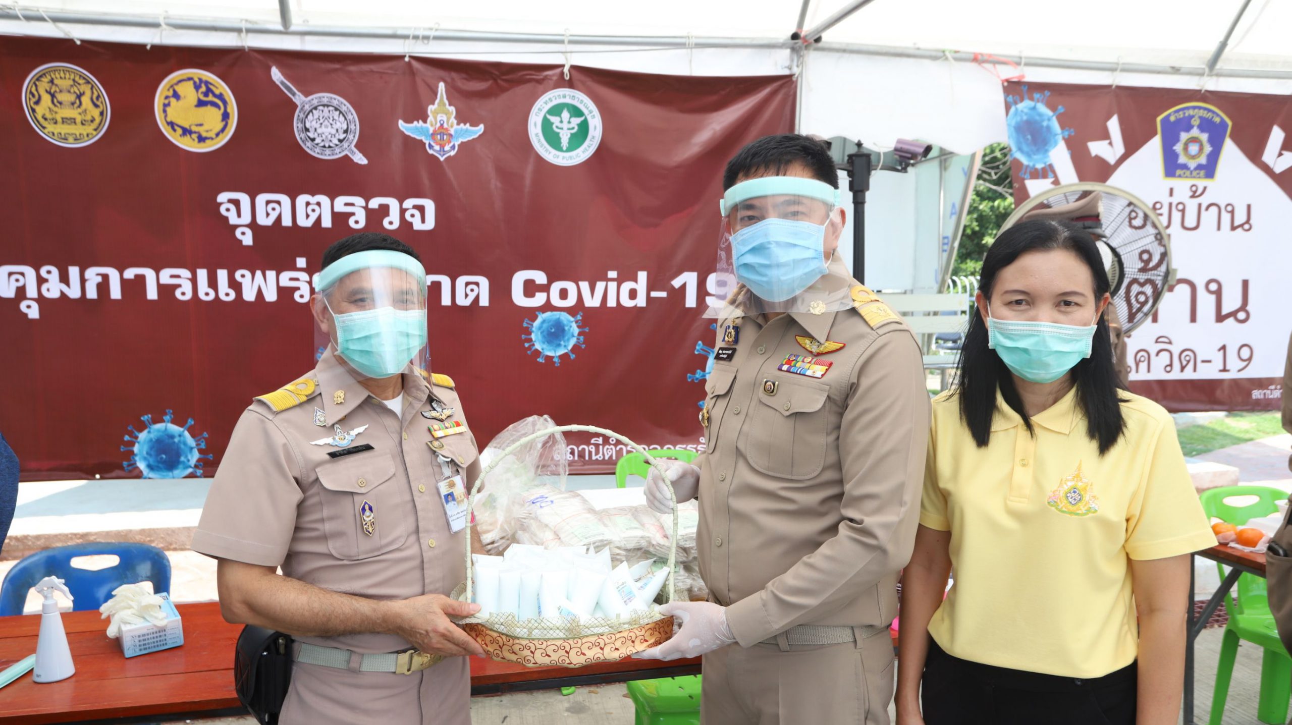 ทังนี้ นายอมรเทพ เพชรกำแพงแสน ผู้จัดการฝ่ายธุรกิจสัมพันธ์ ศูนย์การค้าฟิวเจอร์พาร์ครังสิต ผู้ช่วยศาสตราจารย์ ดร.สมหมาย ผิวสอาด อธิการบดีมทร.ธัญบุรี ว่าที่ ร.อ.อาศิส เชยกลิ่น ผู้อำนวยการศูนย์วิทยาศาสตร์เพื่อการศึกษารังสิต ได้มอบของให้เจ้าหน้าที่ประจำด่านคัดกรอง อาทิ น้ำดื่ม หน้ากากอนามัย เจลล้างมือ เครื่องดื่มเกลือแร่ บะหมี่สำเร็จรูป ไว้ห้เจ้าหน้าที่ได้รับประทานขณะตั้งสุดสกัด