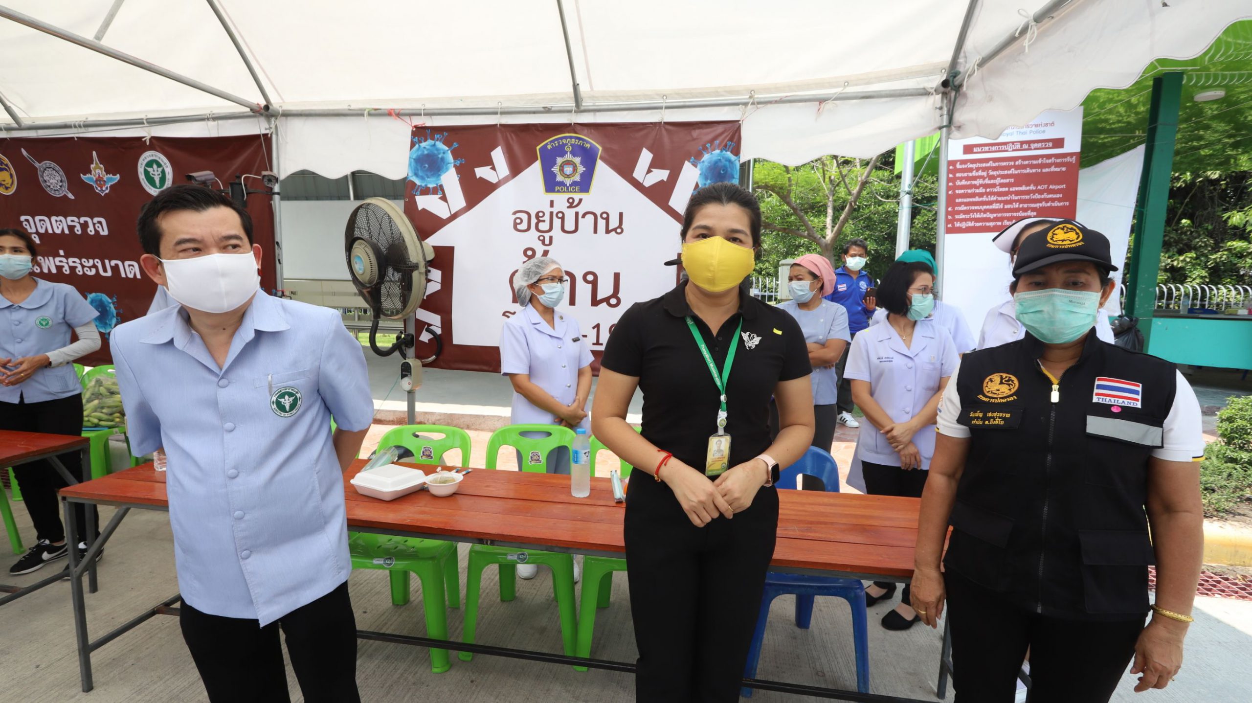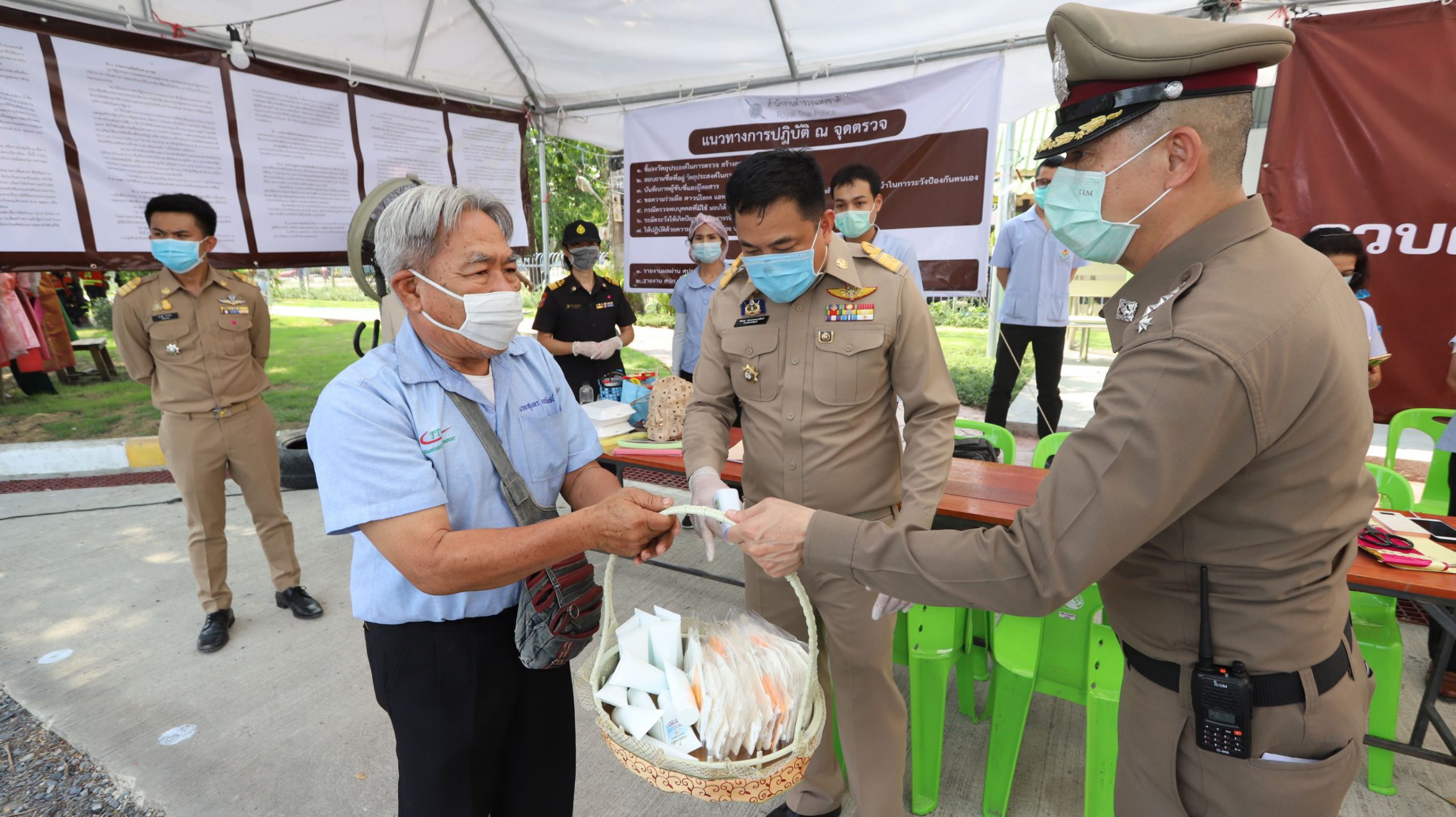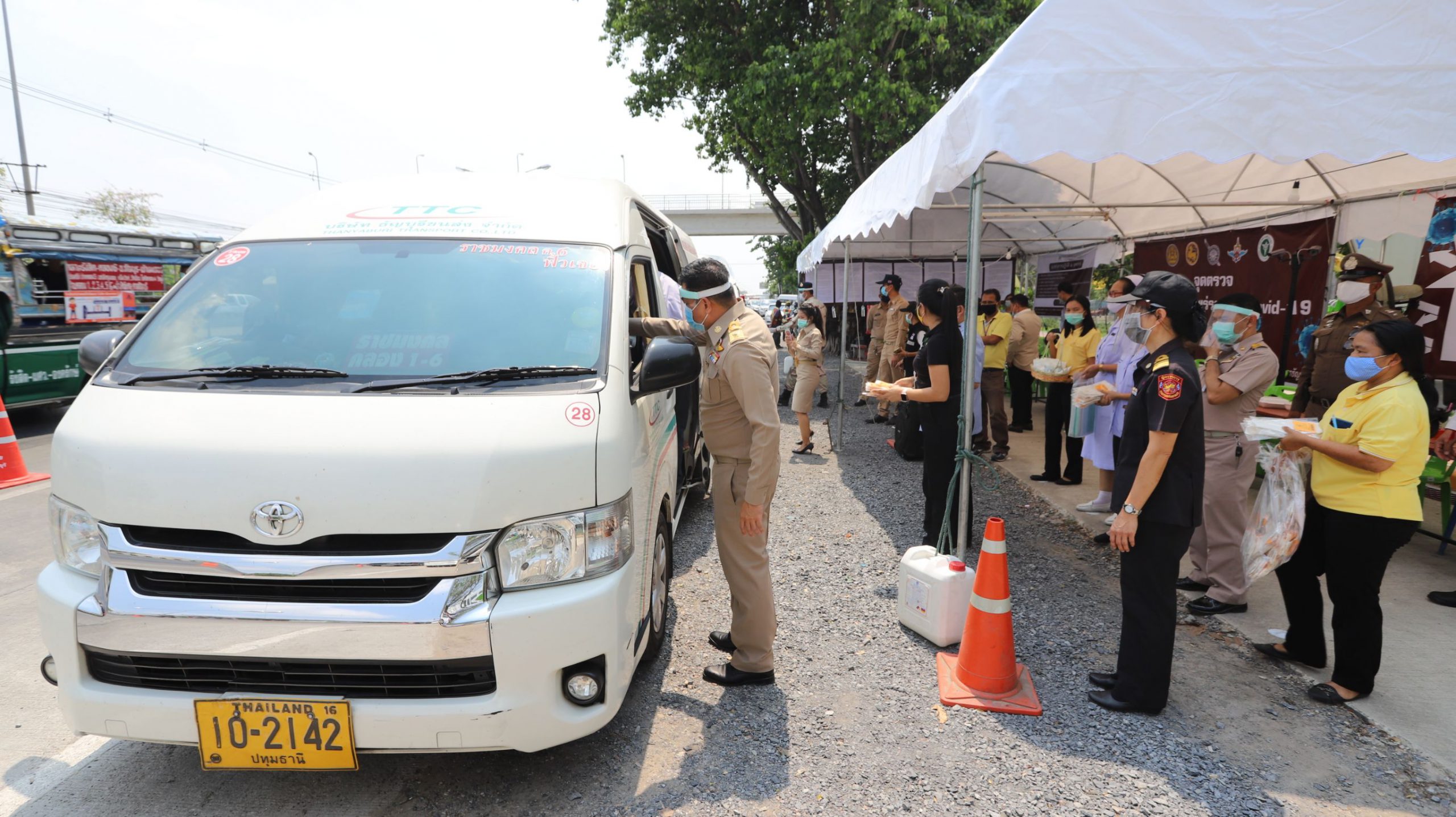 ทังนี้ นายอมรเทพ เพชรกำแพงแสน ผู้จัดการฝ่ายธุรกิจสัมพันธ์ ศูนย์การค้าฟิวเจอร์พาร์ครังสิต ผู้ช่วยศาสตราจารย์ ดร.สมหมาย ผิวสอาด อธิการบดีมทร.ธัญบุรี ว่าที่ ร.อ.อาศิส เชยกลิ่น ผู้อำนวยการศูนย์วิทยาศาสตร์เพื่อการศึกษารังสิต ได้มอบของให้เจ้าหน้าที่ประจำด่านคัดกรอง อาทิ น้ำดื่ม หน้ากากอนามัย เจลล้างมือ เครื่องดื่มเกลือแร่ บะหมี่สำเร็จรูป ไว้ห้เจ้าหน้าที่ได้รับประทานขณะตั้งสุดสกัด
