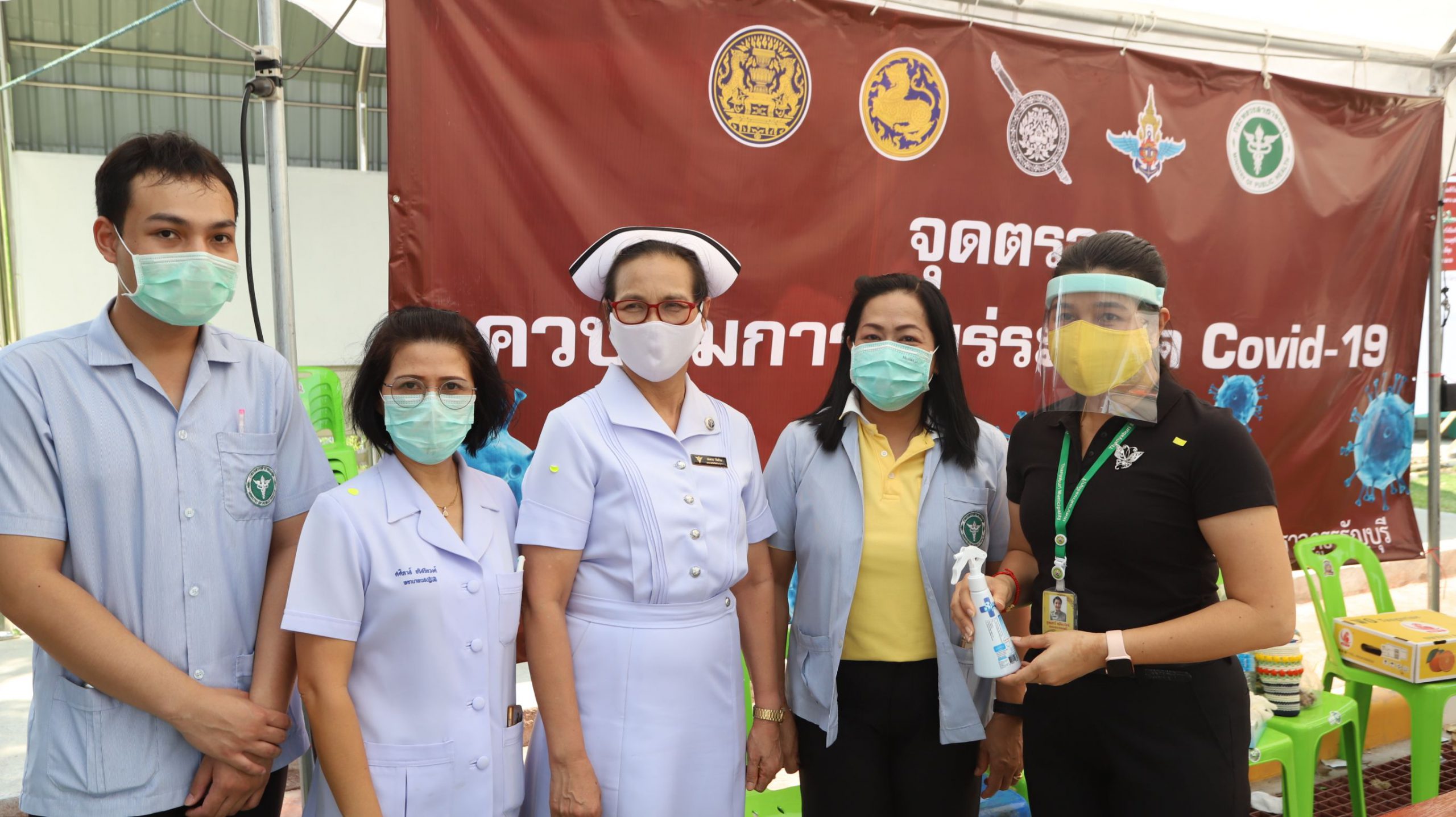 นอกจากนี้ นส.วรรณวิไล หลี่ ผู้บริหาร บริษัท วันลิงค์ เอเนอร์ยี่ (ประเทศไทย) จำกัด ยังมอบ Face Shield. หน้ากากป้องกันอันตรายส่วนบุคคลแบบเต็มใบหน้า จำนวน 30 อันให้เจ้าหน้าที่เพื่อใช้ป้องกันการติดเชื้อ (Covid-19)ในการตรวจคัดกรองประชาชน ที่สัญจรไปมา