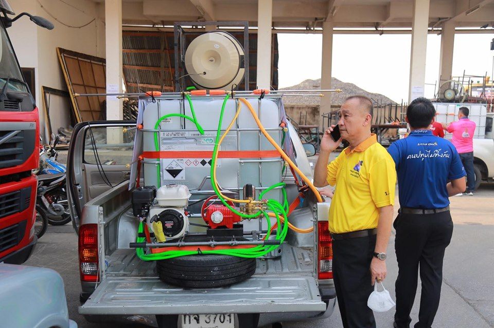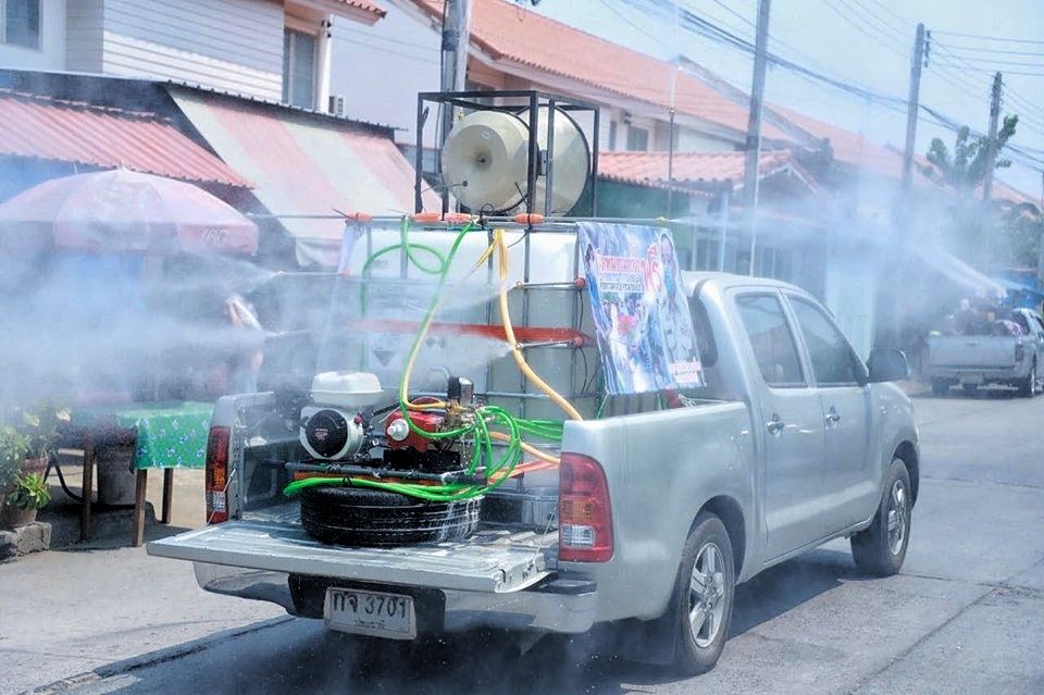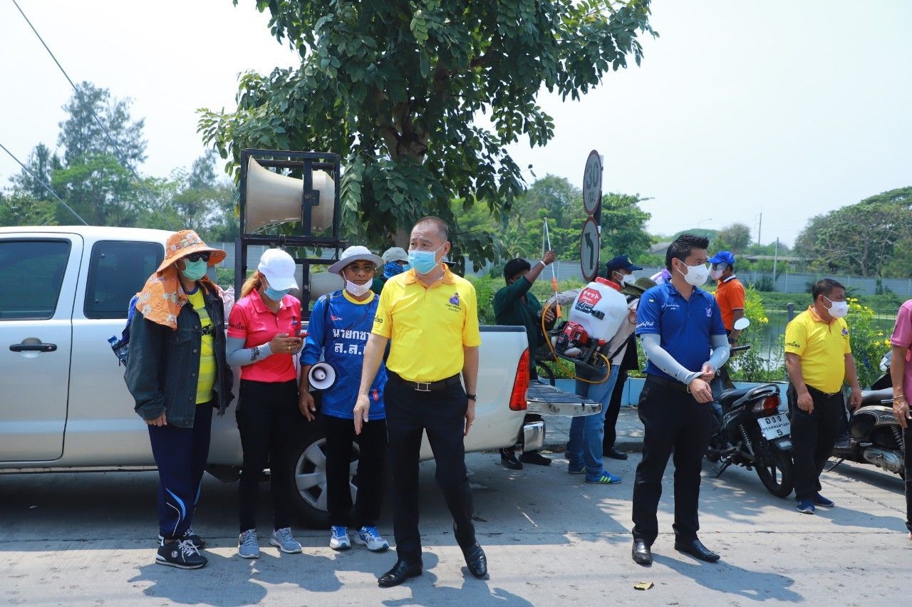 เทศบาลตำบลธัญบุรี นำเจ้าหน้าที่ฉีดพ่นยาฆ่าเชื้อป้องกันการแพร่ระบาดโควิด-19 สร้างความมั่นใจให้ประชาชน