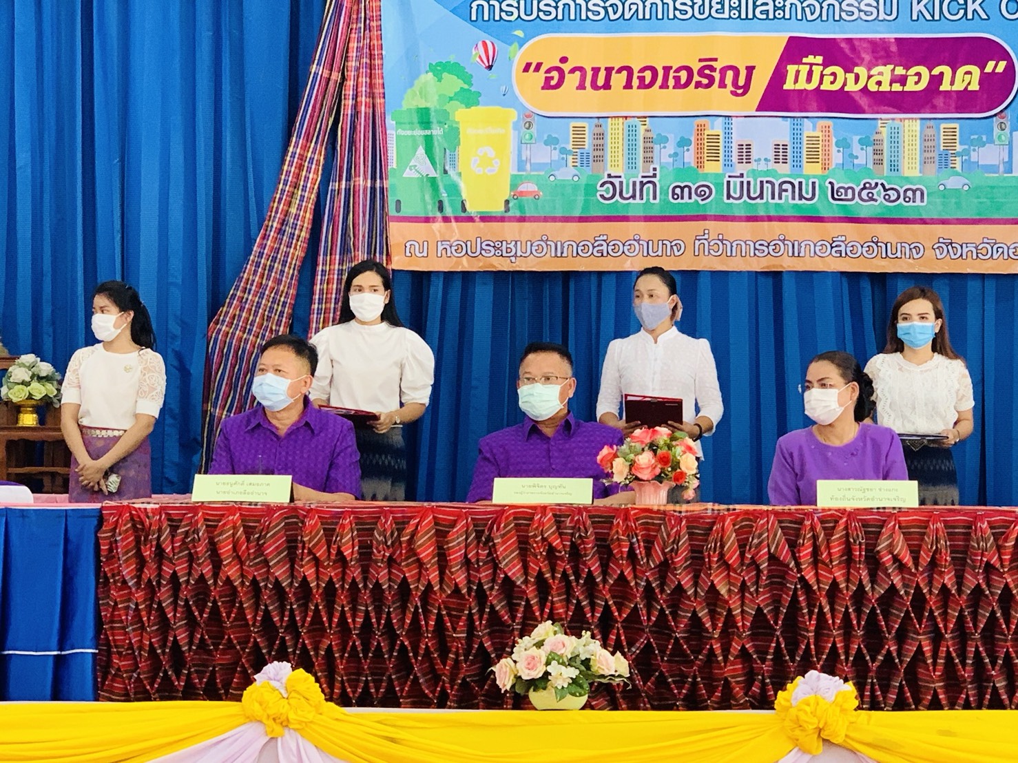 วันพฤหัสบดีที่ 31 มีนาคม 2563 เวลา 13.30 น. นายพิจิตร บุญทัน รองผู้ว่าราชการจังหวัดอำนาจเจริญ เป็นประธานในพิธีลงนามบันทึกข้อตกลงความร่วมมือ MOU และกิจกรรม KICK OFF อำนาจเจริญเมืองสะอาด ระดับอำเภอ โดยมี นายธนูศักดิ์ เสมอภาค นายอำเภอลืออำนาจ นางวัชราภรณ์ นาท้าว ปลัดอาวุโส หัวหน้าส่วนราชการระดับอำเภอ ผู้บริหารองค์กรปกครองส่วนท้องถิ่น กำนัน ผู้ใหญ่บ้านให้การต้อนรับ ทั้งนี้มีตัวแทนฝ่ายสงฆ์ ร่วมเป็นสักขีพยาน ในการลงนามบันทึกข้อตกลง สืบเนื่องจากจังหวัดอำนาจเจริญได้กำหนดแนวทางและมาตรการในการบริหารจัดการขยะ อำนาจเจริญเมืองสะอาด ประจำปีงบประมาณ พ.ศ.2563 ภายใต้กรอบแนวคิด 4 มาตรการหลัก ตั้งแต่มาตรการต้นทาง กลางทาง ปลายทาง และมาตรการส่งเสริมสนับสนุนการบริหาร เพื่อให้ทุกภาคส่วน ได้มีส่วนร่วมในการขับเคลื่อนการจัดการขยะของจังหวัดอำนาจเจริญ
