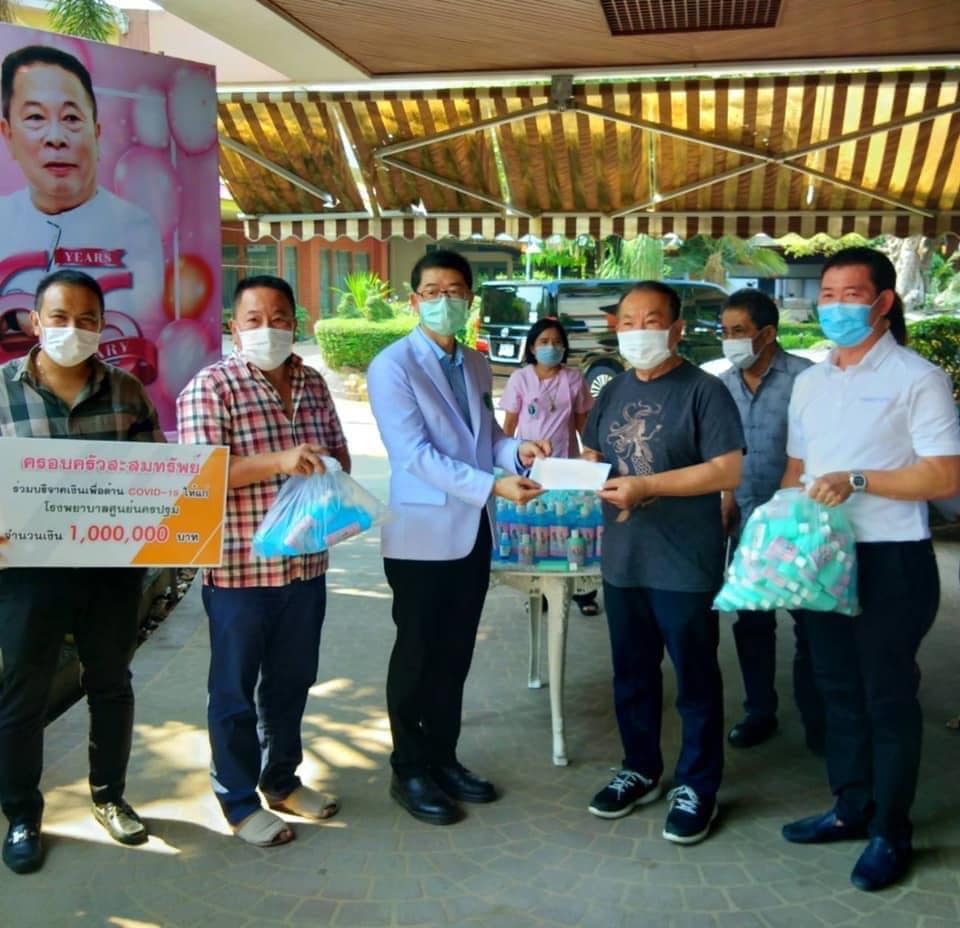 ครอบครัว “สะสมทรัพย์” ร่วมรณรงค์ป้องกันไวรัสโควิด-19โดย คุณพ่อประเสริฐ สะสมทรัพย์ นายเผดิมชัย สะสมทรัพย์, นายไชยศ สะสมทรัพย์ นายไชยา สะสมทรัพย์ , นายอนุชา สะสมทรัพย์ พร้อมลูกๆหลานๆร่วมกันบริจาคเงิน ให้กับโรงพยาบาลในจังหวัดนครปฐม ทุกอำเภอ เป็นจำนวนเงิน 2,500,000 บาท (สองล้านห้าแสนบาท) พร้อมเจลเอลกอฮอล์ เพื่อทำความสะอาดและฆ่าเชื้อ ด้วยความห่วงใยบุคลากรทางการแพทย์ และพี่น้องชาวจังหวัดนครปฐม