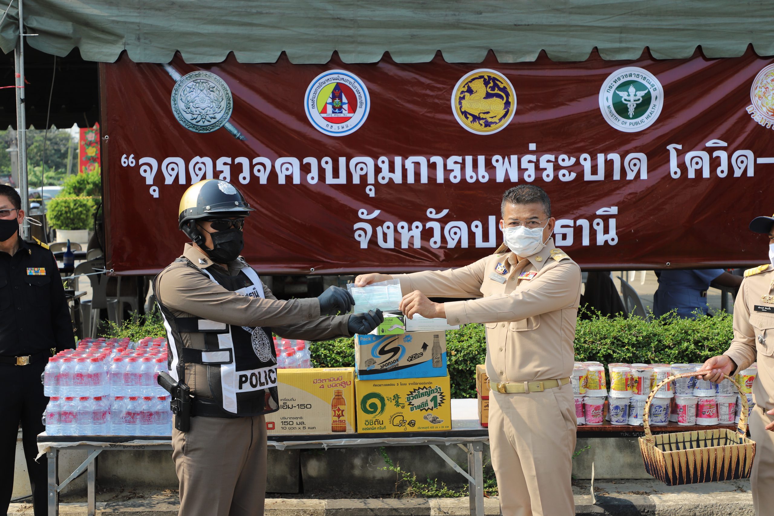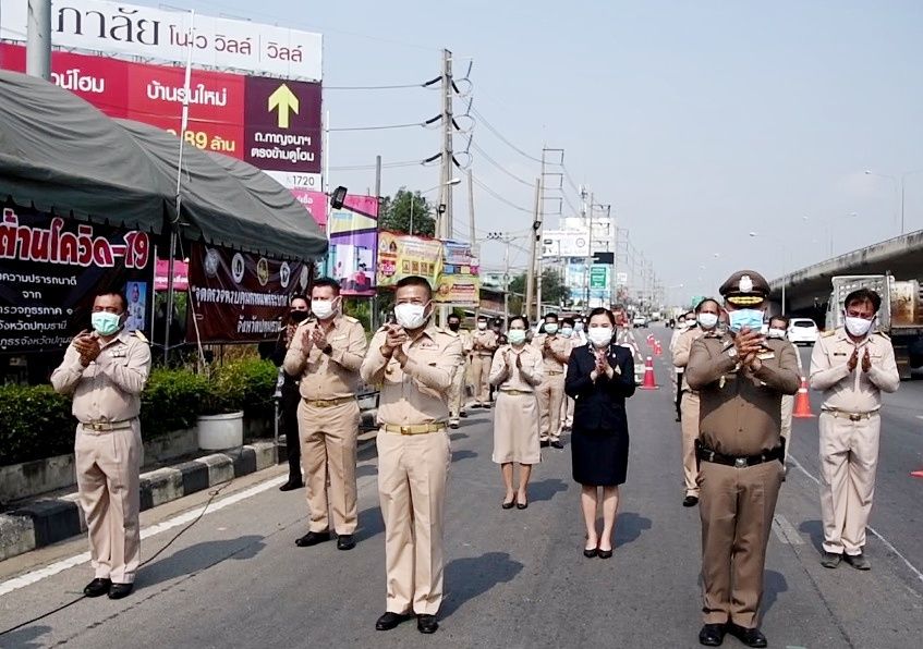 ปทุมธานี ผู้ว่าฯตรวจจุดสกัดโควิด19พร้อมเข้าแถวตบมือให้กำลังใจ นักรบชุดขาว บัณฑิตผู้กล้า แนวหน้าสู้ (Covid-19)