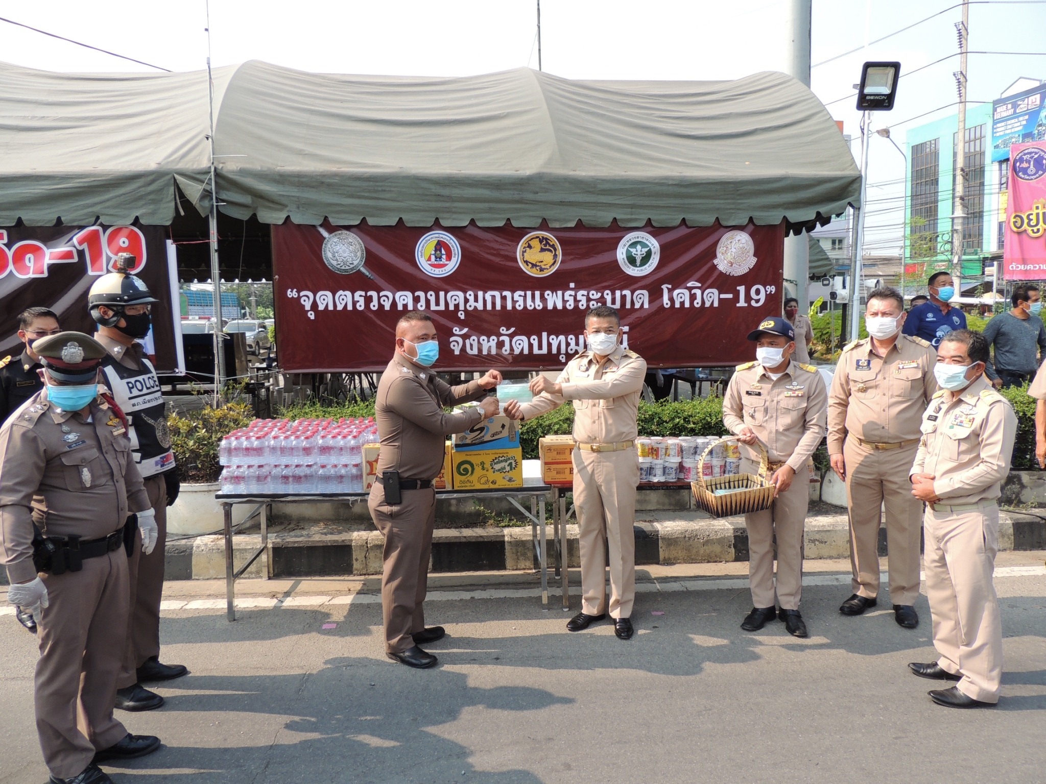 เมื่อเวลา 09.30 น.วันที่ 1เม.ย.2563 ดร.พินิจ บุญเลิศ ผู้ว่าราชการจังหวัดปทุมธานี พร้อมด้วยนายชาธิป รุจนเสรี รองผู้ว่าราชการจังหวัดปทุมธานี นายจรูญศักดิ์ สิงหเดช รองผู้ว่าราชการจังหวัดปทุมธานี พล.ต.ต.ชยุต มารยาทตร์ ผู้บังคับการตำรวจภูธรจังหวัดปทุมธานี นายชาญ พวงเพ็ชร์ นายกองค์การบริหารส่วนจังหวัดปทุมธานี หัวหน้าส่วนราชการ ออกตรวจเยี่ยมด่านตรวจจุดคัดกรอง โควิด-19 บริเวณจุดคัดกรองบริเวณแยกบางคูวัด ถนน 345 อำเภอเมืองปทุมธานี โดยผู้ว่าราชการจังหวัดปทุมธานี ได้ตรวจเยี่ยมพบปะพูดคุยให้กำลังใจเจ้าหน้าที่ปฏิบัติงานประจำจุดตรวจคัดกรองโควิด-19 ซึ่งจังหวัดปทุมธานี มีการตั้งด่านจุดคัดกรองโควิด -19 จำนวน 3 จุด 7อำเภอ ให้กำลังใจมีเจ้าหน้าที่สาธารณสุขอำเภอ เจ้าหน้าที่ตำรวจ กำนัน ผู้ใหญ่บ้าน อสม. ที่ร่วมในการตั้งจุดคัดกรอง พร้อมมอบสิ่งของน้ำดื่ม หน้ากากอนามัย เจล แอลกอฮอล์ทำความสะอาดเครื่องดื่มชูกำลัง เพื่อเป็นขวัญและกำลังใจแก่เจ้าหน้าที่ ที่ปฏิบัติงานที่จุดสกัดและมอบนโยบายแนวทางในการปฏิบัติ