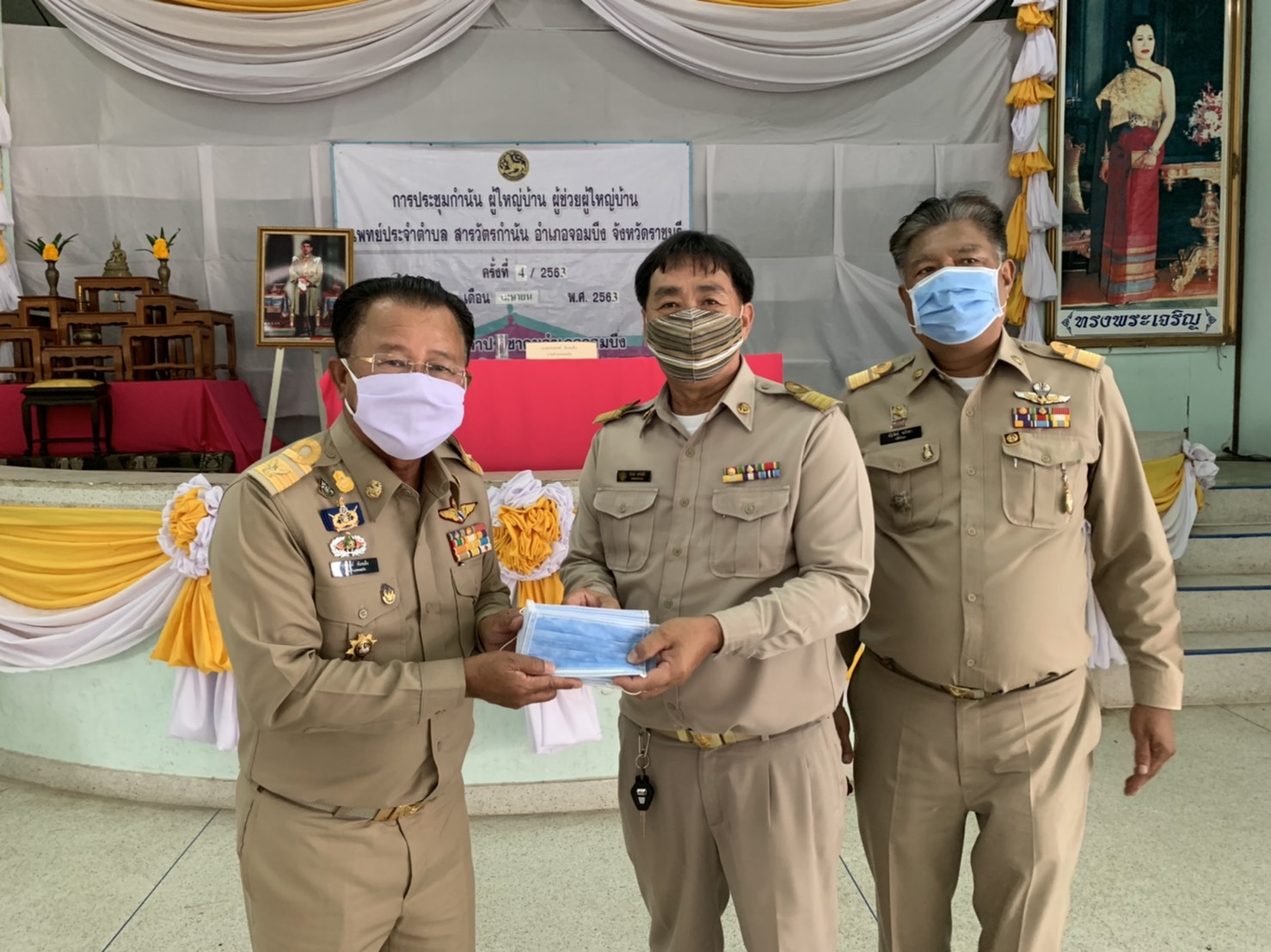 นายประยงค์ จันทเต็ง นอภ. จอมบึง เป็นประธานประชุมกำนันผู้ใหญ่บ้าน ประจำเดือน ครั้งที่ 4/2563 นำหัวหน้าส่วนราชการ กำนัน ผู้ใหญ่บ้าน จุดธูปเทียนบูชา ถวายสักการะ เสด็จพ่อ 5 พร้อมมอบหน้ากากอนามัยให้แก่ กำนัน ผู้ใหญ่บ้าน ท้ัง 6 ตำบล 90 หมู่บ้าน/มอบให้หัวหน้าส่วนราชการ อาทิ ผอ กศน เกษตรอำเภอ/สัสดีอำเภอ/ปศุสัตว์อำเภอ/สรรพากรอำเภอ/พัฒนาการอำเภอ/สาธารณสุขอำเภอ/ตัวแทน ผอ รพ สมเด็จพระยุพราช/ผกก. สภ จอมบึง/ผกก สภ ด่านทับตะโก/ปกครองอำเภอ/เน้นการสร้างทีมงานควบคุมป้องกันไวรัสโควิด-19 และมาตรฐานเยียวยา ป้องกันความสงบเรียบร้อยดูแลทุกข์สุขของประชาชน ร่วมกันปรบมือให้กำลังใจ ผู้ปฏิบัติหน้าที่ป้องกันควบคุมโรคไวรัสโควิด ด้วยความรู้รักสามัคคี จงรักภักดีต่อสถาบัน