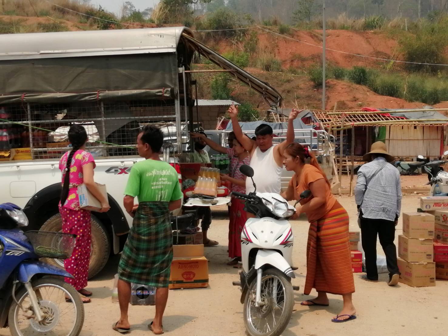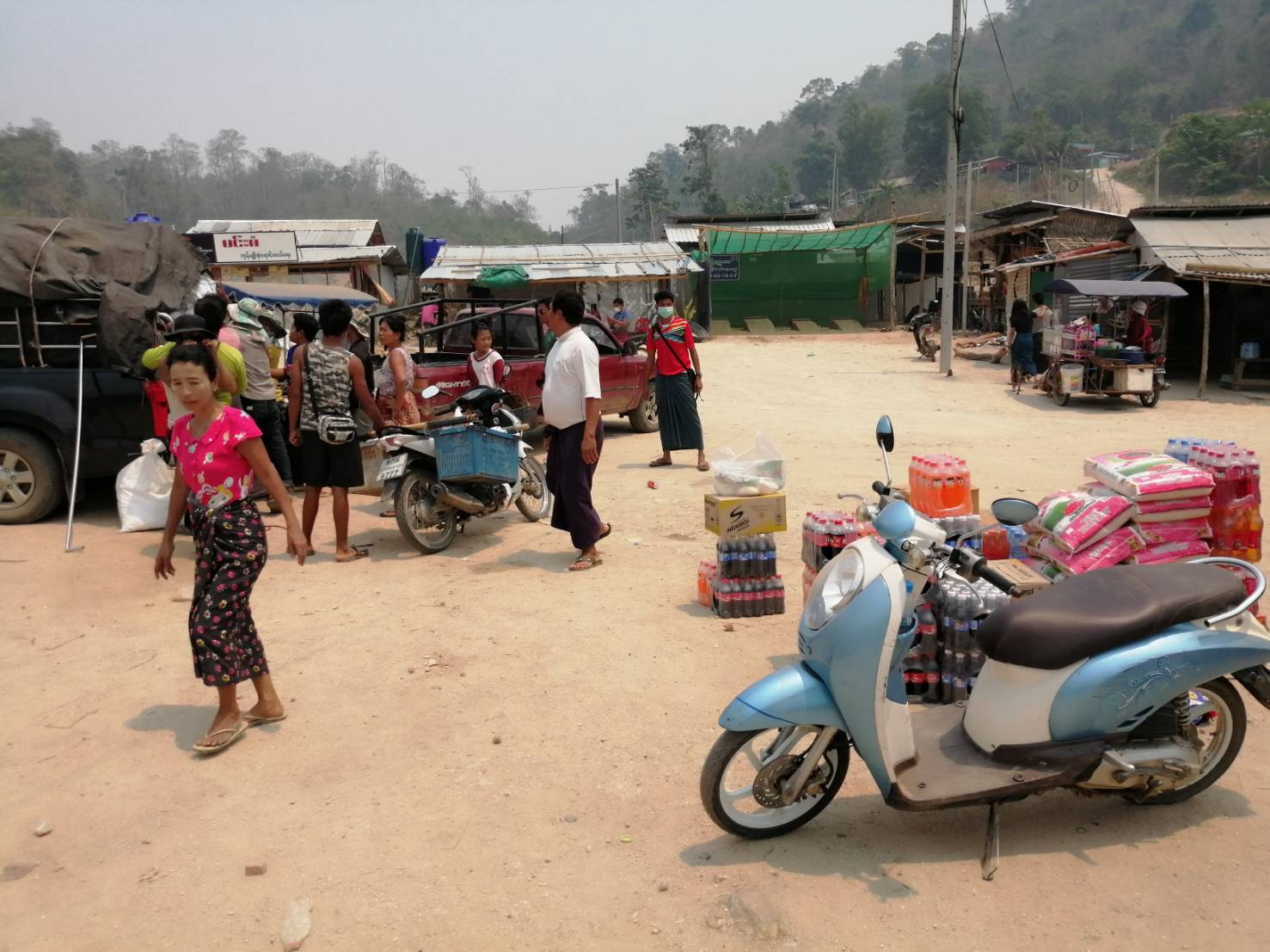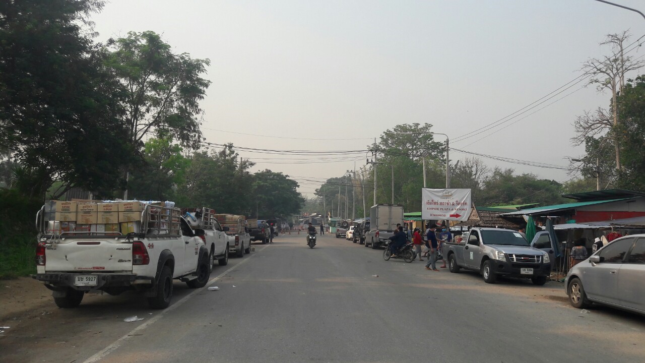 / ที่บริเวณด่านการค้าชายแดนบ้านพุน้ำร้อน ตำบลบ้านเก่า อำเภอเมือง จังหวัดกาญจนบุรี บรรดาพ่อค้าแม่ค้า ได้ขนสินค้าจำพวกอาหาร น้ำดื่ม เครื่องอุปโภคบริโภค มารอผ่านข้ามแดน ที่บริเวณด่าน ตม.บ้านพุน้ำร้อน หลังนายจีระเกียรติ ภูมิสวัสดิ์ ผู้ว่าราชการจังหวัดกาญจนบุรี ได้มีคำสั่งอนุโลมให้เปิดด่านชายแดนบ้านพุน้ำร้อนเป็นการชั่วคราวสัปดาห์ละ 1 วัน ในวันพฤหัสบดีของทุกสัปดาห์ ตั้งแต่เวลา 07.00 ถึง 17.00 นาฬิกา เพื่อเปิดโอกาสให้กลุ่มพ่อค้าแม่ค้า ได้นำเอาอาหาร น้ำดื่มเครื่องอุปโภคบริโภคจากฝั่งจังหวัดกาญจนบุรีเดินทางข้ามแดนไปส่งที่บ้านทิกิ จังหวัดทวาย ประเทศเมียนมาร์ หลังจากที่ทางจังหวัด ได้มีการประกาศปิดด่านชายแดนบ้านพุน้ำร้อน มาเป็นเวลากว่า 2 สัปดาห์ ทำให้พื้นที่บ้านทีกิ เริ่มมีความขาดแคลนอาหารและน้ำดื่ม ทางผู้ว่าราชการจังหวัดกาญจนบุรี จึงได้มีคำสั่งผ่อนผันดังกล่าว เพื่อเป็นการช่วยเหลือทางด้านมนุษยธรรมแก่ประชาชนในประเทศเพื่อนบ้าน