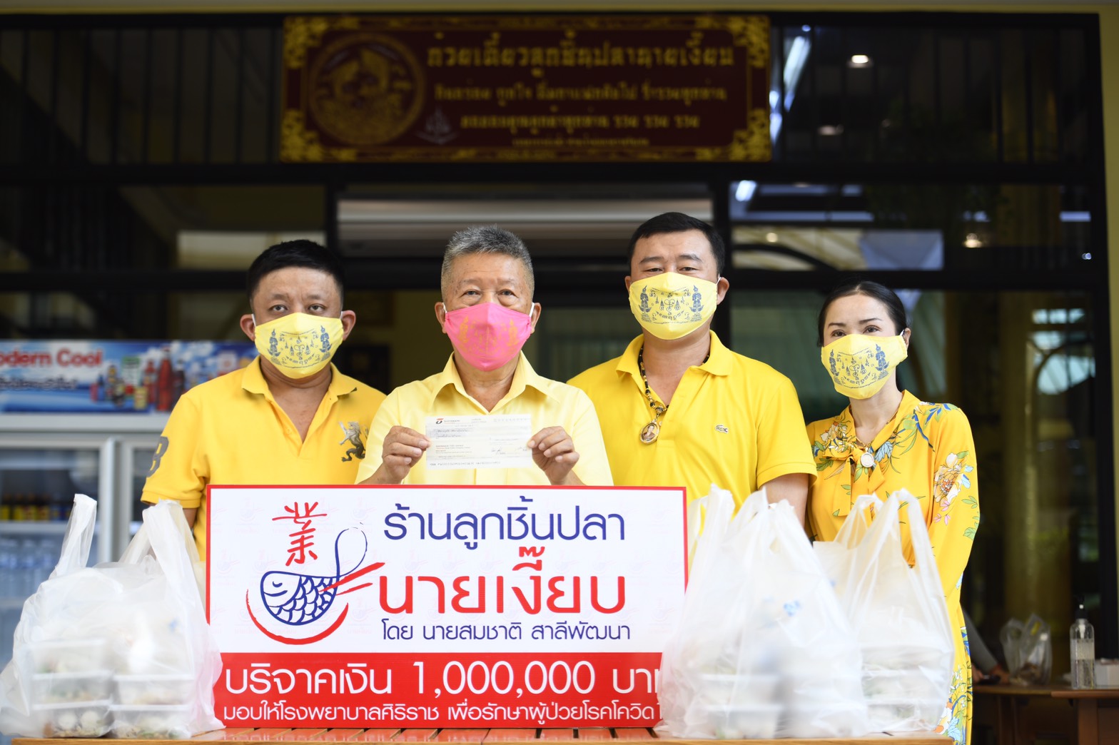 นายสมชาติ (เฮียเงี๊ยบ) สาลีพัฒนา เจ้าของร้านก๋วยเตี๋ยวลูกชิ้นปลานายเงี๊ยบ และครอบครัว พร้อมพระครูปลัดสิทธิวัฒน์ (หลวงพี่น้ำฝน) มอบเงินจำนวน 1ล้านบาท ให้โรงพยาบาลศิริราช เพื่อซื้ออุปกรณ์ทางการแพทย์ ช่วยผู้ป่วยโควิด-19 โดยมี รองศาสตราจารย์ นายแพทย์ นริศ กิจณรงค์ รองคณบดีฝ่ายสื่อสารองค์กรและกิจกรรมเพื่อสังคม คณะแพทย์ศาสตร์ศิริราชพยาบาล มหาวิทยาลัยมหิดล เป็นผู้แทนเดินทางมารับมอบเงิน