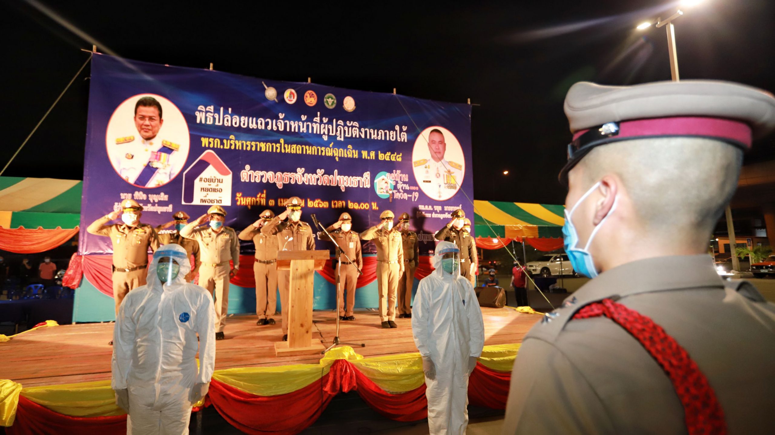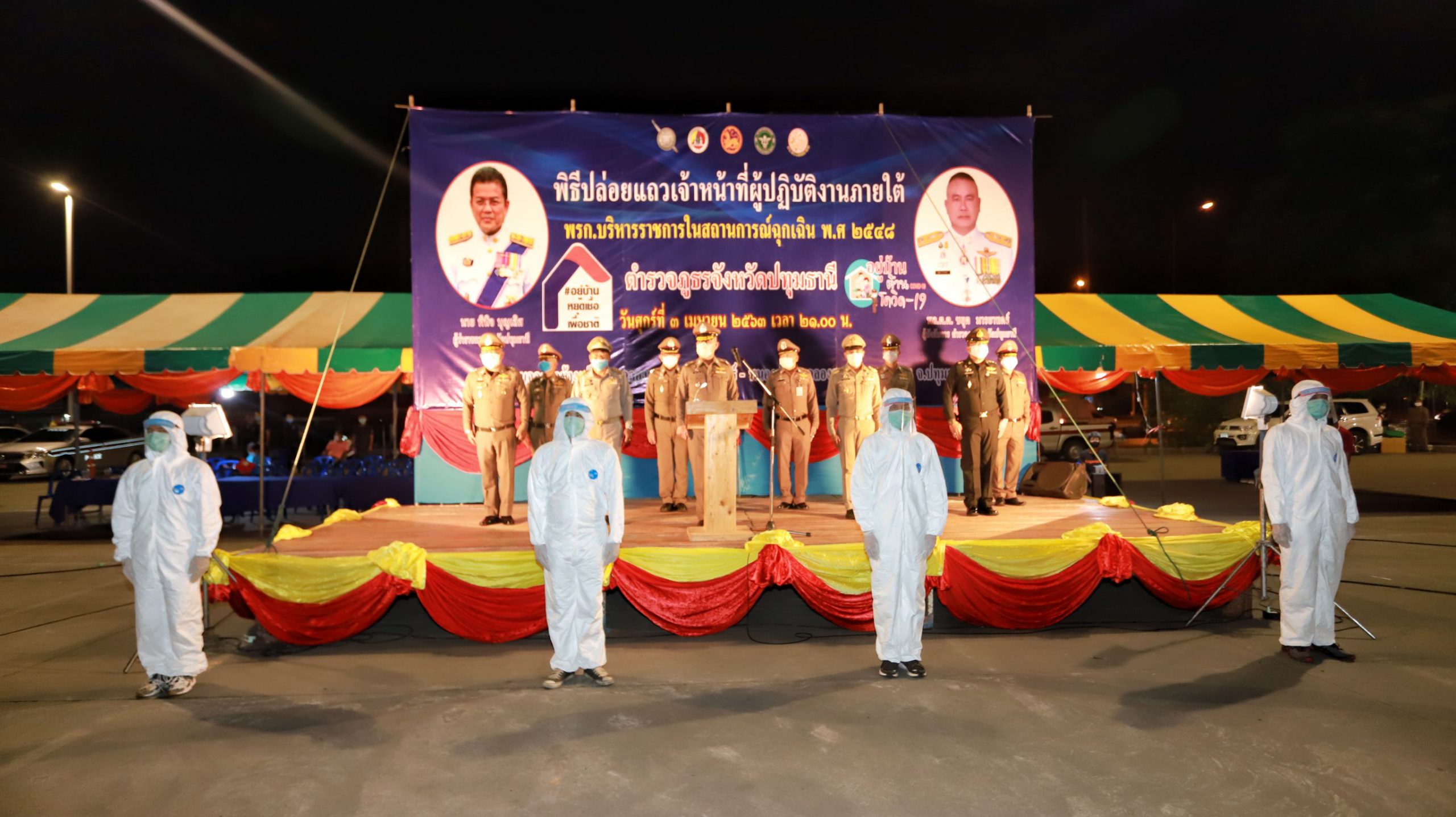 โดยมี นายจรูญศักดิ์ สิงหเดช รองผู้ว่าราชการจังหวัดปทุมธานี พล.ต.ต.ชยุต มารยาทตร์ ผู้บังคับการตำรวจภูธรจังหวัดปทุมธานี พ.อ.สัญญาลักษณ์ ทั่งศิริ รอง ผอ.รมน.จ.ปทุมธานี พ.ต.อ. พีรพล โชติกเสถียร รองผู้บังคับการตำรวจภูธรจังหวัดปทุมธานี นายนิติชัย วิริยานนท์ นายอำเภอคลองหลวง และผู้เกี่ยวข้องร่วมในพิธี โดยมีการบูรณาการกำลังพลหน่วยงานที่เกี่ยวข้องเข้าร่วมปฏิบัติภารกิจ ประกอบด้วย ชุดปฏิบัติการจากสถานีตำรวจภูธรในสังกัดจังหวัดปทุมธานี กองกำกับการสืบสวนตำรวจภูธรจังหวัดปทุมธานี ฝ่ายปกครอง และมูลนิธิต่าง ๆ จำนวน 155 นาย ซึ่งหลังจากปล่อยแถวแล้วกำลังพลทั้งหมดได้ไปตั้งจุดตรวจ จุดสกัด ในพื้นที่รับผิดชอบของตนเองเช่นเดียวกับสถานีตำรวจภูธรที่ไม่ได้มาร่วมปล่อยแถวในครั้งนี้พร้อมกันทั้งจังหวัดปทุมธานี เพื่อปฏิบัติหน้าที่ในการดูแลรักษาความสงบเรียบร้อย และการป้องกันการฝ่าฝืนประกาศเคอร์ฟิวที่ห้ามออกนอกเคหะสถานเวลา 22.00-04.00 น. ตาม พ.ร.ก.ฉุกเฉิน เป็นการปฏิบัติหน้าที่ตามที่นายกรัฐมนตรีได้ออกข้อกำหนดเพิ่มเติมตามความในมาตรา 9 แห่งพระราชกำหนดการบริหาราชการในสถานการณ์ฉุกเฉิน พ.ศ. 2548 (ฉบับที่ 2) ลงวันที่ 2 เมษายน 2563 ห้ามบุคคลใดทั่วราชอาณาจักรออกนกเคหสถานระหว่างเวลา 22.00-04.00 น. ของวันรุ่งขึ้น ตั้งแต่วันที่ 3 เมษายน 2563 เป็นต้นไป