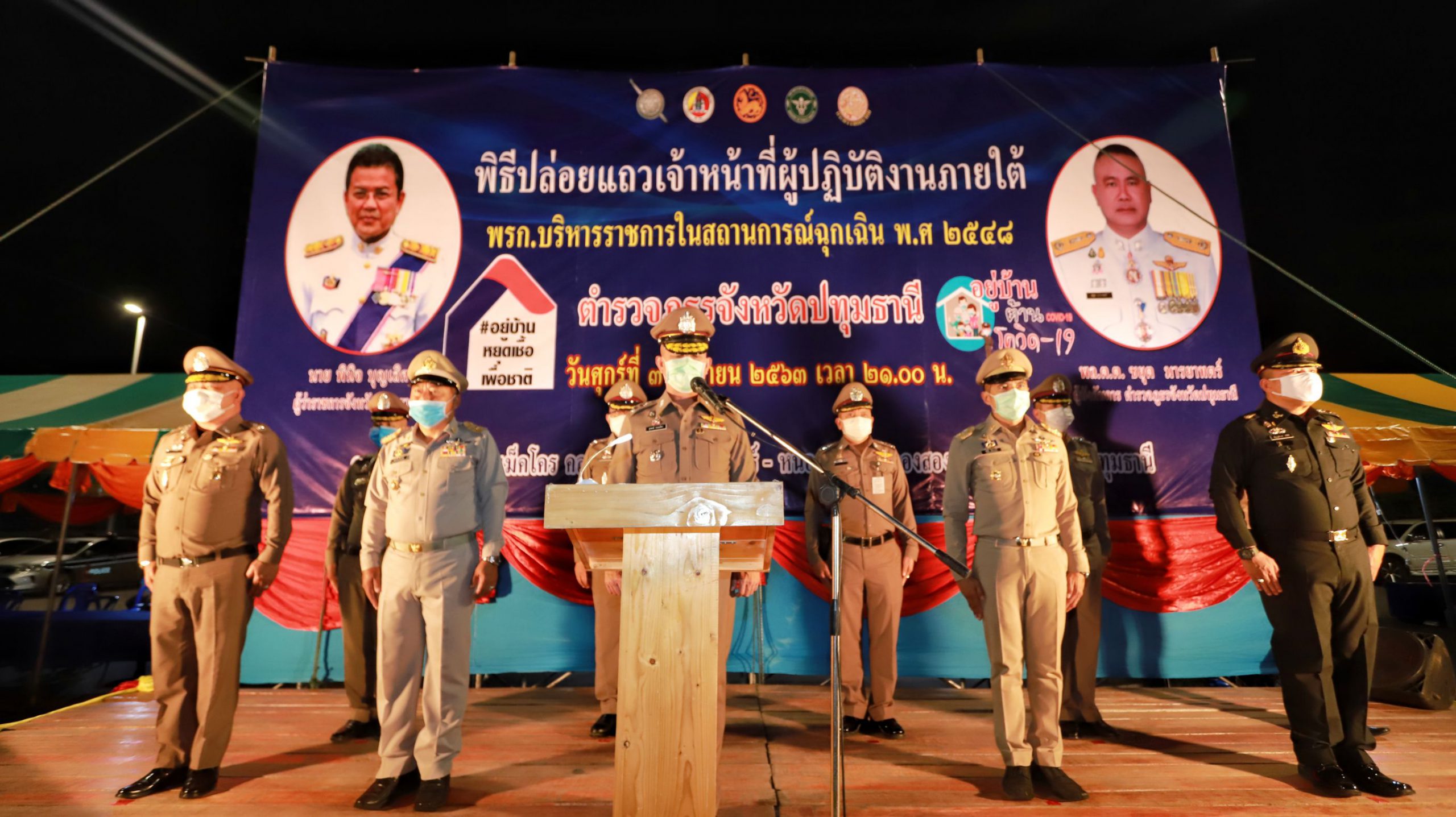 ปทุมธานีบูรณาการปล่อยแถวทหาร ตำรวจ ฝ่ายปกครอง ตั้งจุดตรวจ จุดสกัด ป้องกันการฝ่าฝืนเคอร์ฟิว