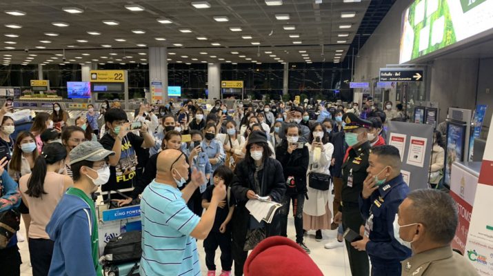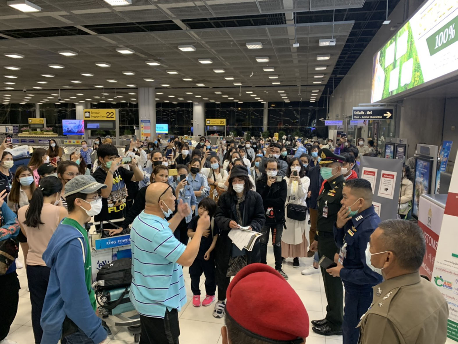 โดยกลุ่มผู้โดยสาร ระบุว่า ไม่ทราบประกาศเรื่องของการกักตัวผู้โดยสารที่เดินทางมาถึงประเทศไทยทุกเที่ยวบิน และเวลาต่อมา เจ้าหน้าที่ทหาร ได้เข้ามาคุมสถานการณ์ และเปิดการเจรจากับผู้เดินทาง ประมาณ 20 นาที ก่อนจะอนุญาตให้ทุกคนเดินทางกลับบ้านได้ โดยกำชับให้ทุกคนต้องกักตัวเอง 14 วัน