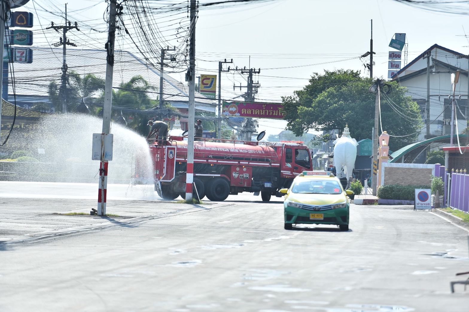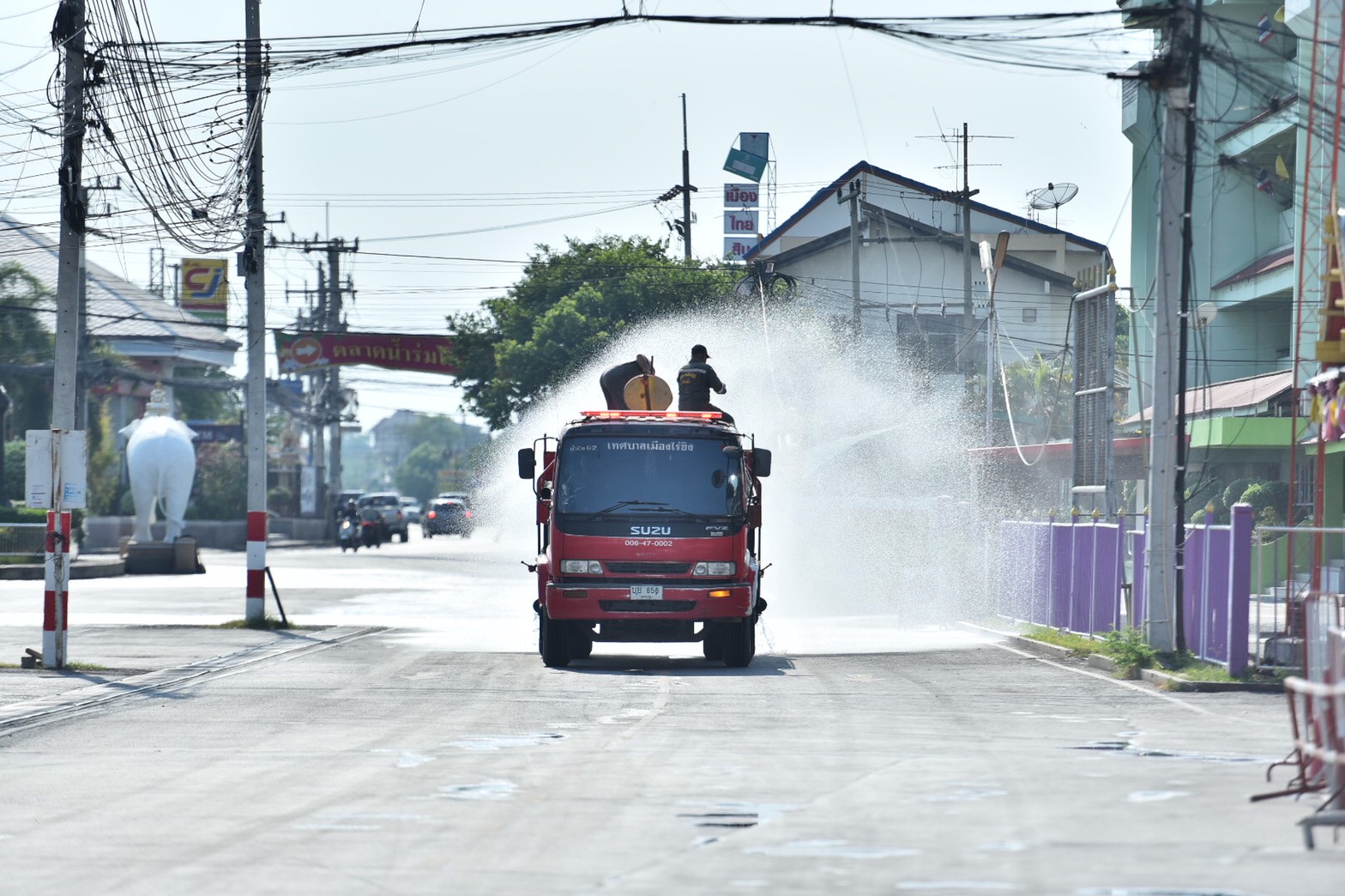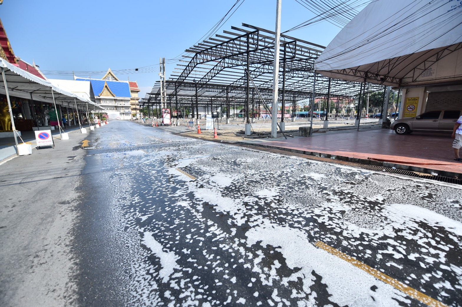 นายกเทศมนตรีเมืองไร่ขิงบัญชาการใช้น้ำยาล้างพื้นถนน