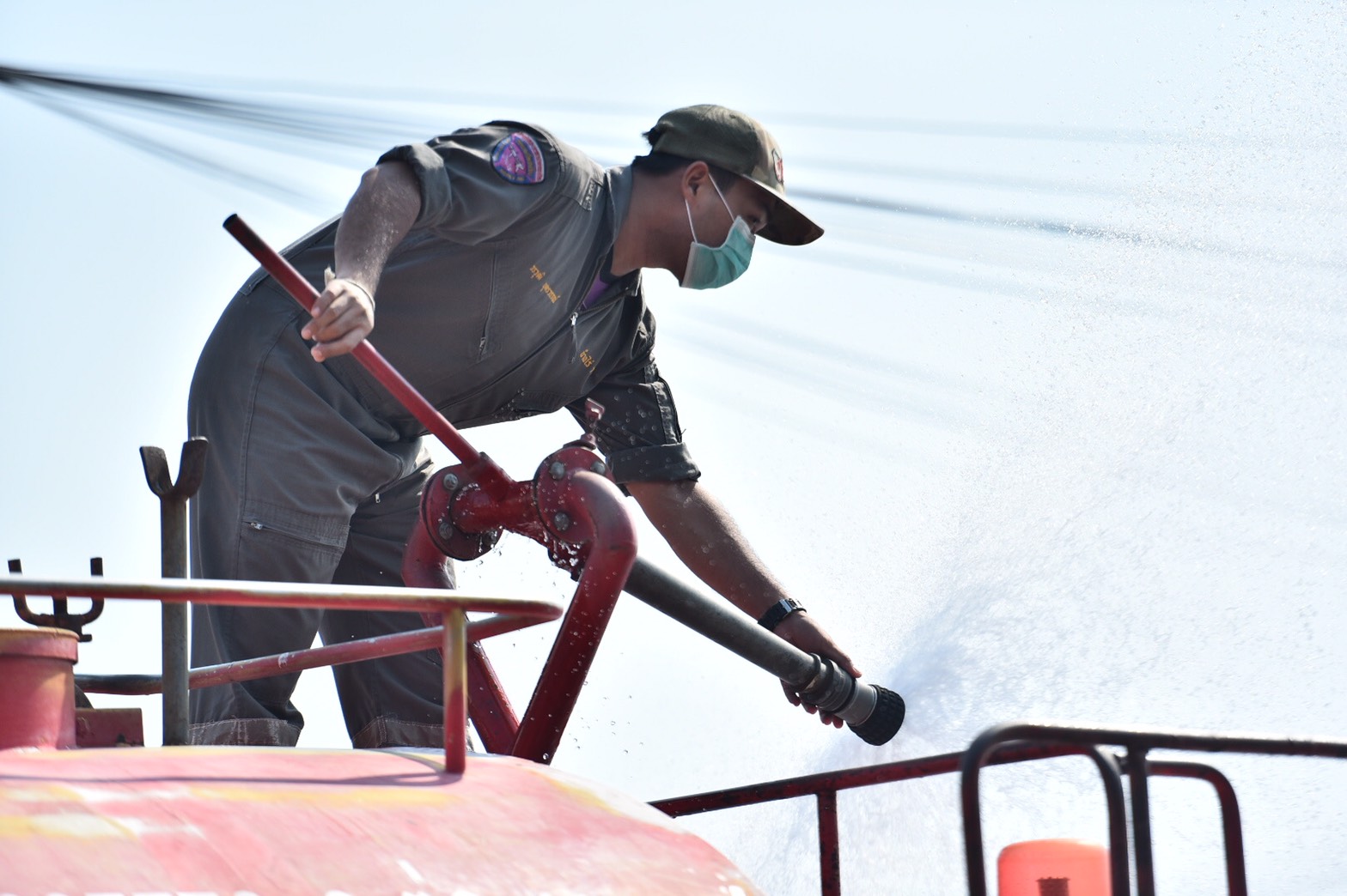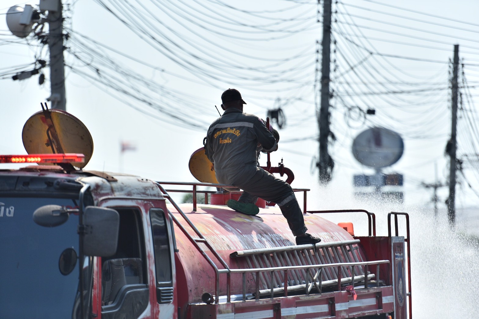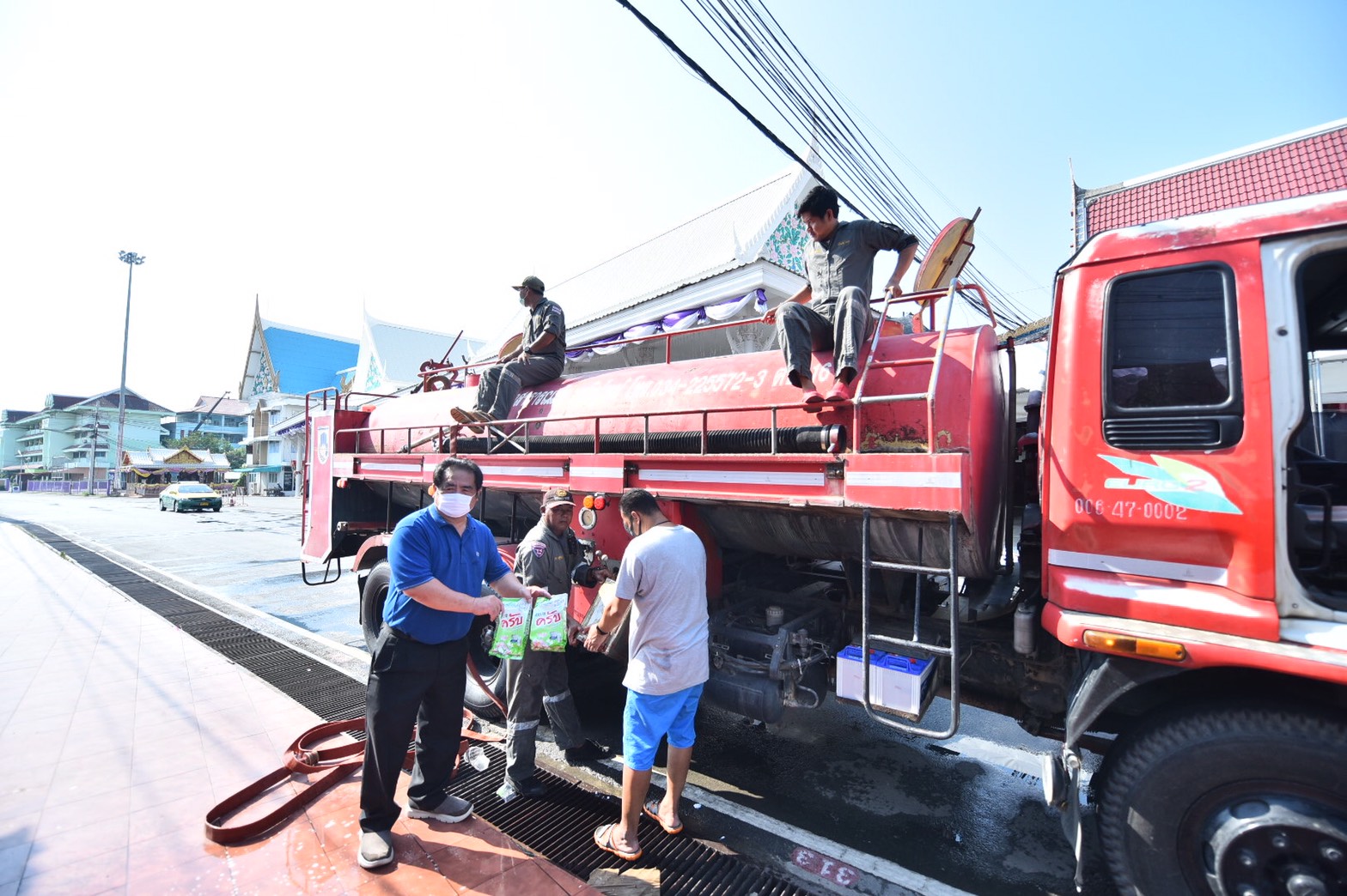 นายกเทศมนตรีเมืองไร่ขิงบัญชาการใช้น้ำยาล้างพื้นถนน