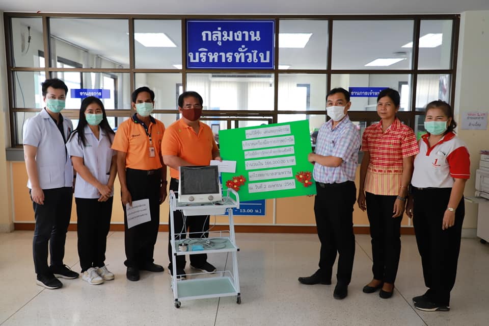 ซึ่งมี นพ.ทินกร ชื่นชม รองนายแพทย์สาธารณสุขจังหวัดนครปฐม รักษาการผอ.โรงพยาบาลสามพราน พร้อมคณะผู้บริหาร เป็นผู้รับมอบ เพื่อนำไปใช้ในการรักษาผู้ป่วยต่อไป
