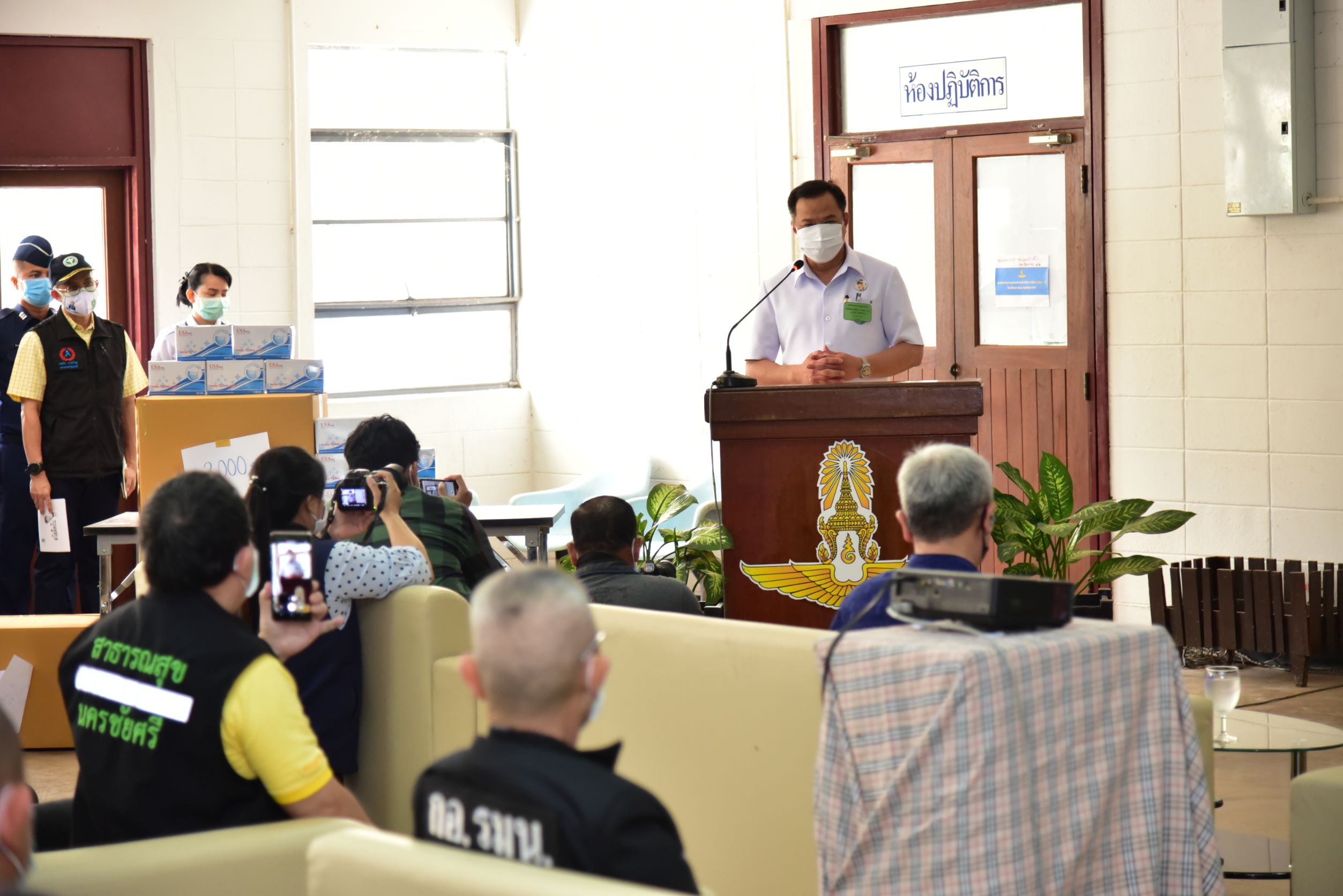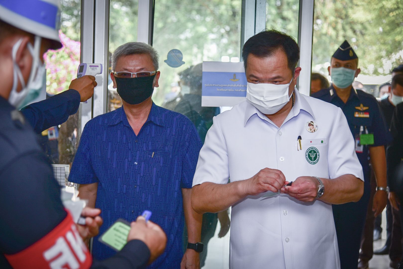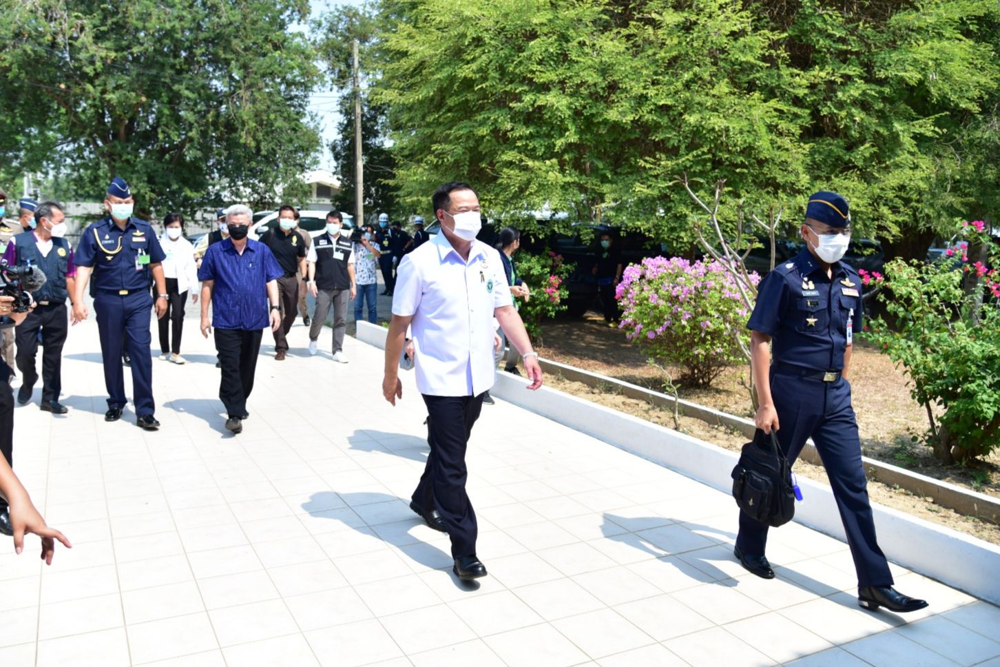 วันอาทิตย์ที่ 5 เมษายน 2563) นายอนุทิน ชาญวีรกูล รองนายกรัฐมนตรีและรัฐมนตรีว่าการกระทรวงสาธารณสุข เดินทางตรวจเยี่ยม State Quarantine ณ ศูนย์ประสานงานดูแลคนไทยในพื้นที่เฝ้าระวังโรค COVID-19 โรงเรียนการบิน อำเภอกำแพงแสน จังหวัดนครปฐม โดยมี นายชาญนะ เอี่ยมแสง ผู้ว่าราชการจังหวัดนครปฐม , พลอากาศตรี ไวพจน์ เกิงฝาก ผู้บัญชาการโรงเรียนการบิน และ นายแพทย์สามารถ ถิระศักดิ์ นายแพทย์สาธารณสุขจังหวัดนครปฐม ให้การต้อนรับ