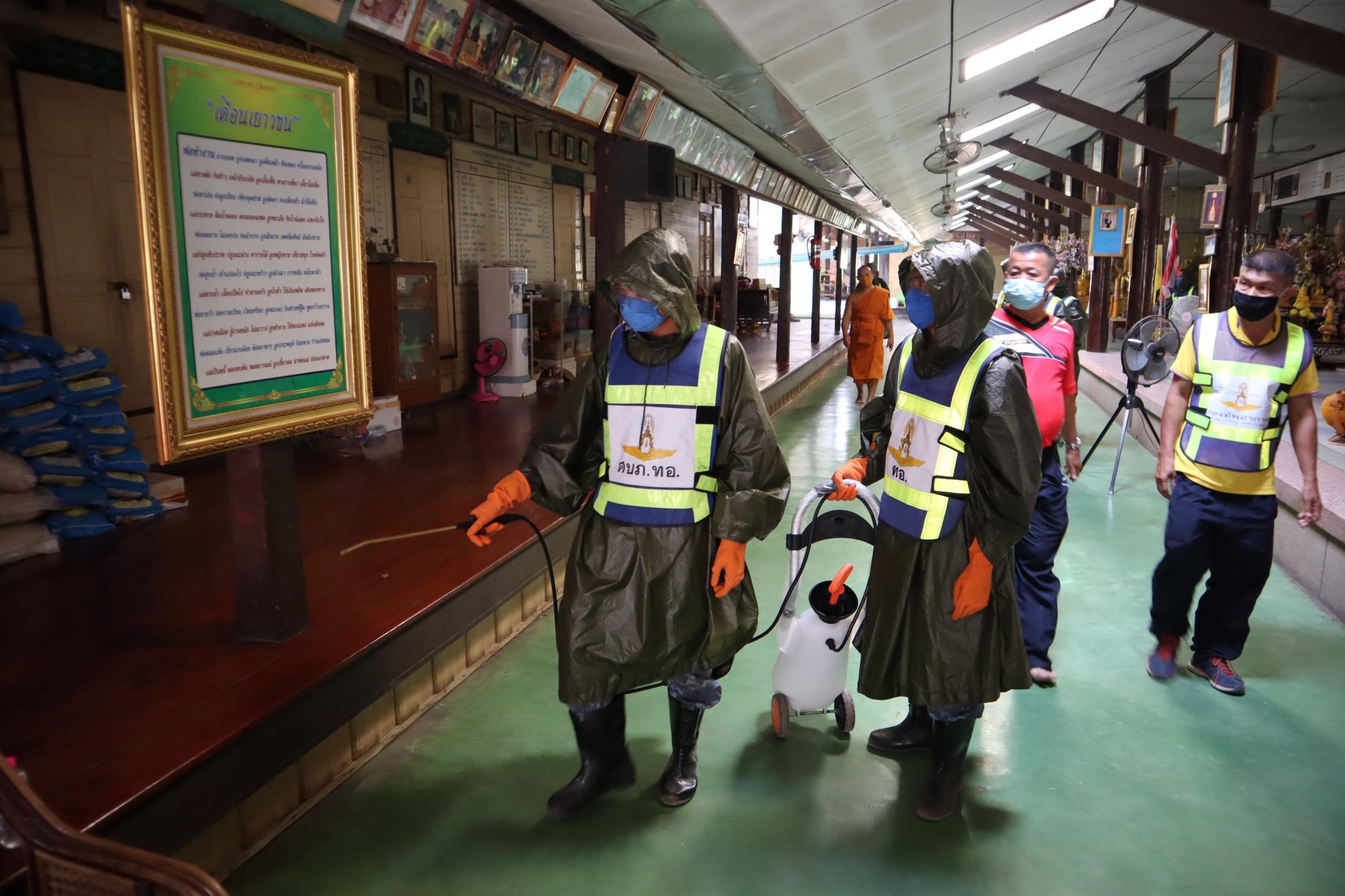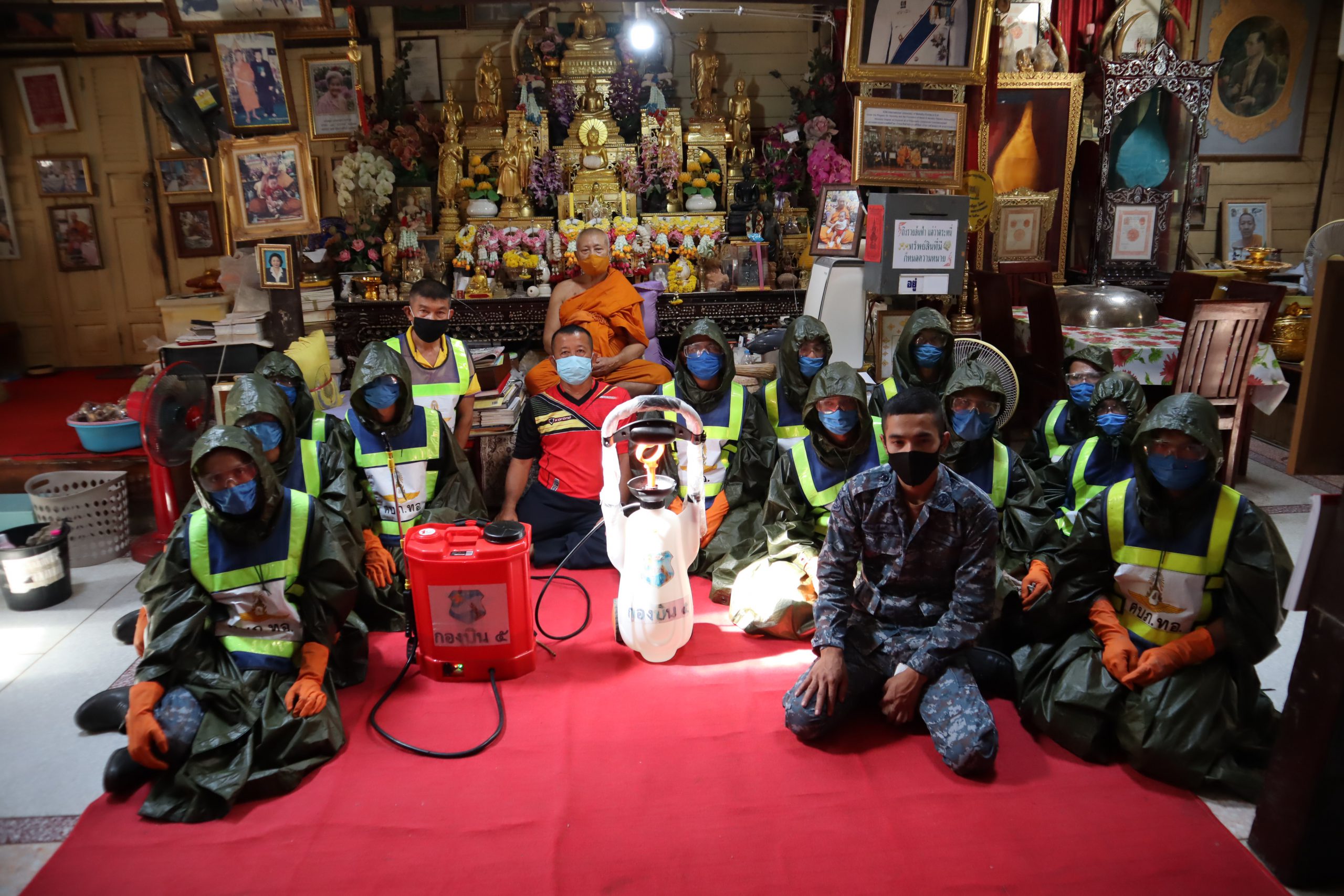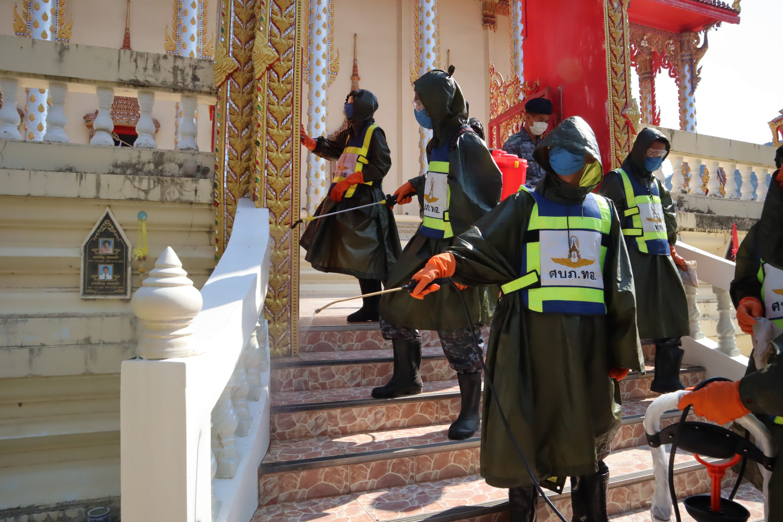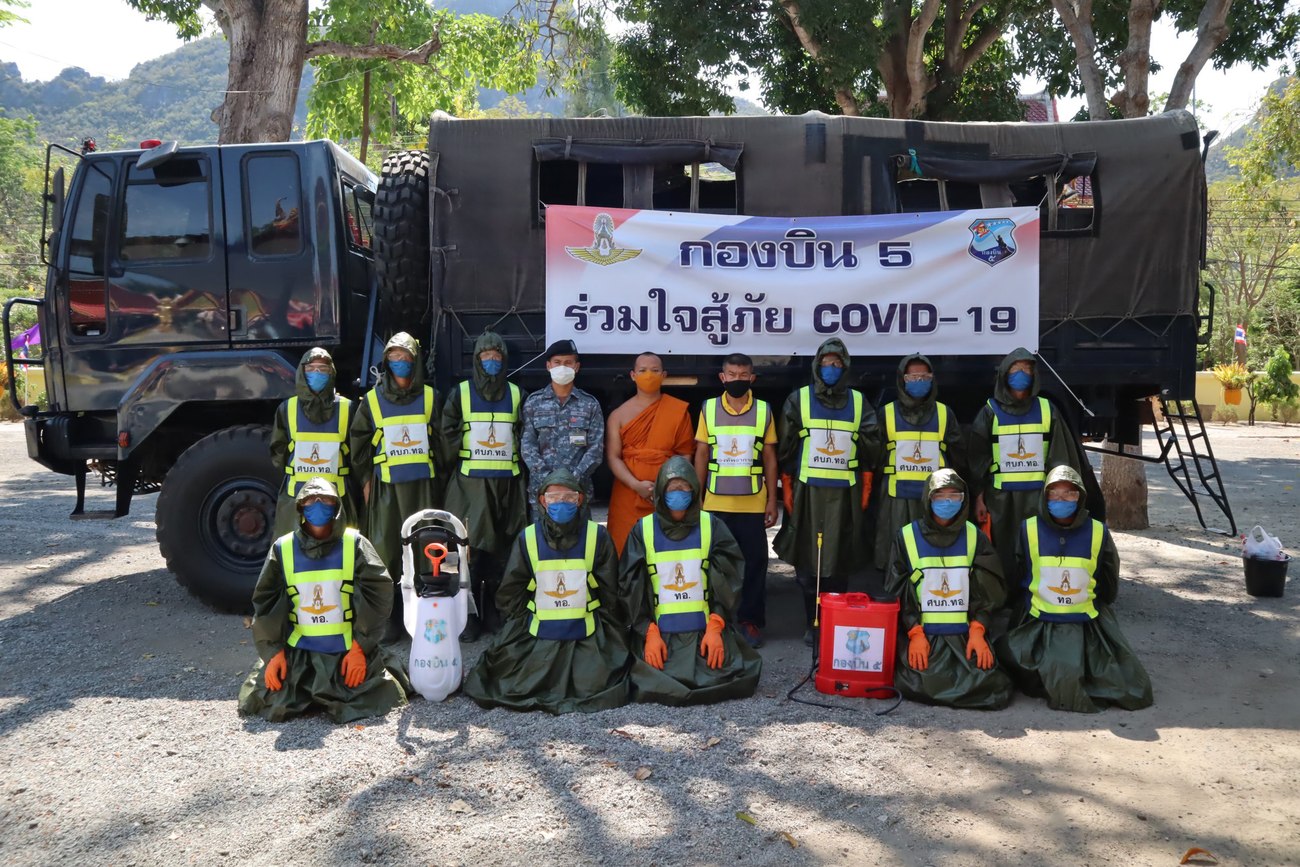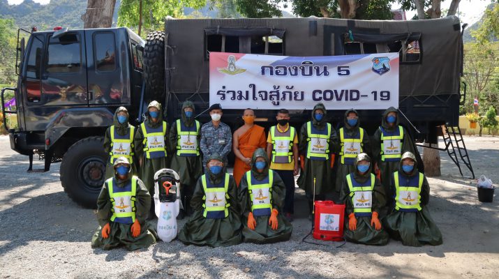 บน.5ระดมกำลังทหารฉีดพ่นน้ำยาฆ่าเชื้อป้องกันโรคไวรัสโควิด19 ในวัดหลวง