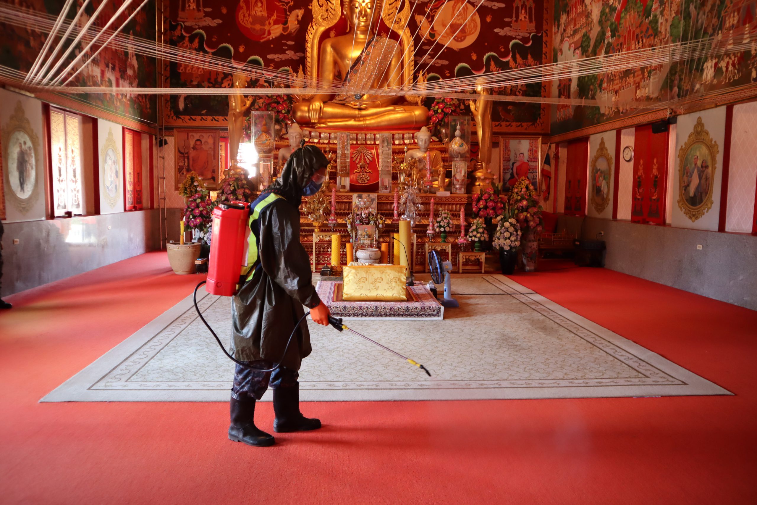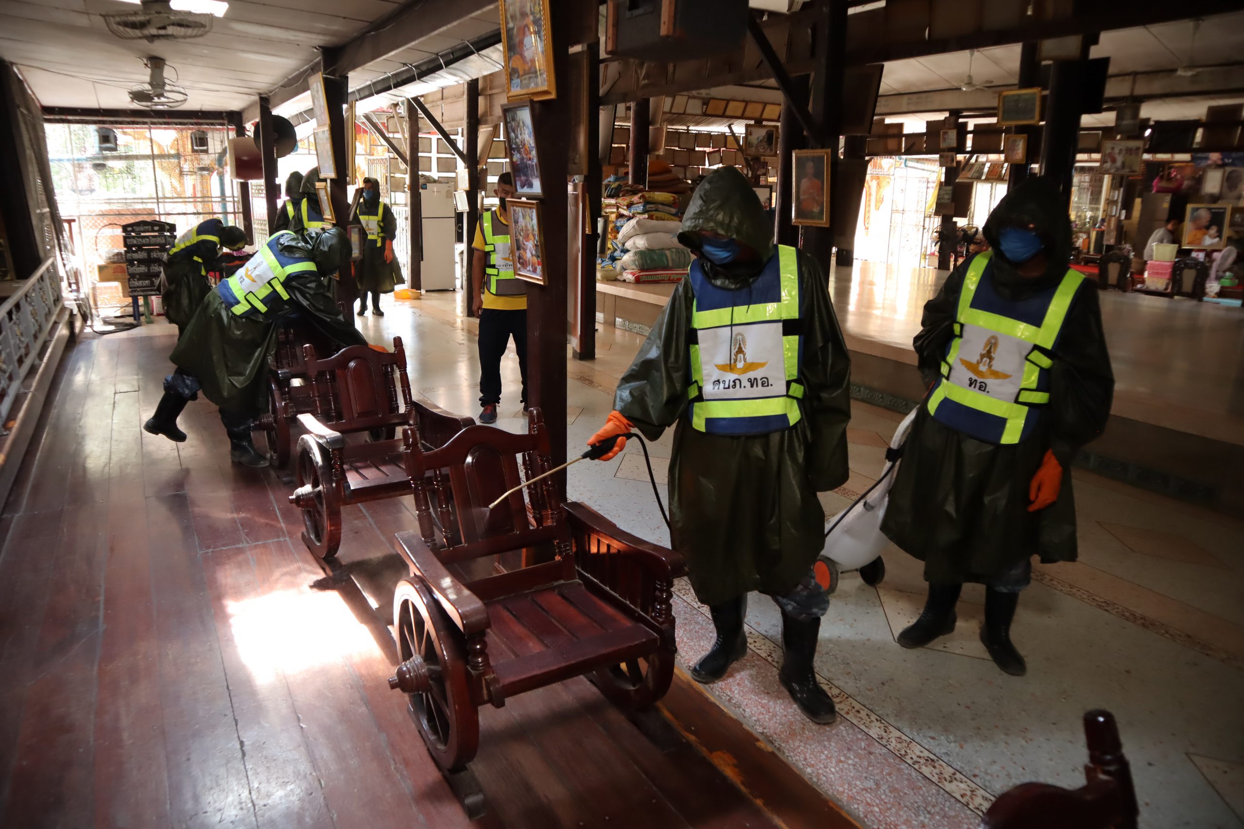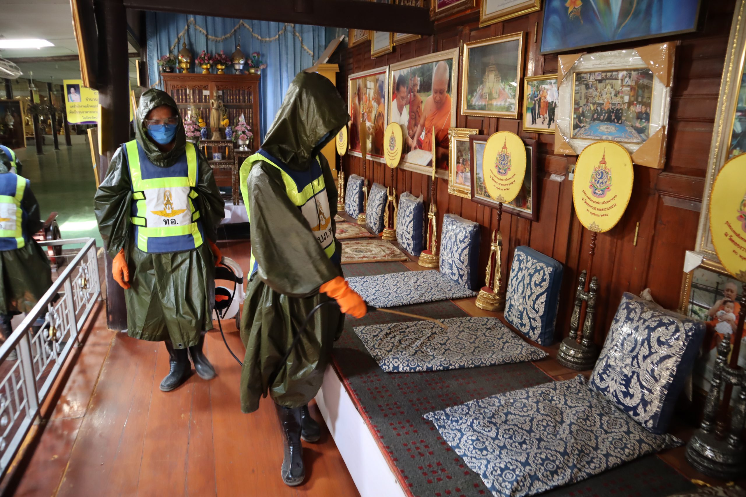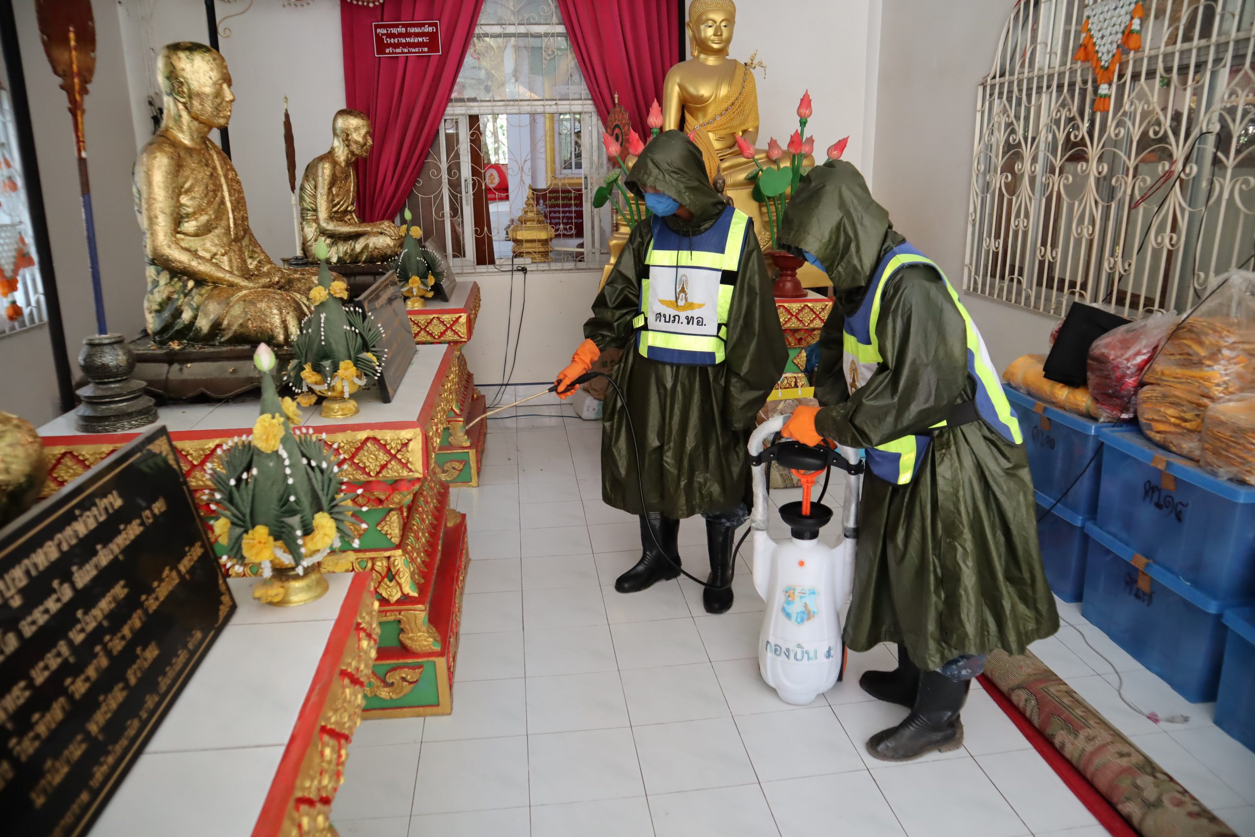 บน.5ระดมกำลังทหารฉีดพ่นน้ำยาฆ่าเชื้อป้องกันโรคไวรัสโควิด19 ในวัดหลวง