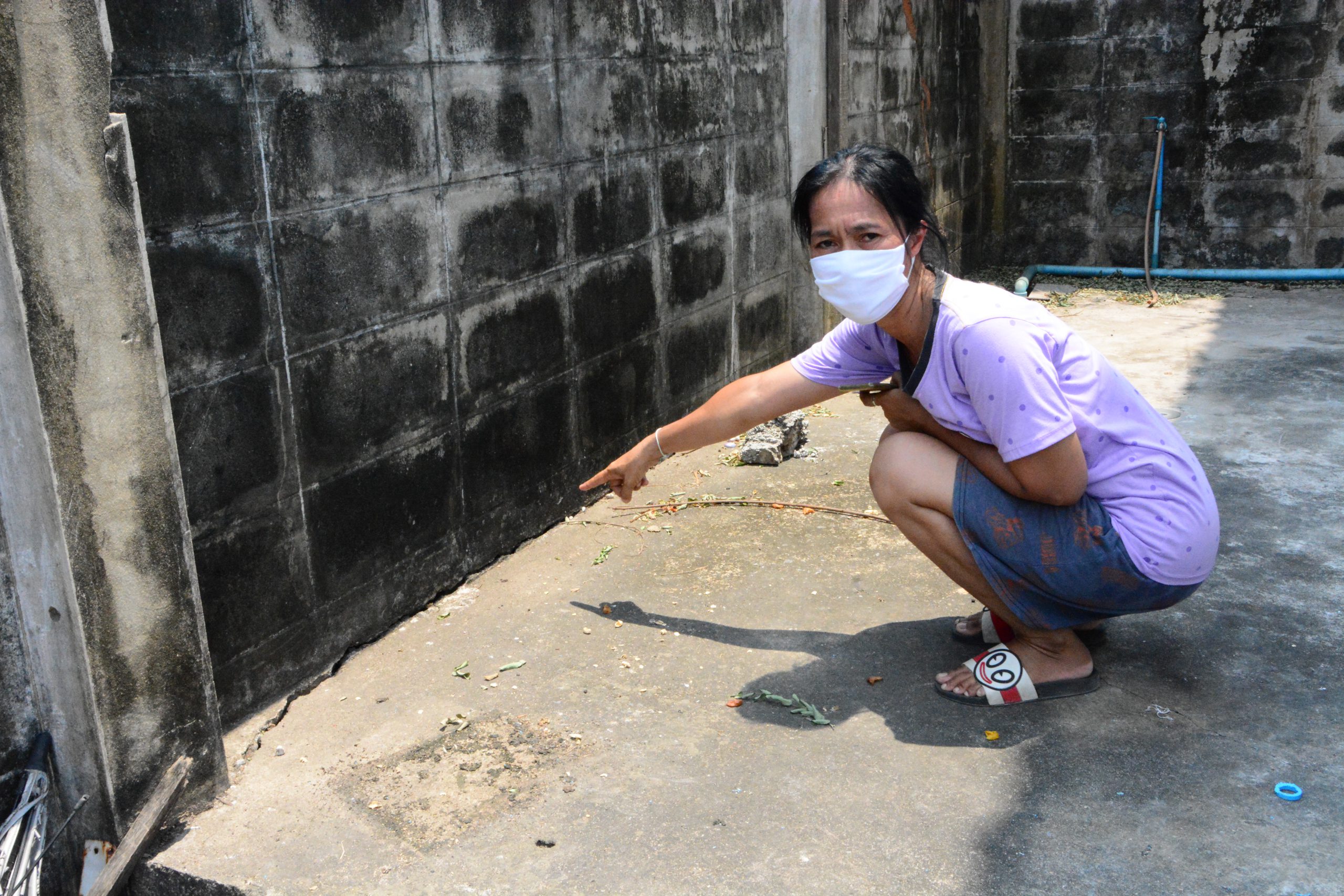 ด้าน นางสาว วิไลพรณ์ พัณธ์แตง อายุ 46 ปี ผู้อยู่อาศัยบ้านเลขที่ 34/39 ซอยชุมชนจักสุภา ซึ่งด้านหลังบ้านถูกขุดดินแล้ว เปิดเผยว่า ช่วงทีทำการขุดดินอยู่นั้น ตัวบ้านมีลักษณะสันไหว อยู่ตลอดเวลา จรกระทั่งขุดเสร็จ ตนเองจึงตรวจรอบบ้าน ก็พบว่า บริเวณฐานของกำแพงบ้านมีรอยแตกร้าวยาว หวั่นว่ากำแพงบ้านจะทรุดตัวลง ตนเองไม่รู้จะทำเช่นไร เพราะเข้าใจดีว่าพื้นที่ที่ ทำการขุดดินเป็นที่ของเขา เราก็ไม่อยากเข้าไปยุ่ง แต่ถ้าหากขุดห่างจากกำแพงบ้านไปออกไป ก็คงไม่กังวลเช่นนี้